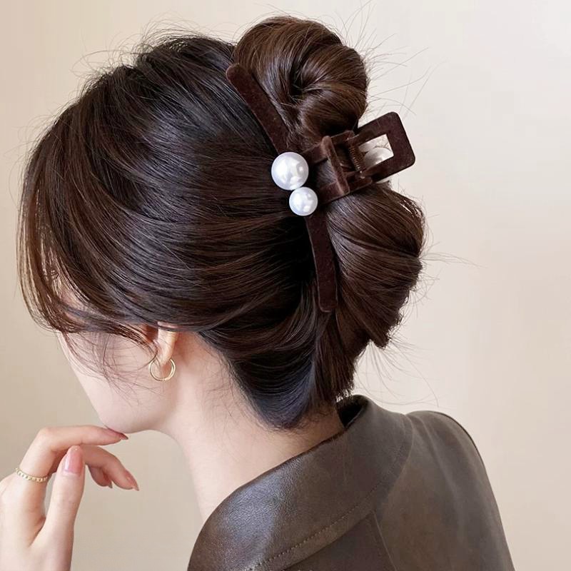 한국 샤넬 펄 그랩 클립 가을과 겨울 뒤쪽 머리 상어 클립 간단한 우아한 헤어핀 헤어 액세서리 트렌디스토어 가기