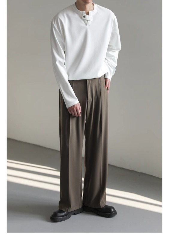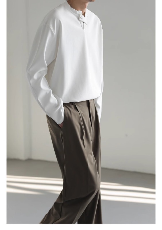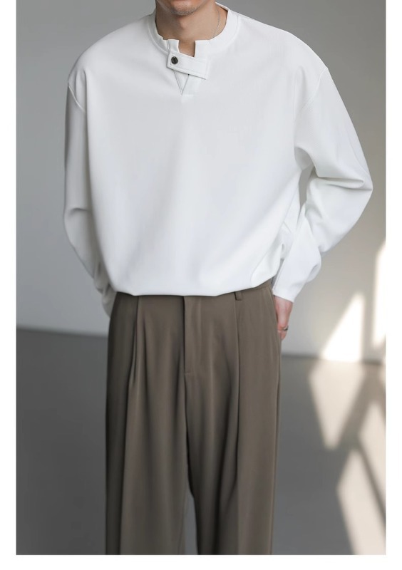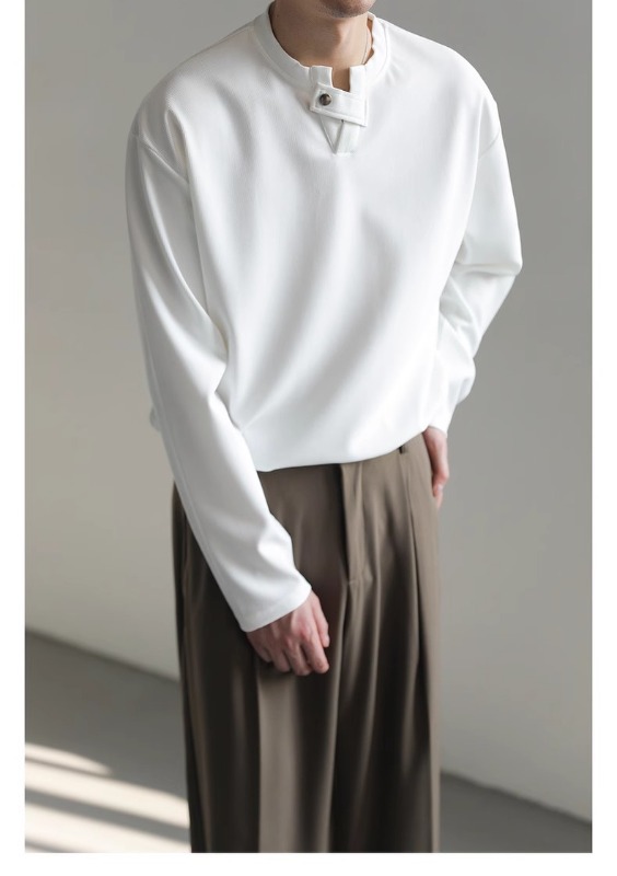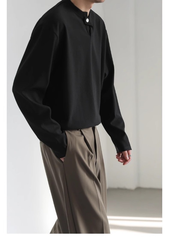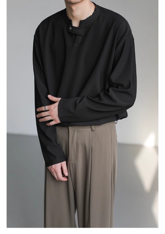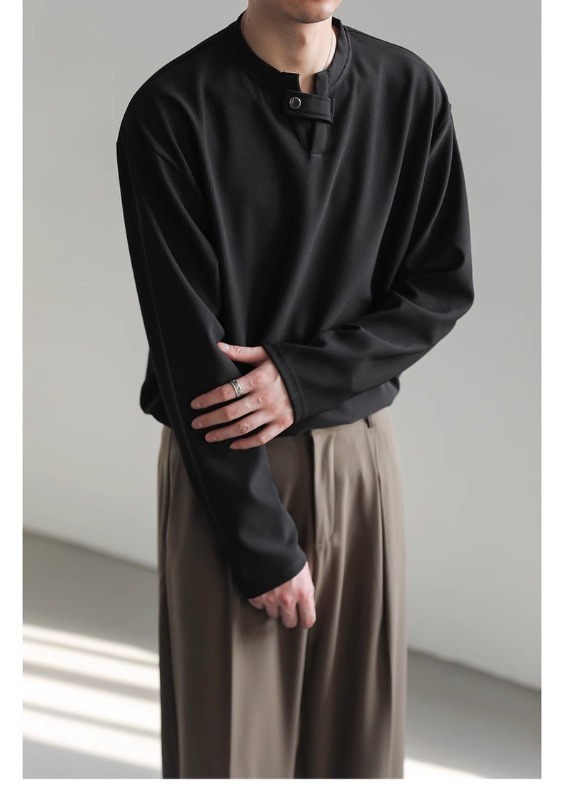 클린 핏 헨리 칼라 스웨터 남성과 여성의 봄 조수 브랜드 ruffian 잘 생긴 하이 엔드 느낌 무거운 미국 하이 스트리트 긴 소매 티셔츠스토어 가기