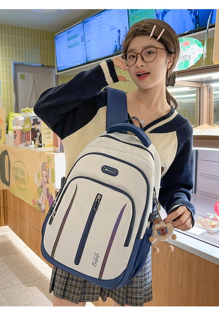 일본 색상 대비 세련된 나일론 배낭 대용량 시니어 고등학교 경량 배낭 여성 대학생 귀여운 배낭