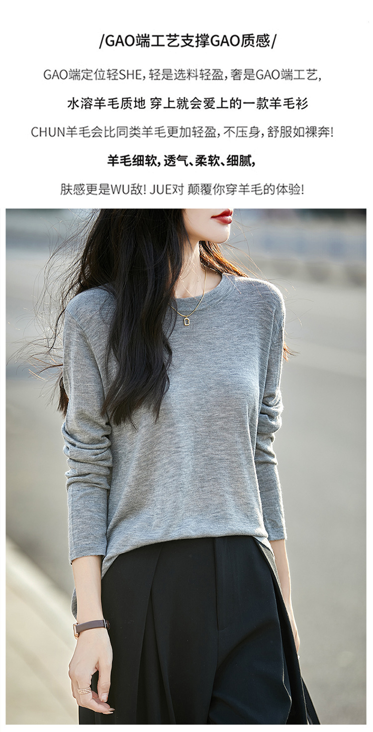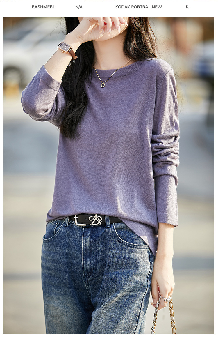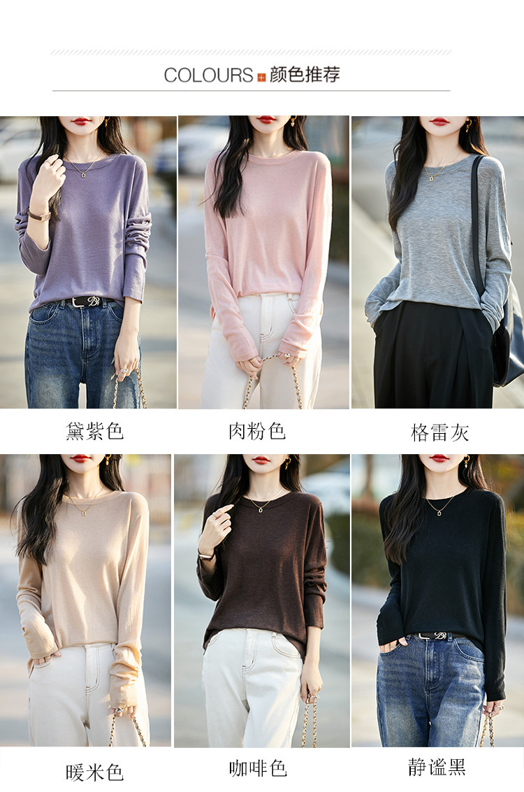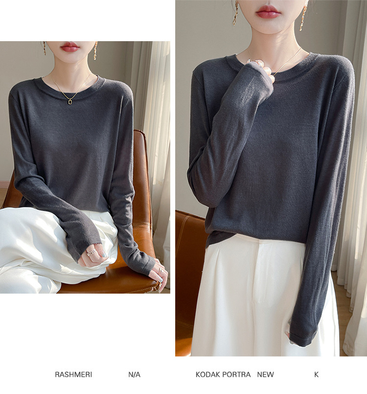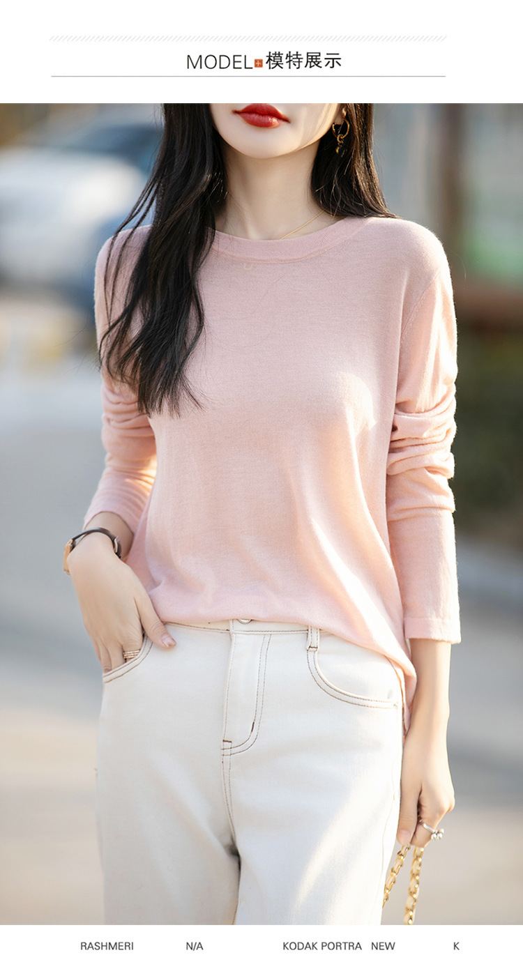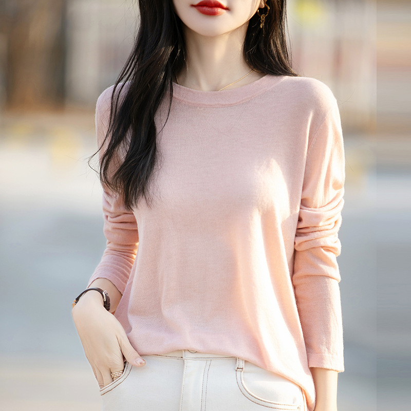 최악의 수용성 양모 풀오버 여성용 크루 넥 간단한 스웨터 솔리드 컬러 얇은 긴팔 니트베이스 셔츠