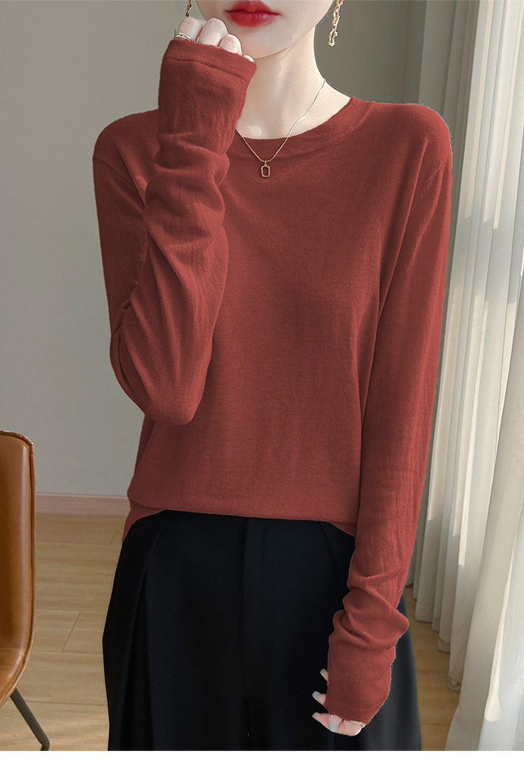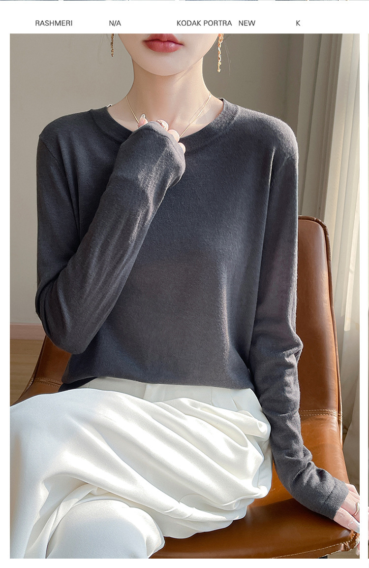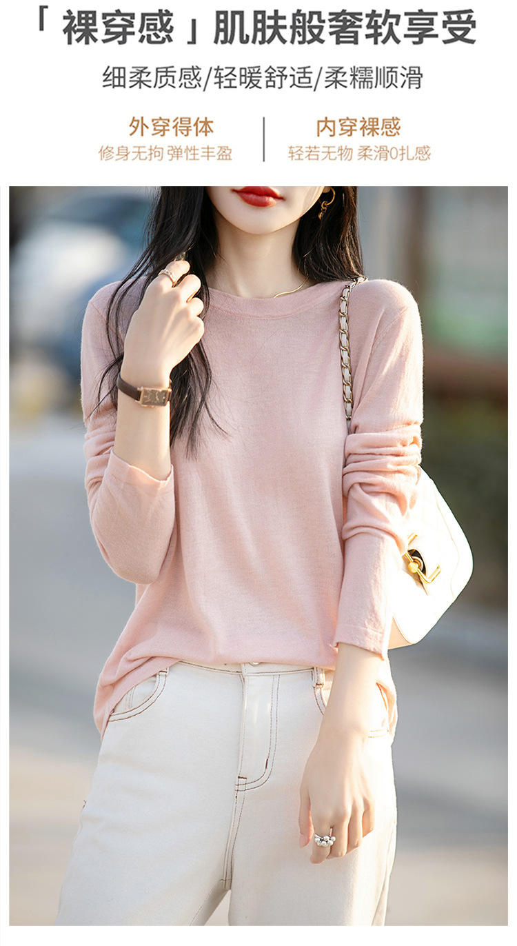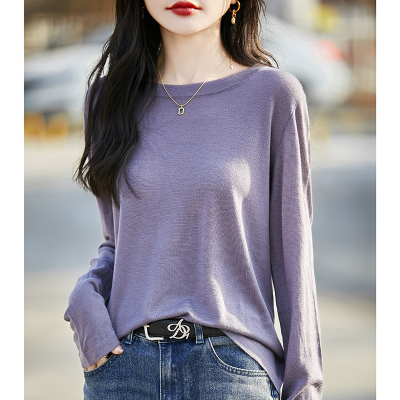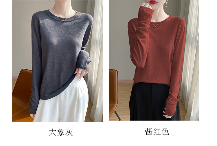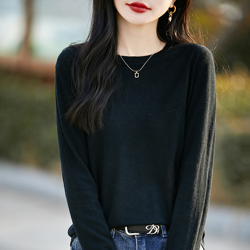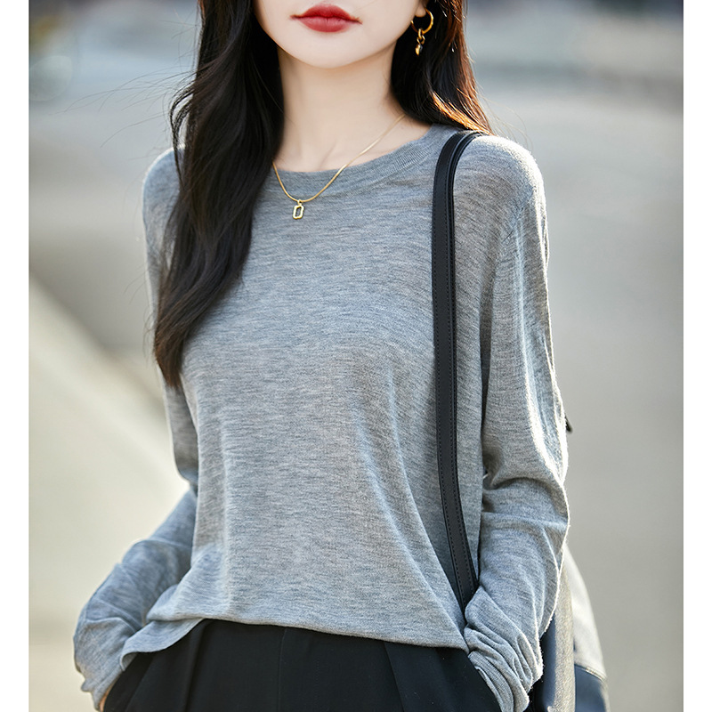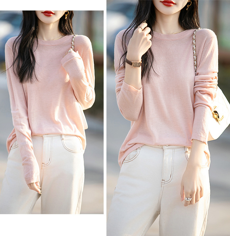최악의 수용성 양모 풀오버 여성용 크루 넥 간단한 스웨터 솔리드 컬러 얇은 긴팔 니트베이스 셔츠