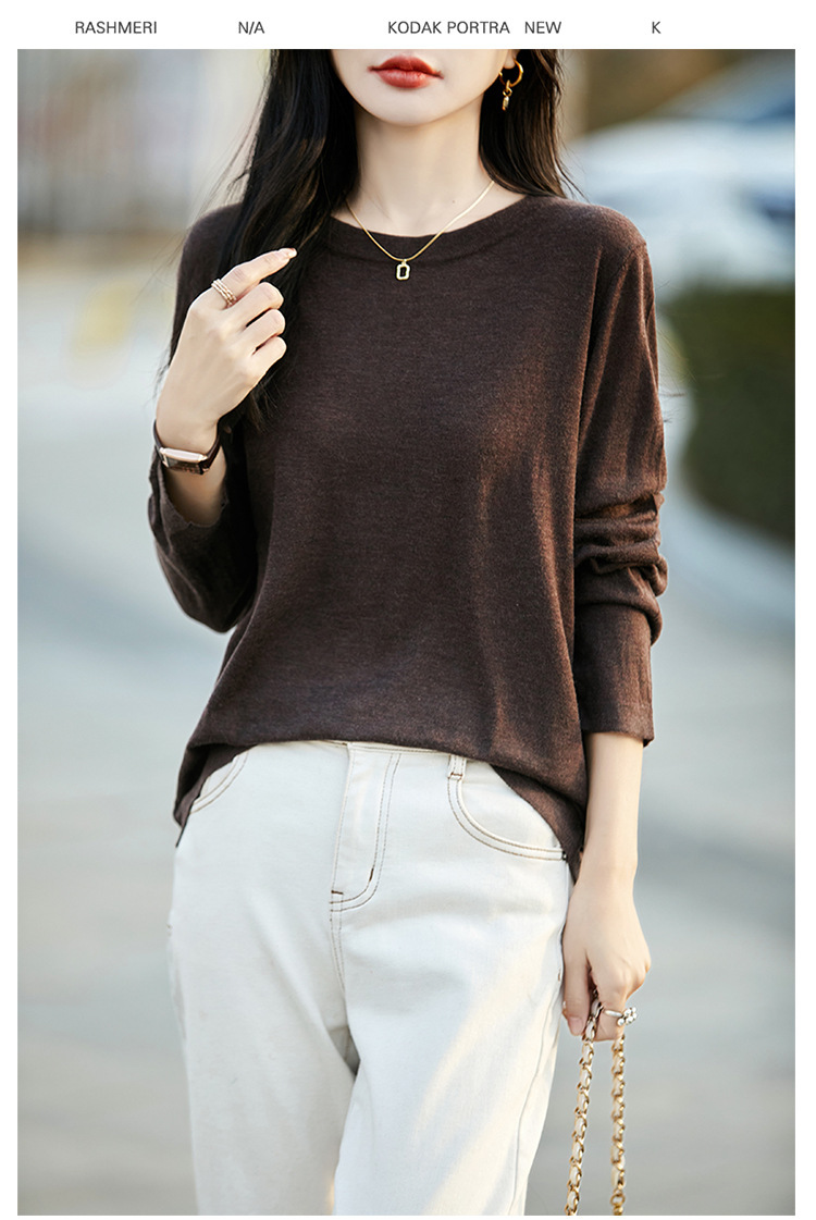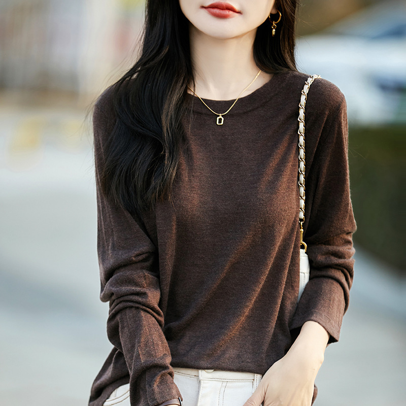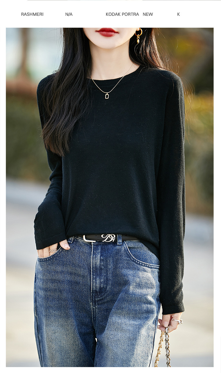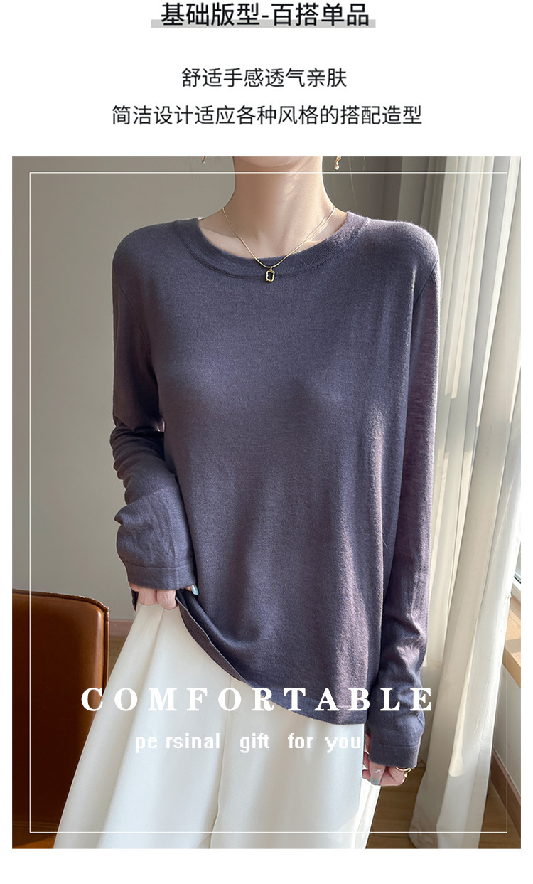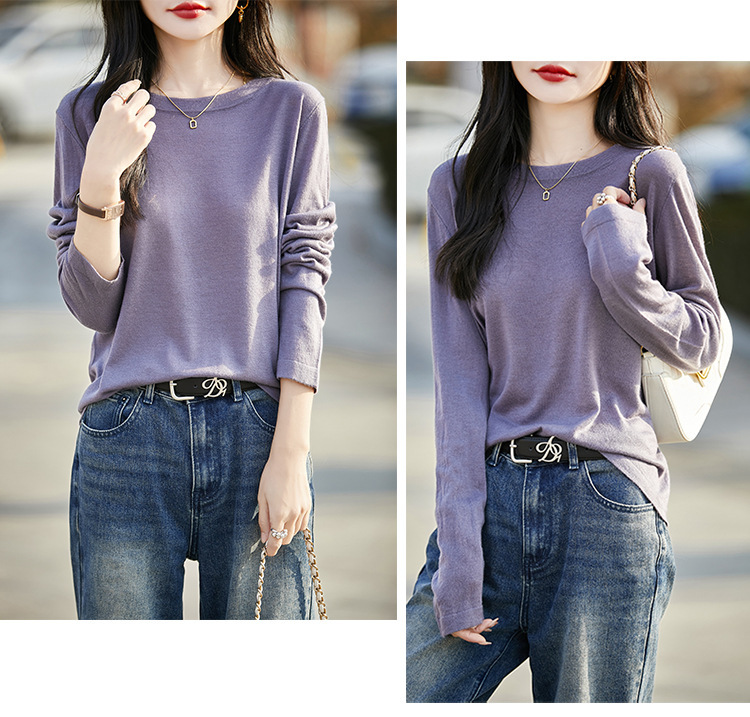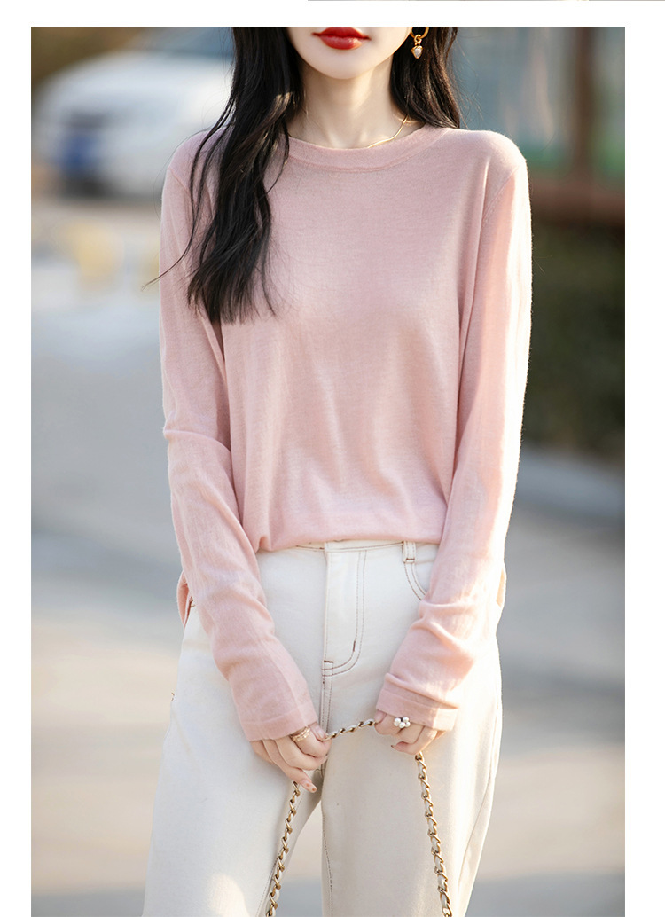 최악의 수용성 양모 풀오버 여성용 크루 넥 간단한 스웨터 솔리드 컬러 얇은 긴팔 니트베이스 셔츠
