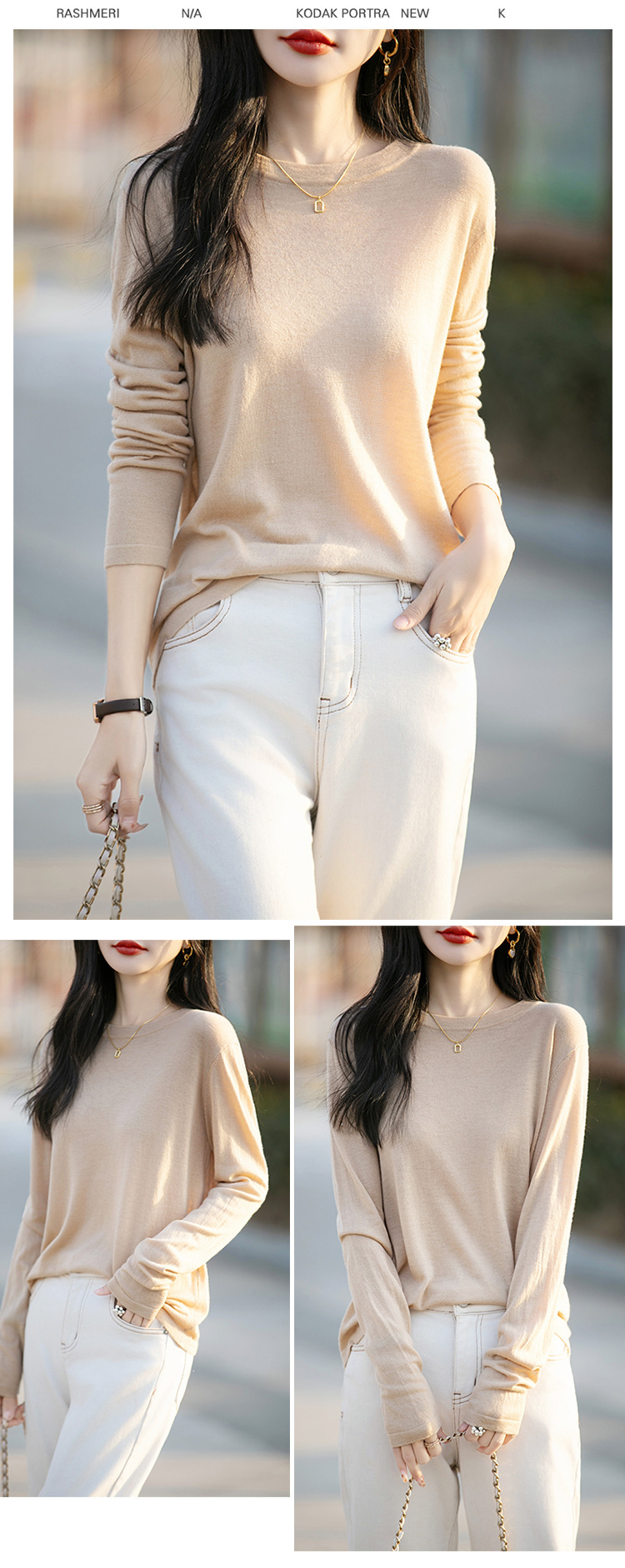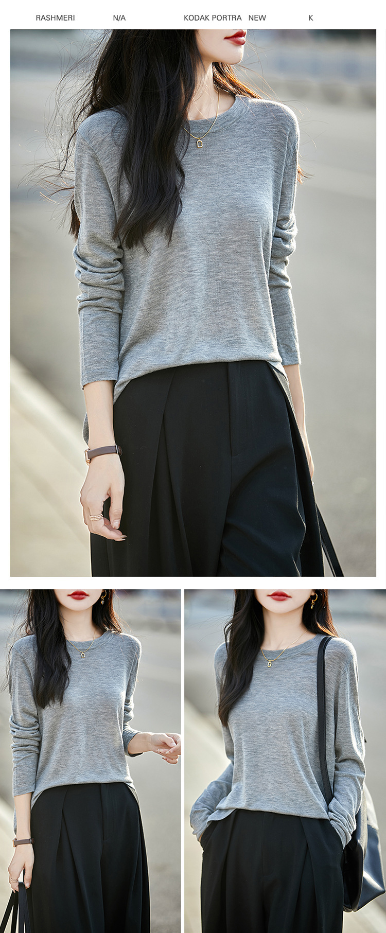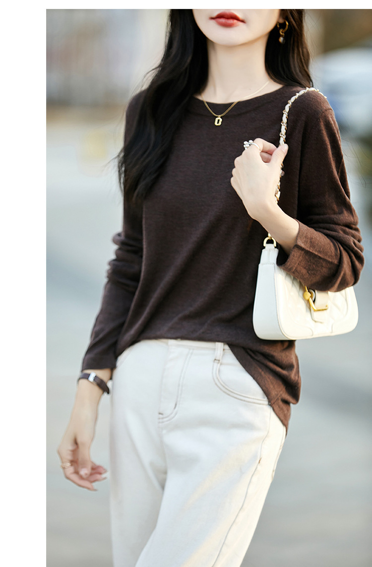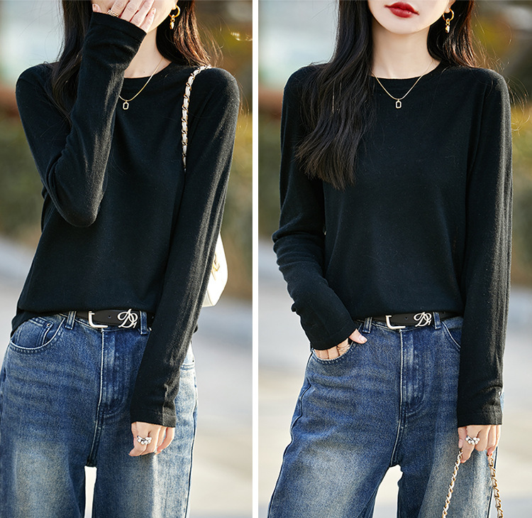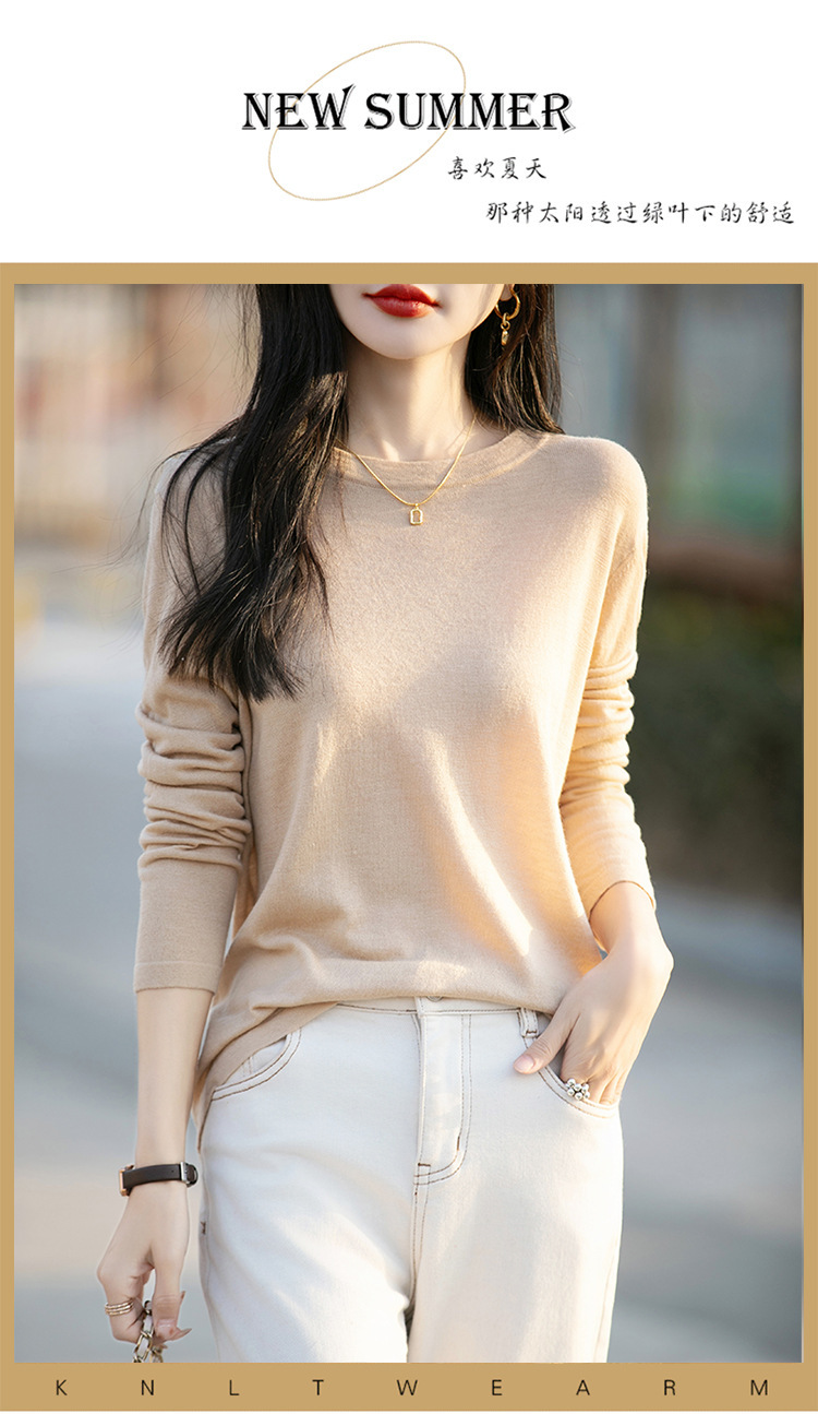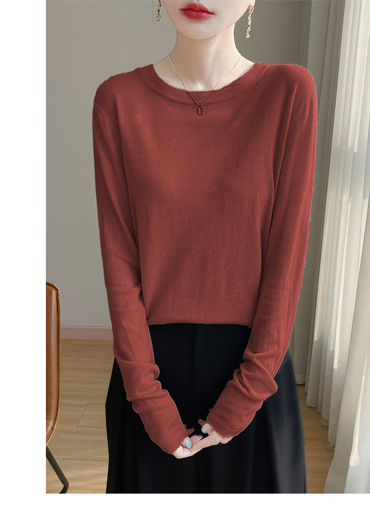 최악의 수용성 양모 풀오버 여성용 크루 넥 간단한 스웨터 솔리드 컬러 얇은 긴팔 니트베이스 셔츠
