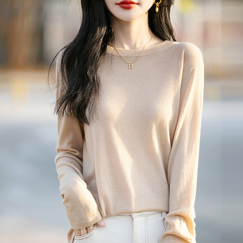 최악의 수용성 양모 풀오버 여성용 크루 넥 간단한 스웨터 솔리드 컬러 얇은 긴팔 니트베이스 셔츠스토어 가기