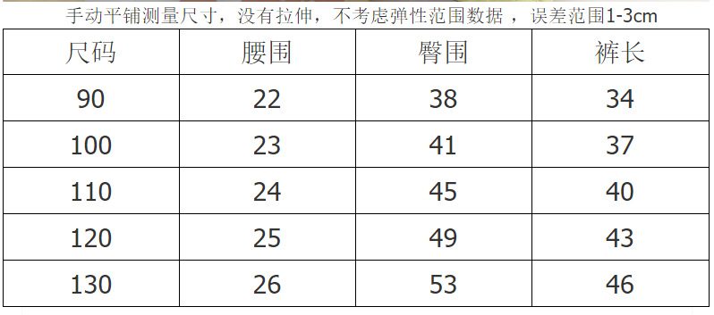 手动平铺测量尺寸,没有拉伸,不考虑弹性范围数据 ,误差范围1-3cm