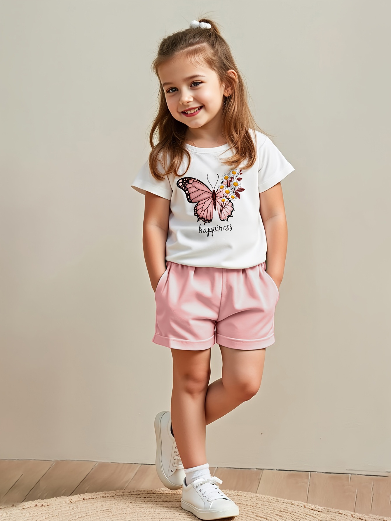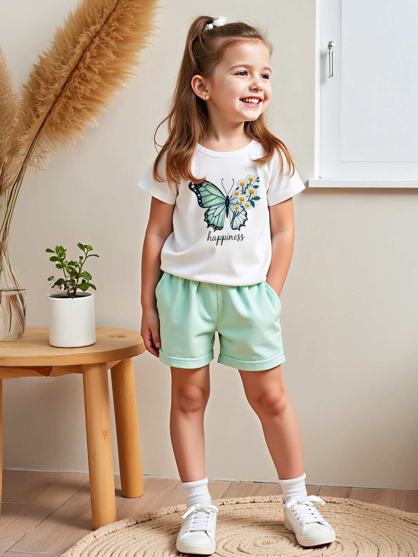P8395 국경 대외 무역 INS 여자 패션 나비 인쇄 반팔 티셔츠 여름 반바지 세트 2 조각