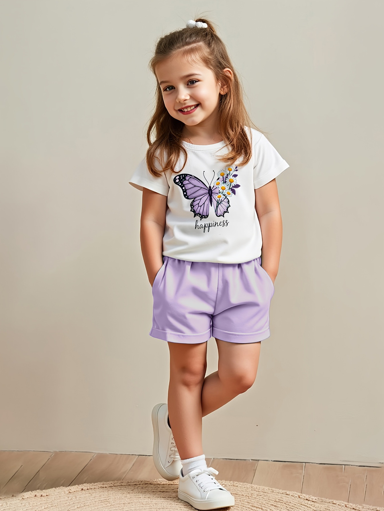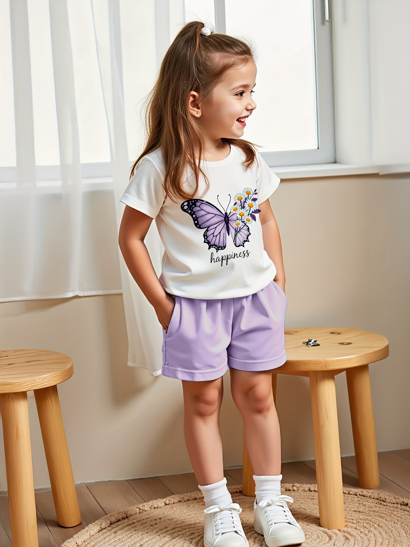 P8395 국경 대외 무역 INS 여자 패션 나비 인쇄 반팔 티셔츠 여름 반바지 세트 2 조각스토어 가기