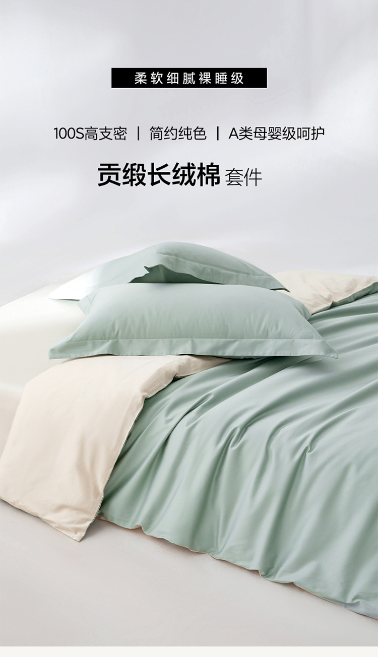 고급 A급 100S 새틴 장섬유 면 이중 혼방 4종 세트 순면 침대 시트 이불 커버 매트리스 커버 도매 공동구매스토어 가기