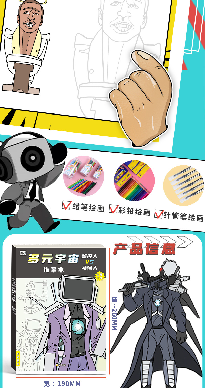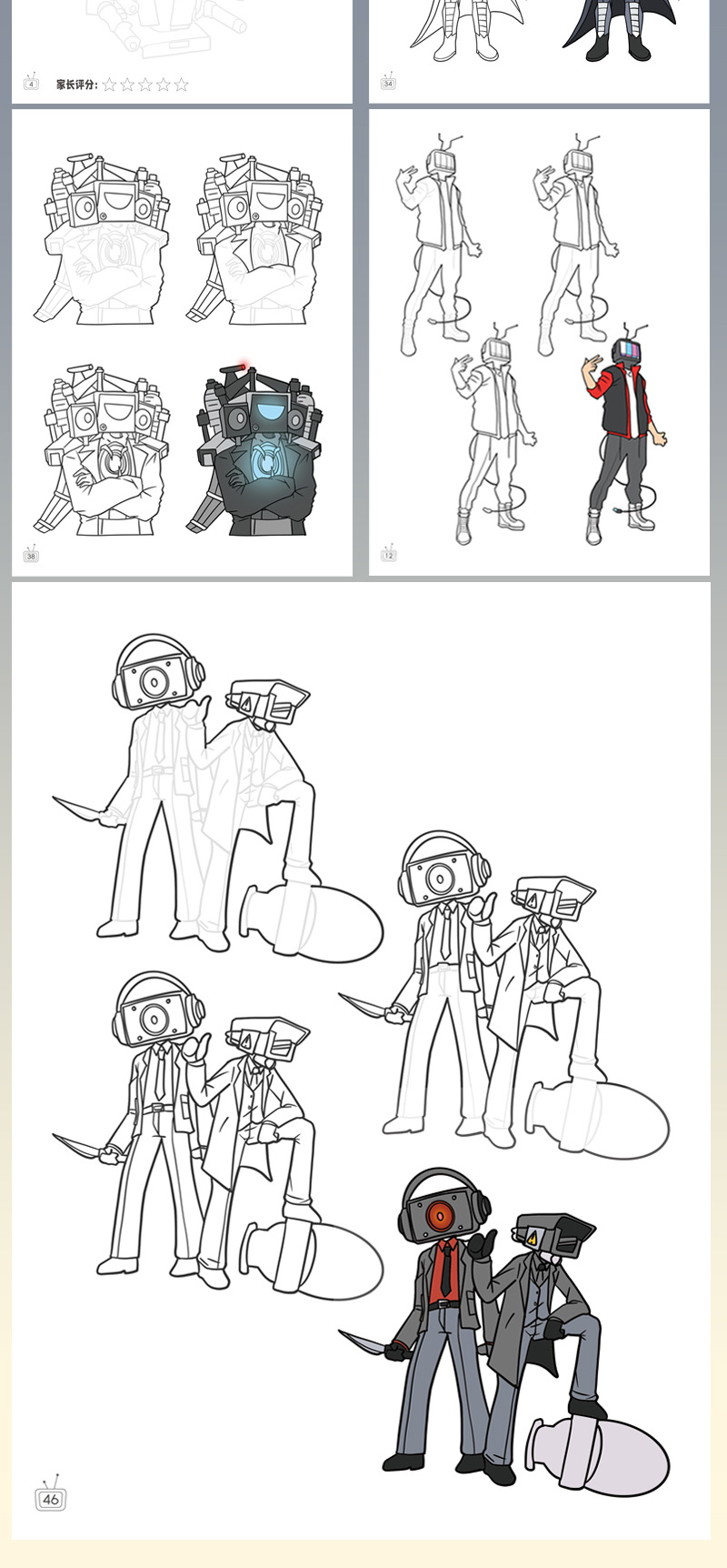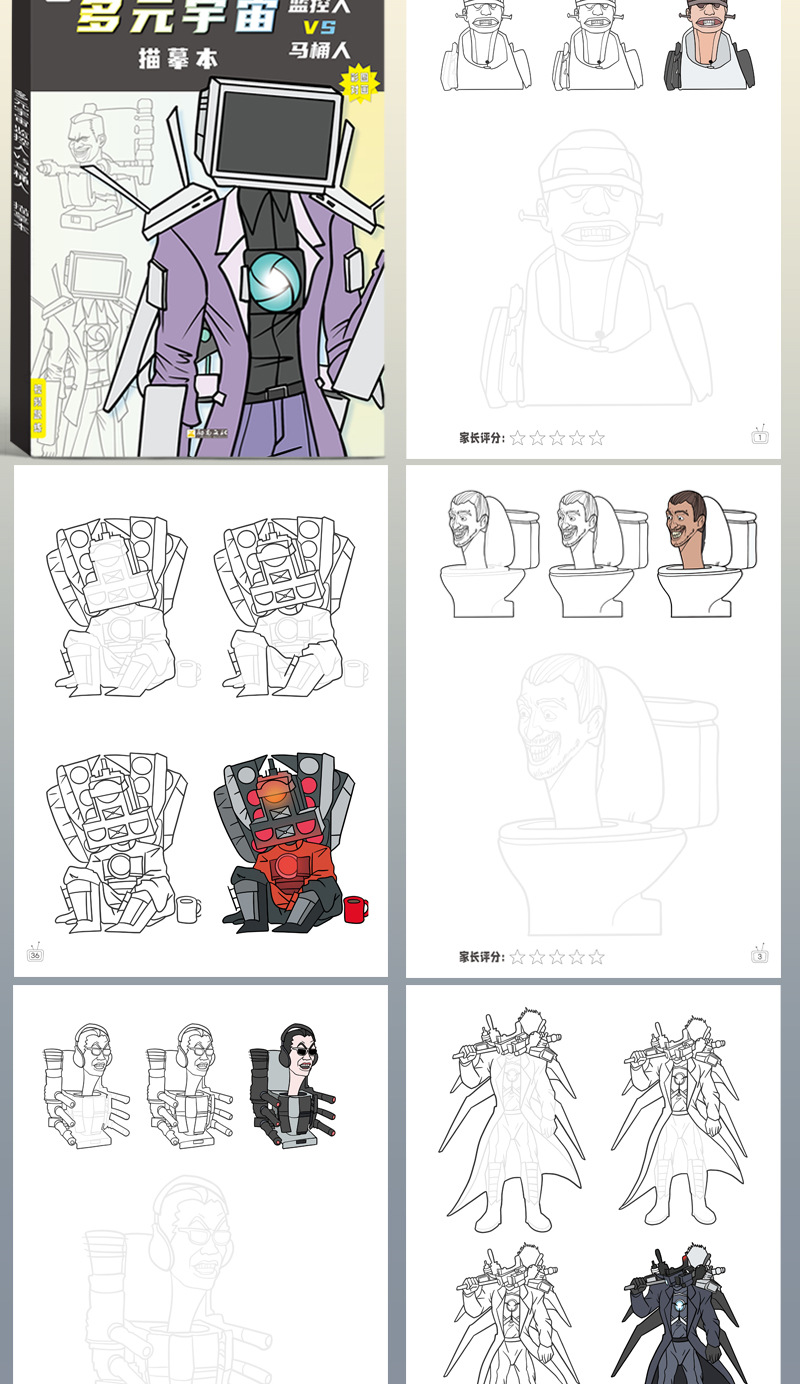 사람과 화장실 사람 다중 애니메이션 추적 책 제어 스트로크 페인팅 책 그리기 초등학생 스케치북 모니터링스토어 가기