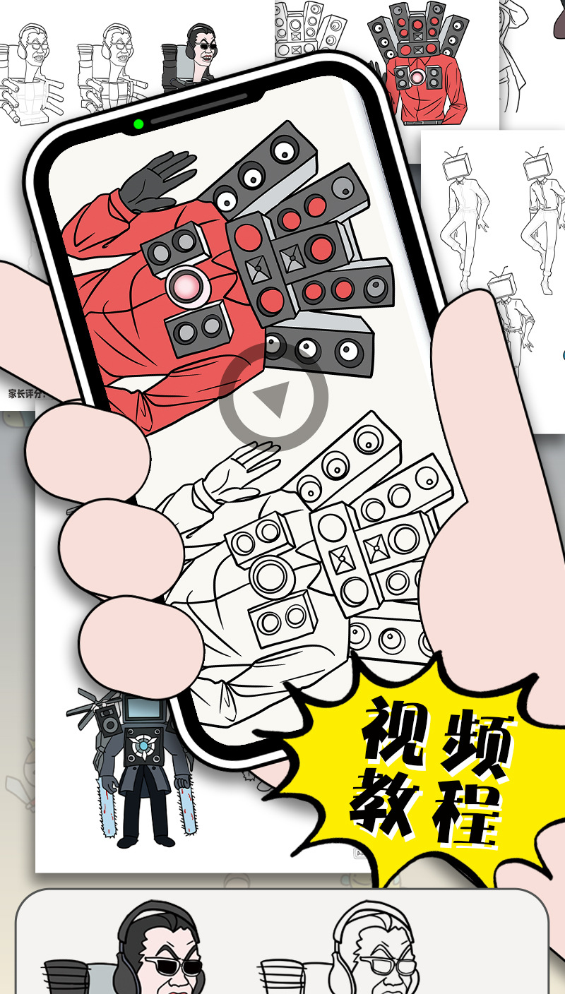 사람과 화장실 사람 다중 애니메이션 추적 책 제어 스트로크 페인팅 책 그리기 초등학생 스케치북 모니터링