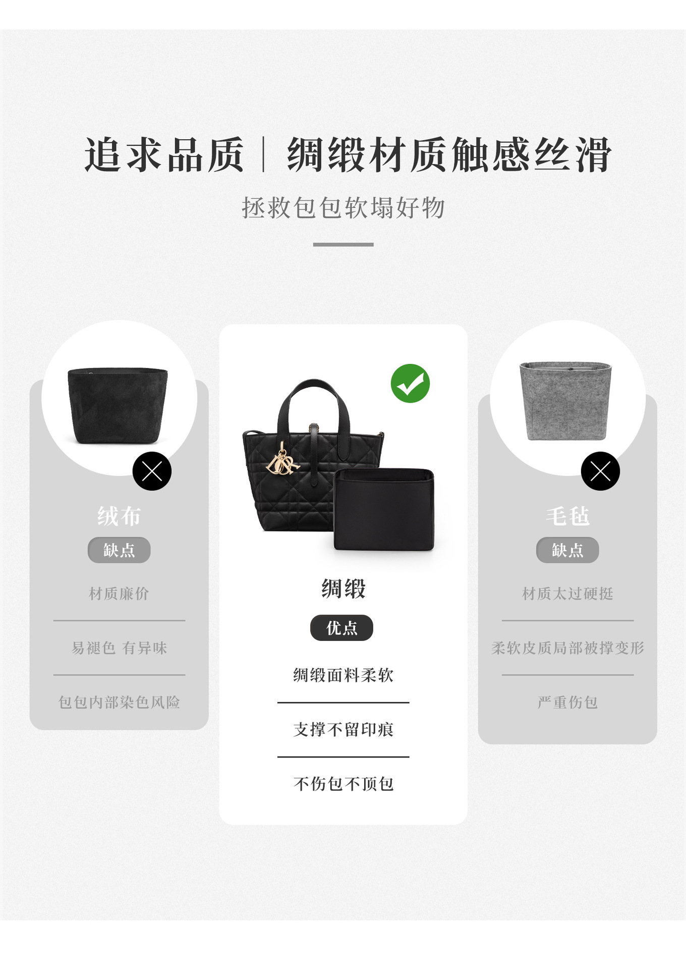 세로형 투주르 이너백 실크 새틴 수납 이너백 화장품 가방 토트백 이너백 중간 가방 지지대