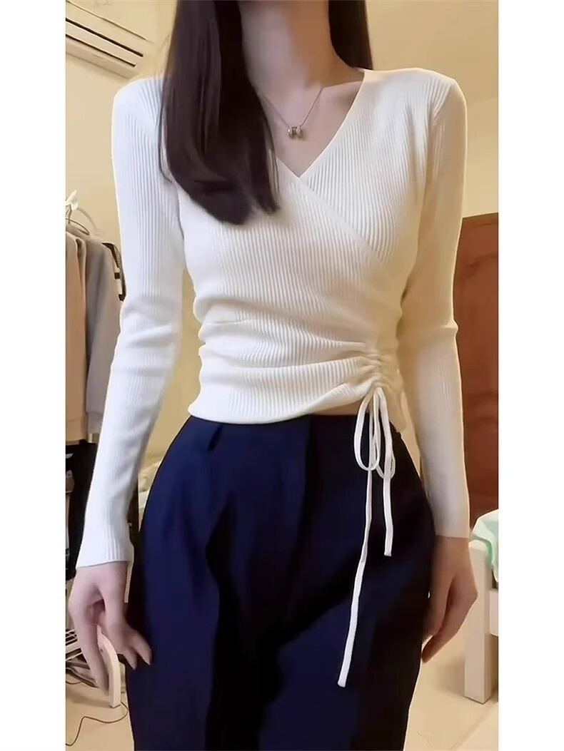 니트 베이스 셔츠 여성용 가을 겨울 스웨터 내부 슬림 핏 세련된 아름다운 긴팔 탑 가을 여성의 2024 새로운
