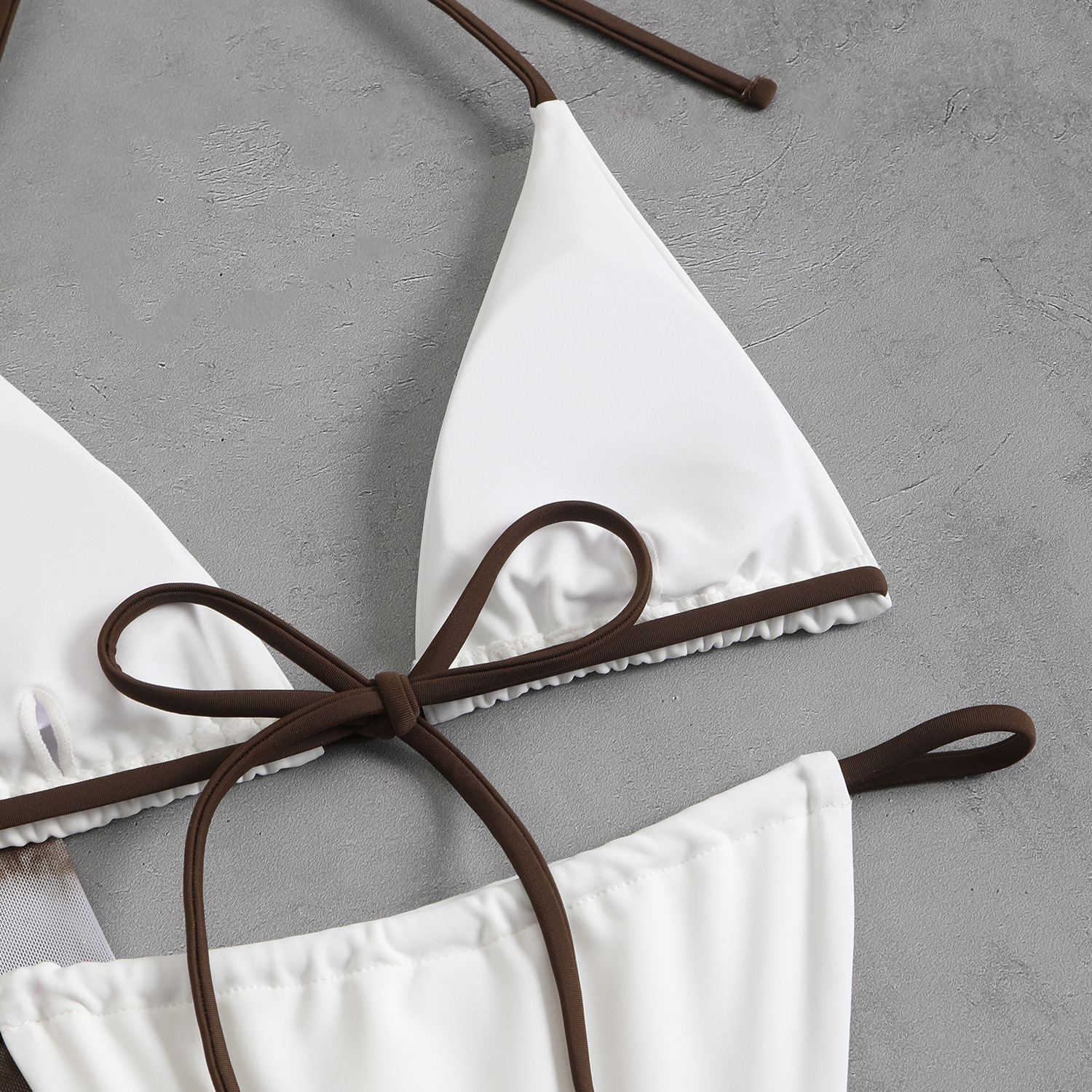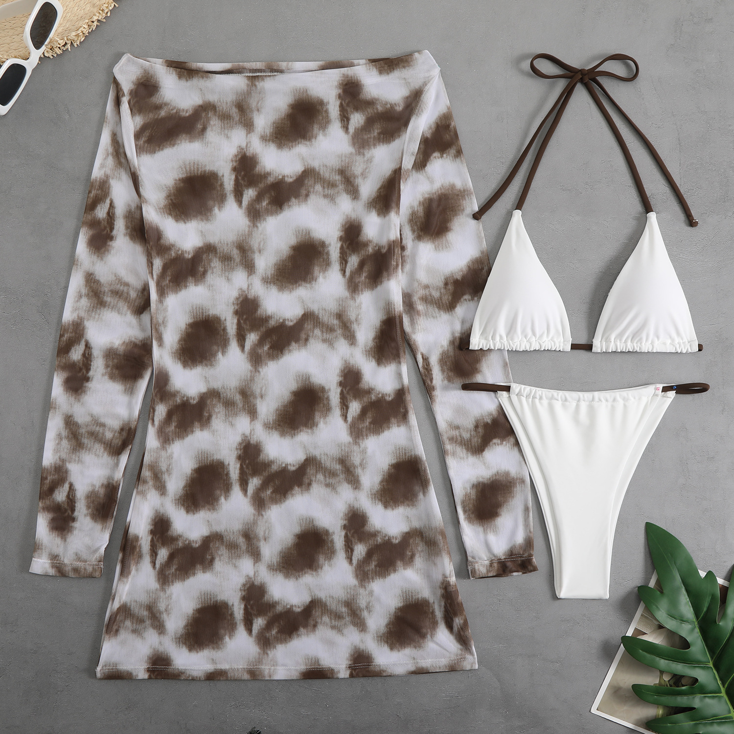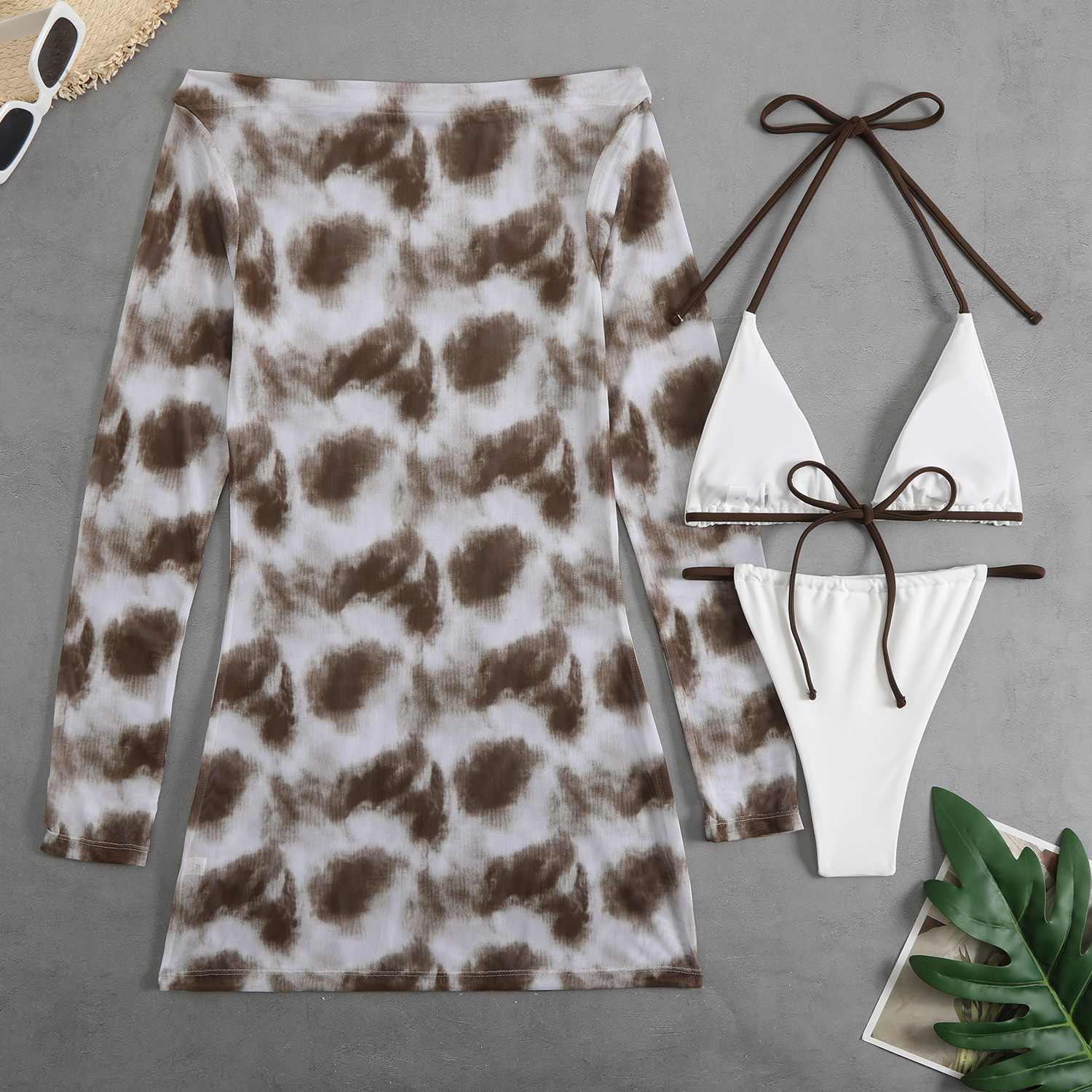 국경 2025 유럽과 미국의 대외 무역 새로운 단색 디지털 인쇄 레이스 업 넥 아마존 비키니 3 피스 세트