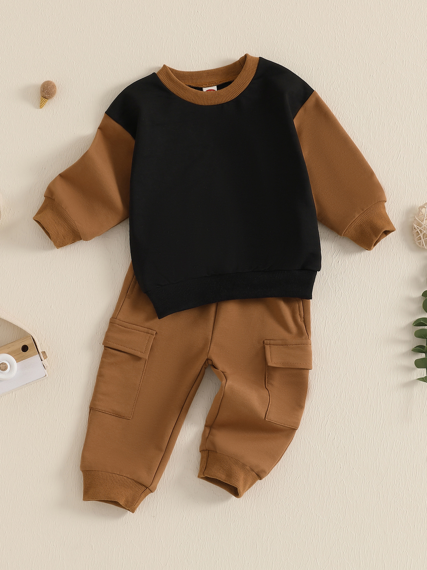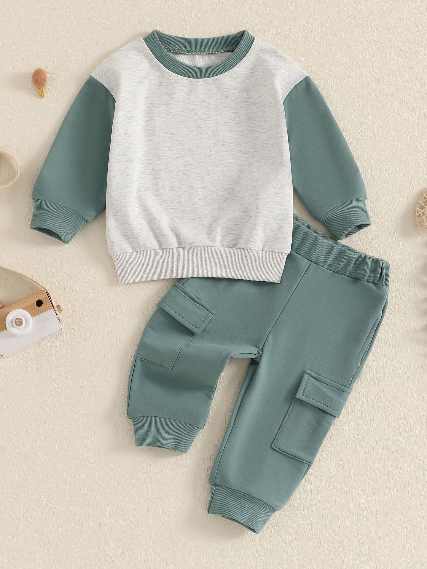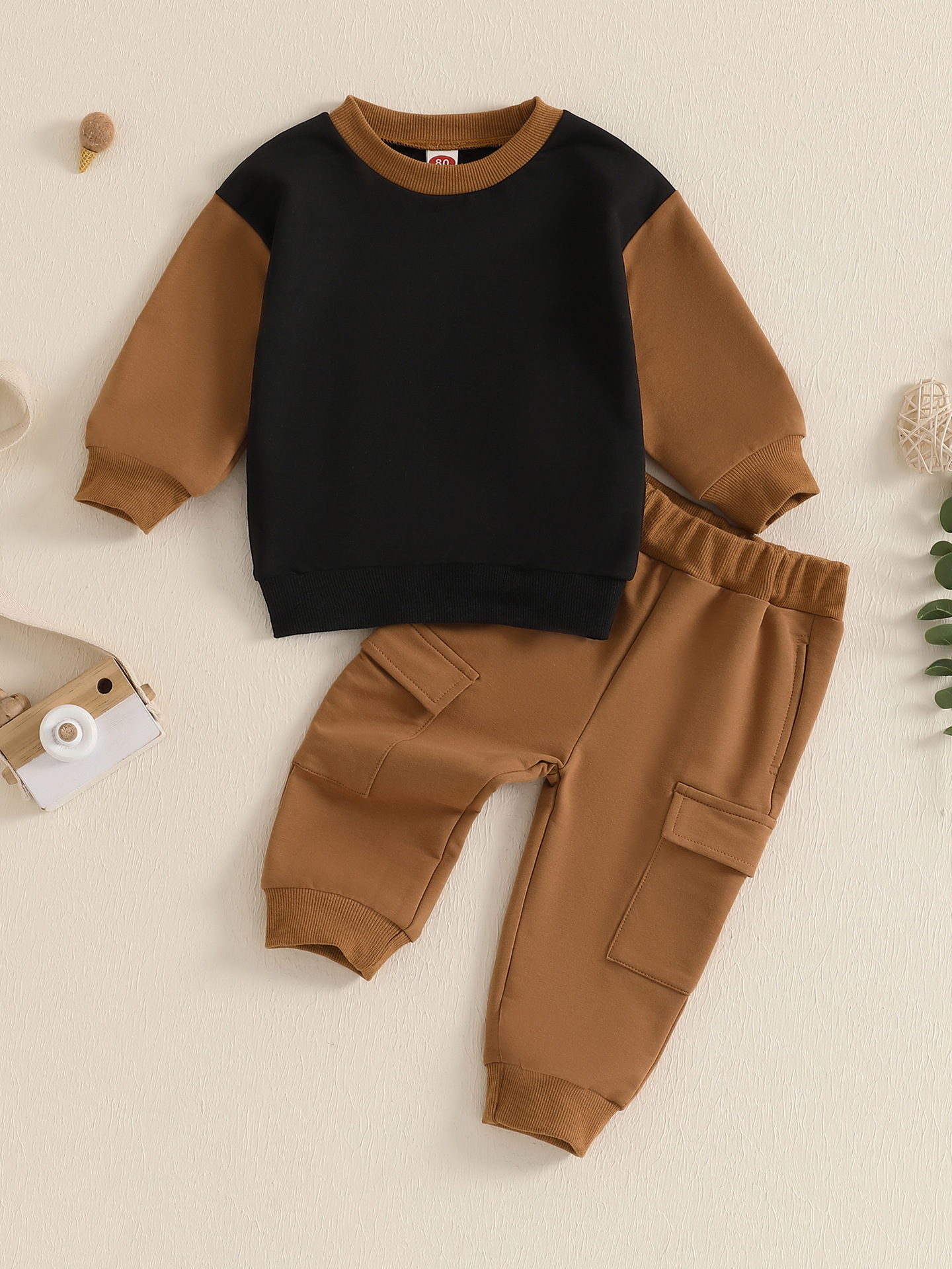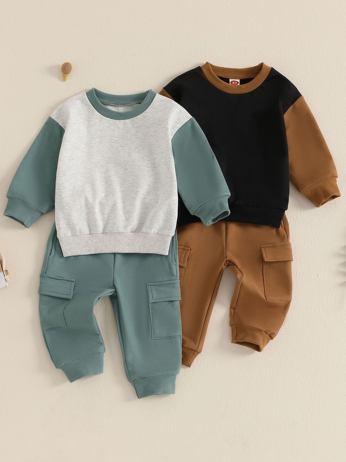 새로운 아기 아기 봄 가을 겨울 3 시즌 스포츠 컬러 매칭 긴 소매 스웨터 세트스토어 가기