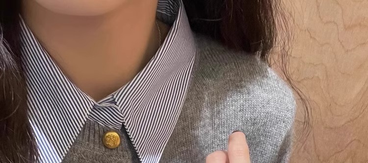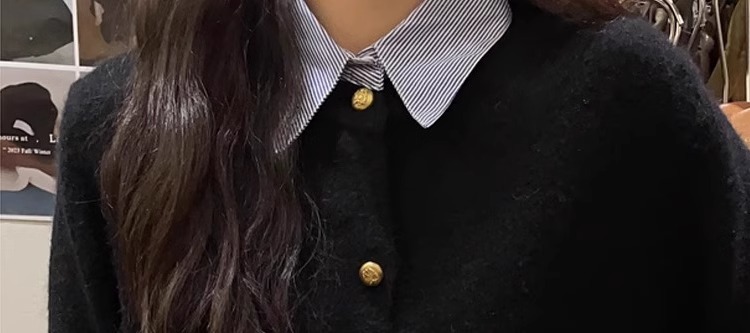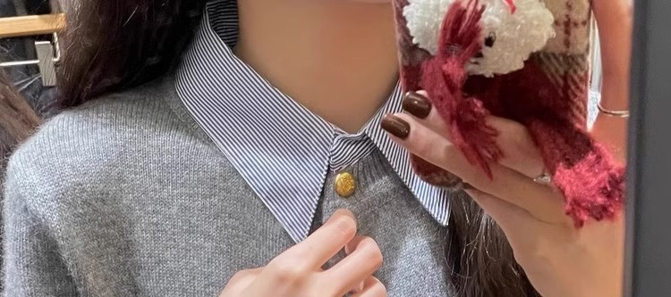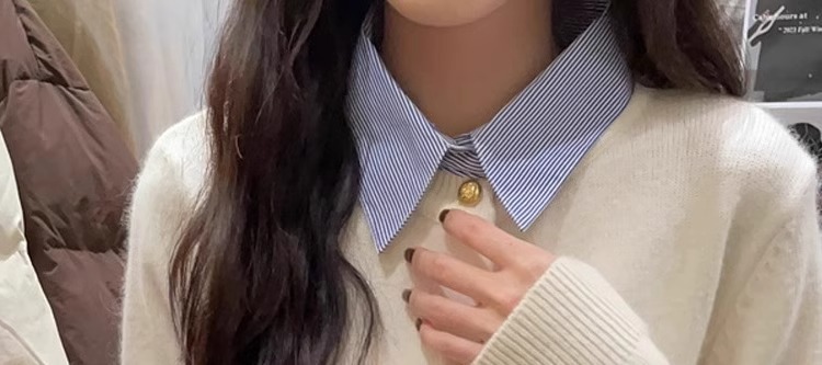회색 셔츠 칼라 바느질 가짜 투피스 스웨터 여성의 봄과 가을 작은 슬림핏 내부 니트 카디건 옷깃 탑스토어 가기