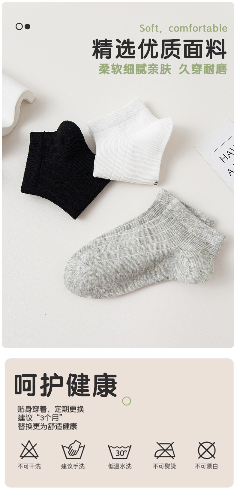 봄과 여름 새로운 어린이 양말 도매 흑백 학생 양말 뼈없는 비 필링 어린이 보트 양말 공장 직접 판매