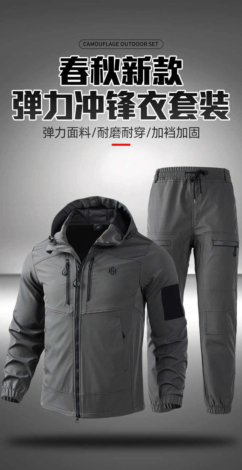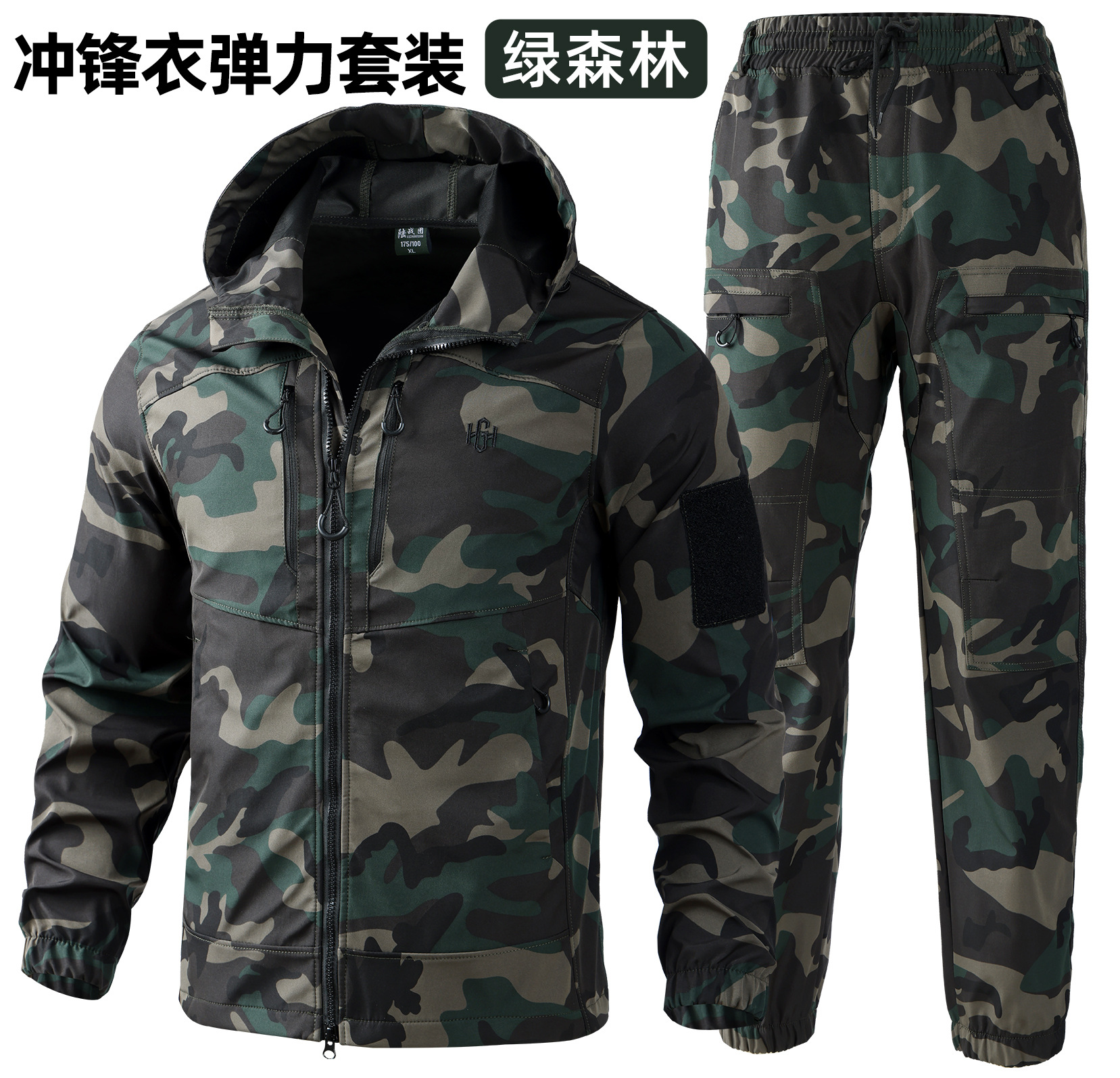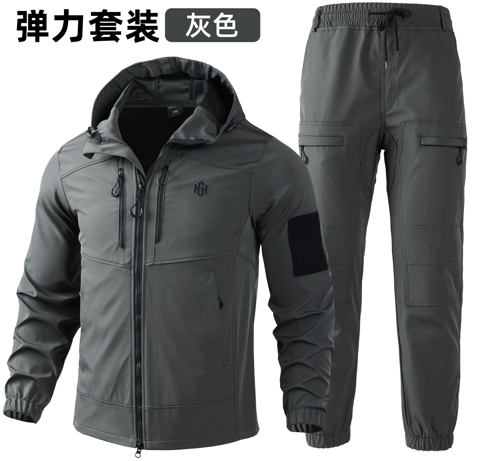야외 폭행 의류 작업복 세트 남성 봄과 가을 탄성 공구 노동 보호 의류 내마모성 위장 의류 후드 훈련 의류