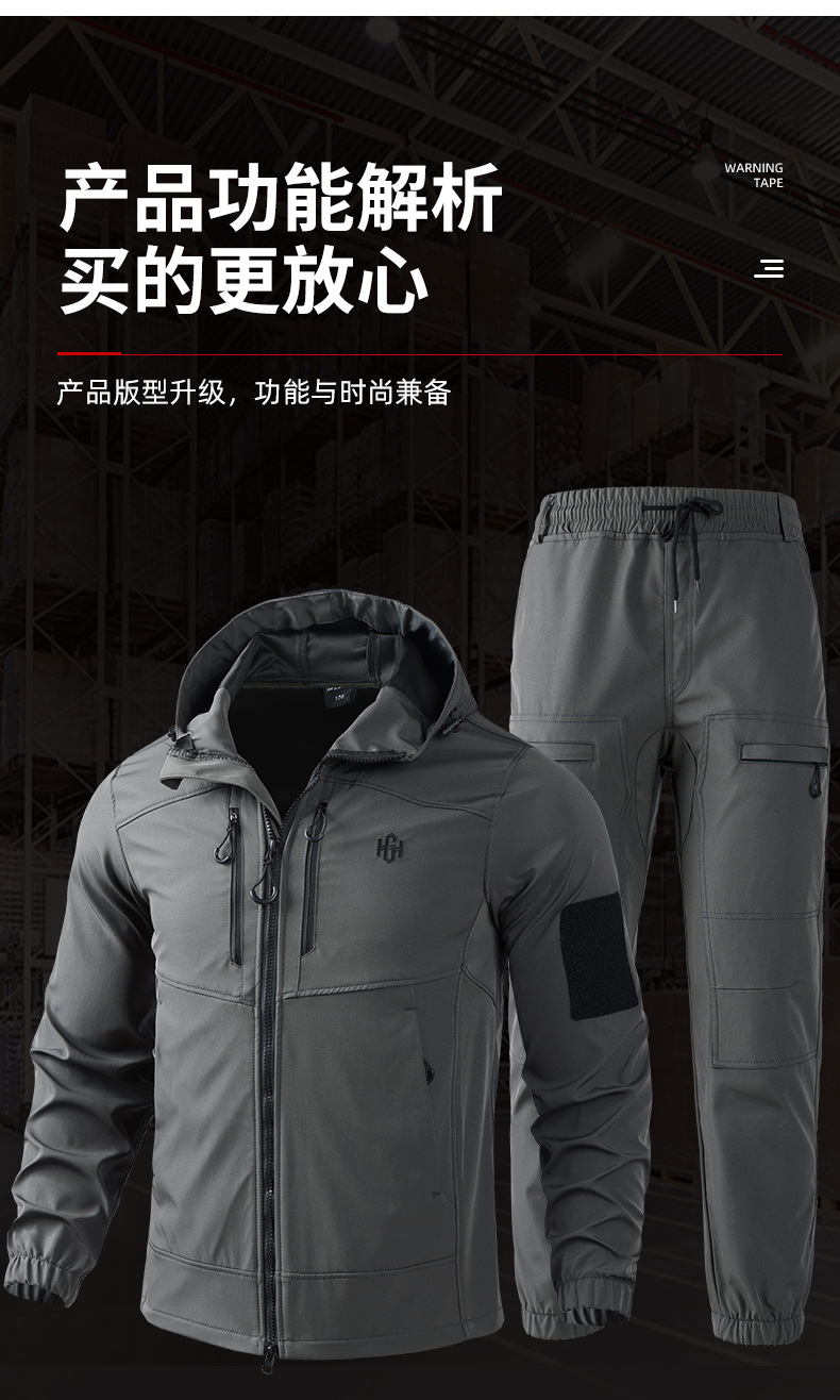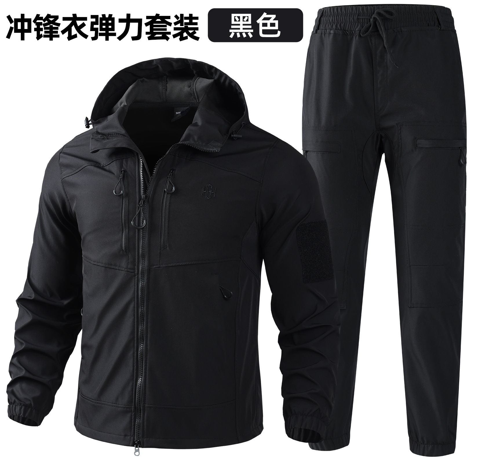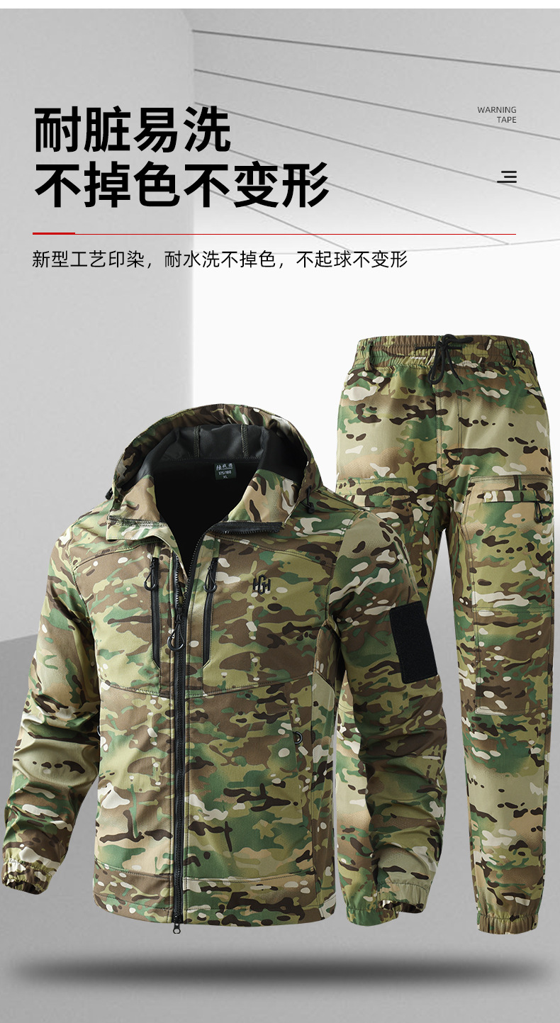 야외 폭행 의류 작업복 세트 남성 봄과 가을 탄성 공구 노동 보호 의류 내마모성 위장 의류 후드 훈련 의류