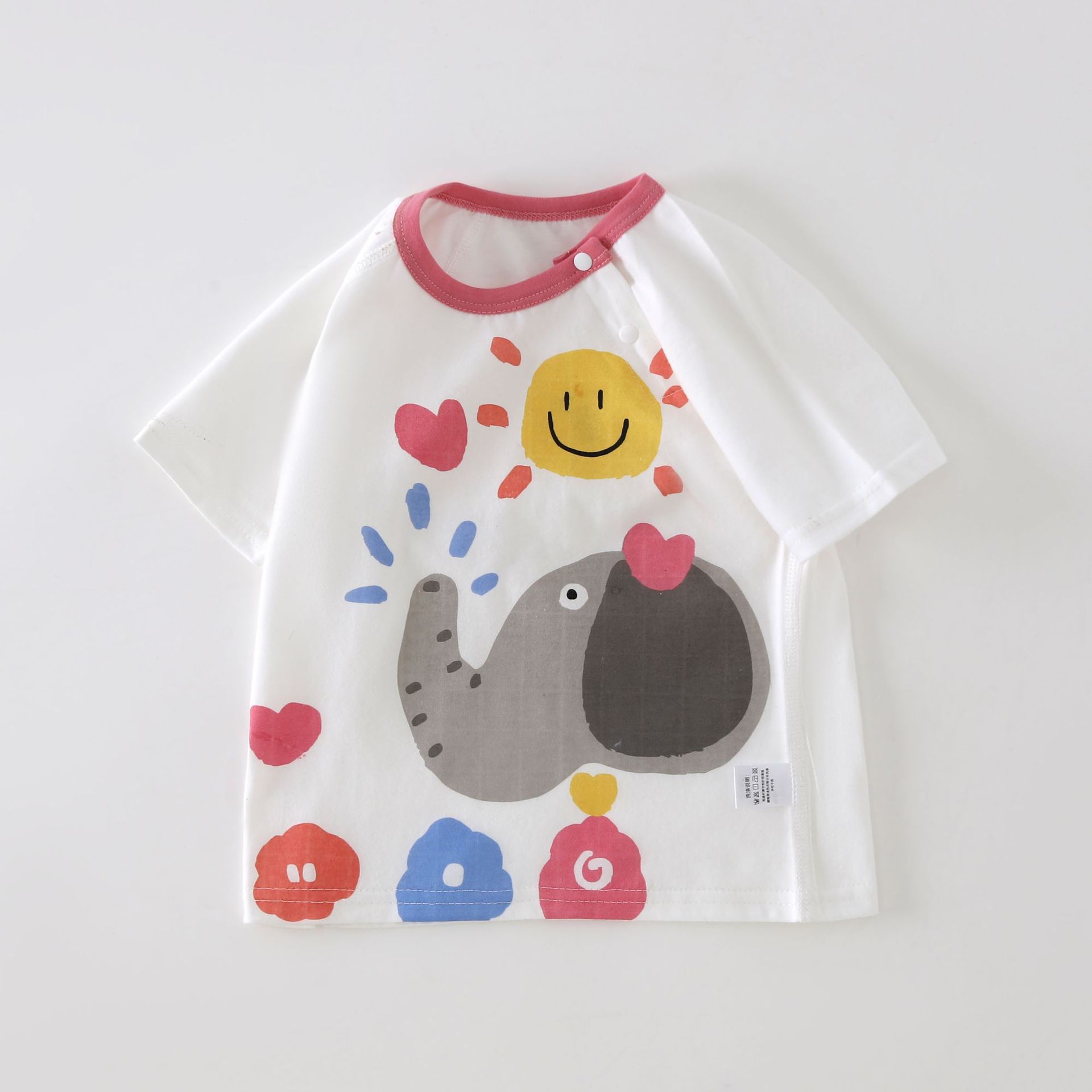 돼지 데이비드 2025 여름 새로운 어린이 티셔츠 소년 소녀 짧은 소매 아기 탑 작은 어린이 아기 옷