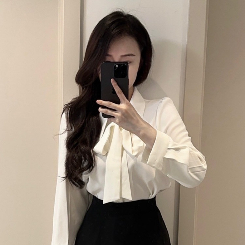 인터뷰용 쉬폰 셔츠 여성용 루즈핏 리본 봄 정장 화이트 긴팔 셔츠 여성용 베이스 레이어 상의스토어 가기