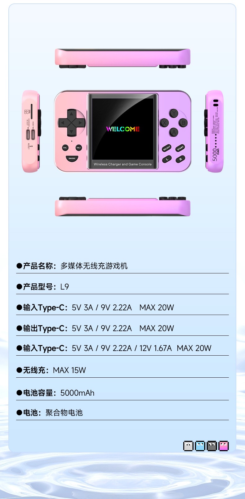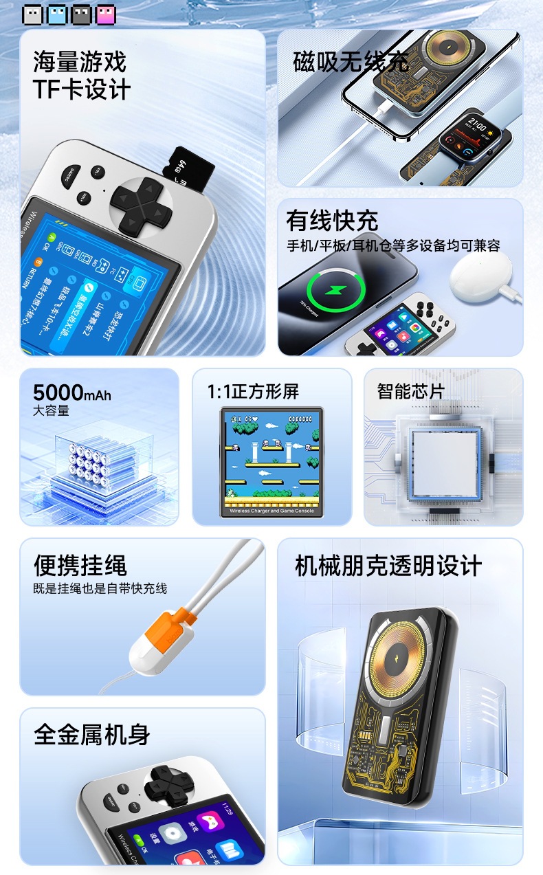 AMPOWN 국경 L9 휴대용 게임 콘솔 충전 보물 자기 흡입 무선 충전 편리한 뮤직 비디오 플레이어