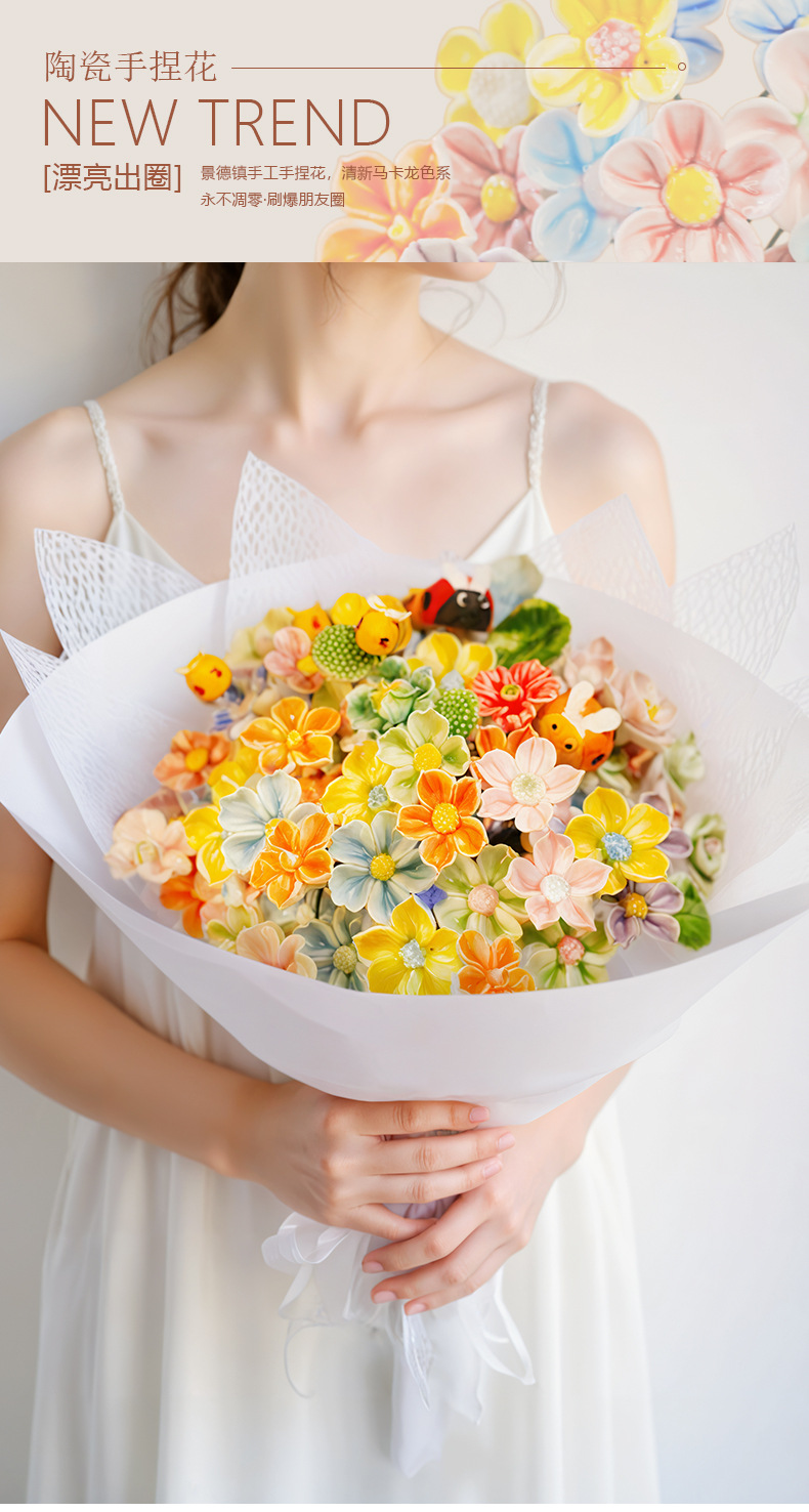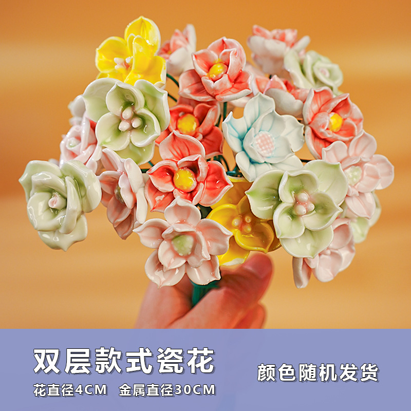 • 더블 레이어 스타일 도자기 꽃 1개(색상 무작위 배포)