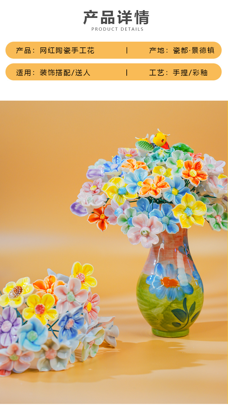 세라믹 꽃병, 경덕진 수공예 도자기 꽃병, 장식용 화분, 소품, 꽃기구, 인공꽃, 영구꽃, 꽃꽂이, 꽃다발스토어 가기