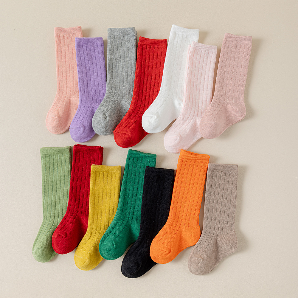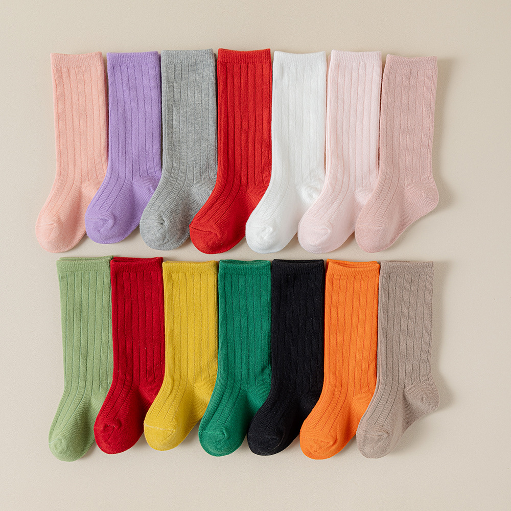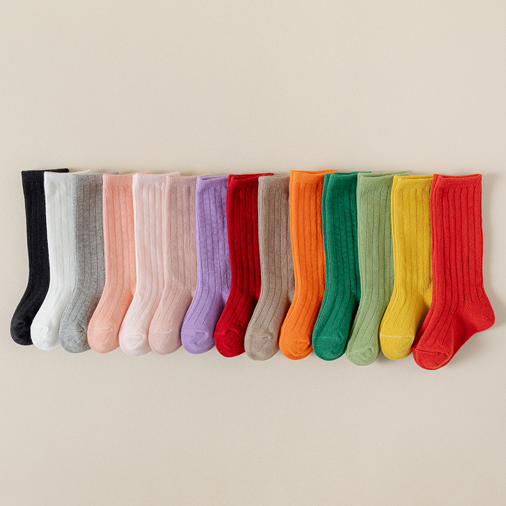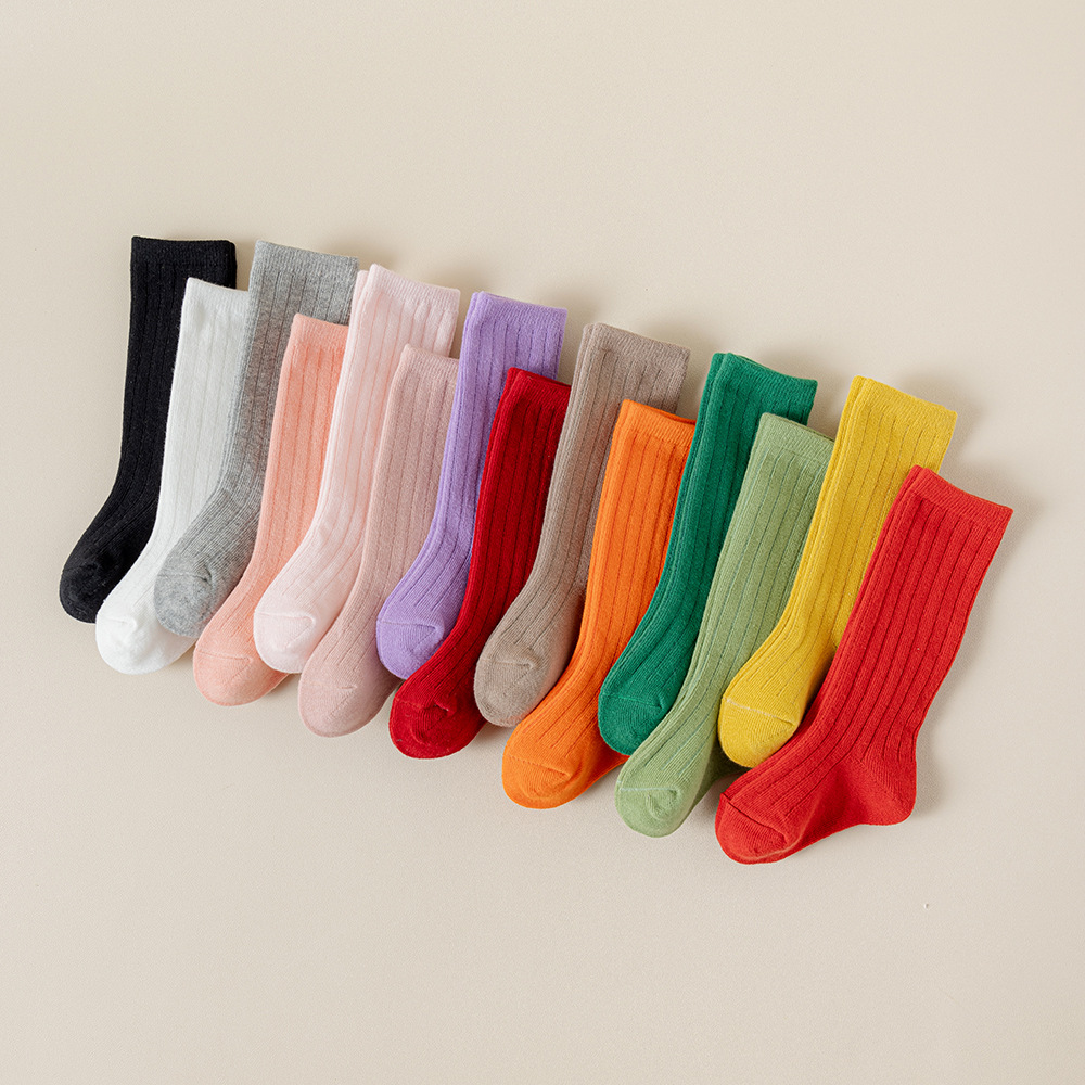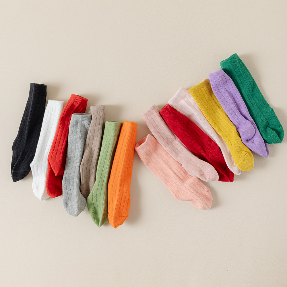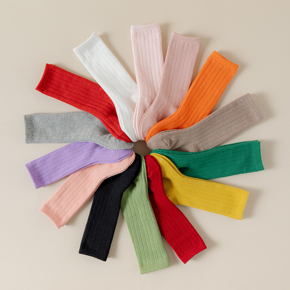 캔디 컬러 어린이 양말 봄과 가을 사계절 튜브 양말 단색 귀여운 소녀 아기 어린이 종아리 양말 도매