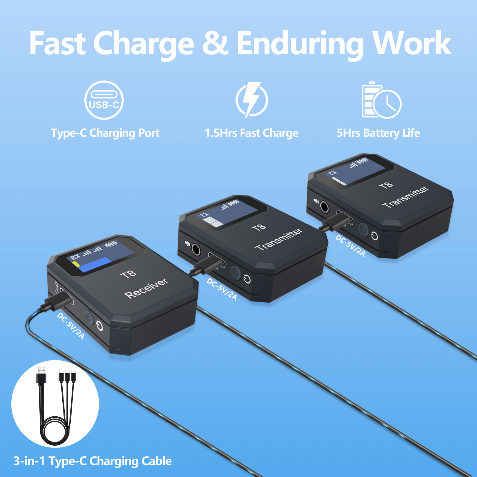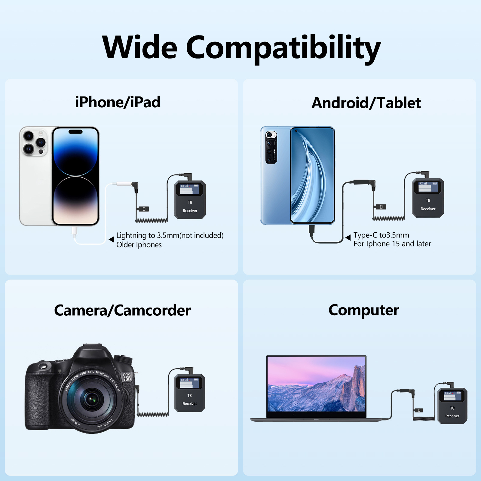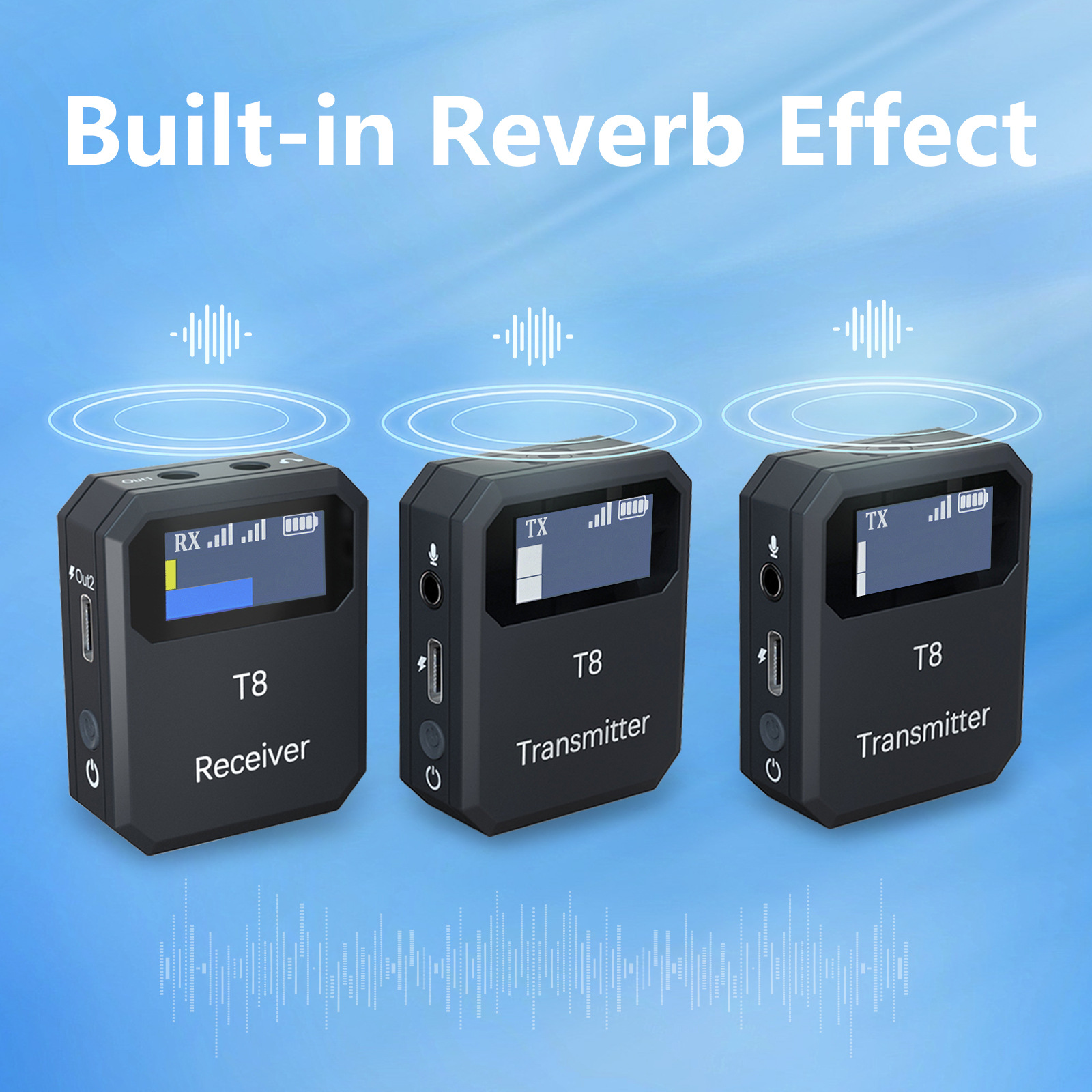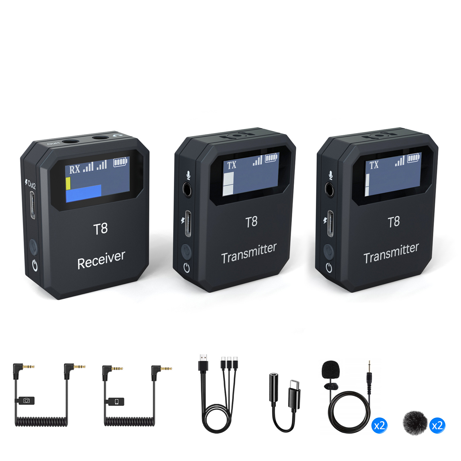 T8 두 드래그 한 무선 칼라 클립 마이크 지능형 소음 감소 마이크 라디오 녹음 야외 생방송 마이크