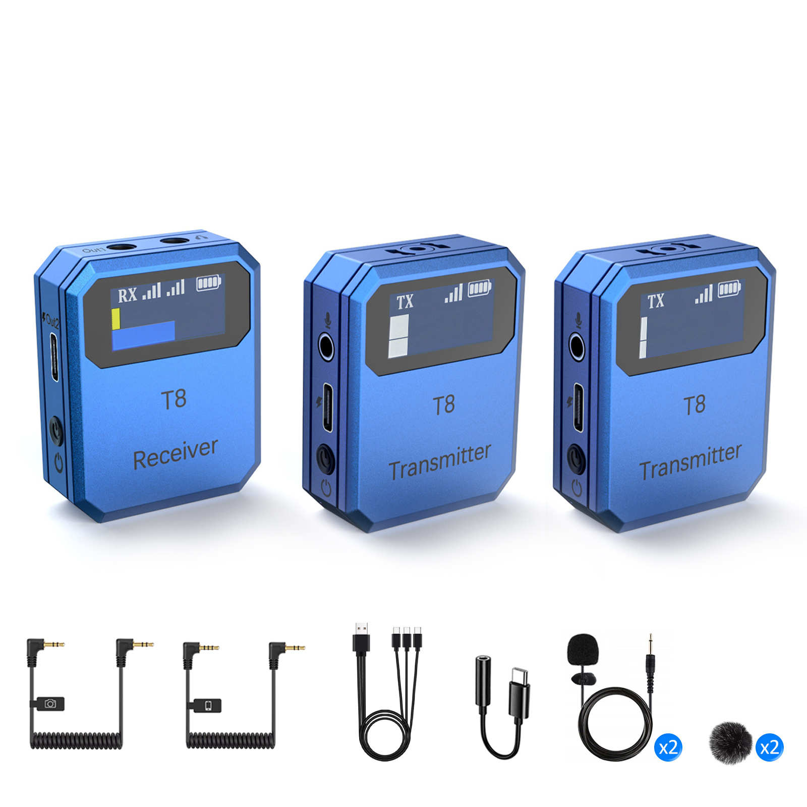 T8 두 드래그 한 무선 칼라 클립 마이크 지능형 소음 감소 마이크 라디오 녹음 야외 생방송 마이크스토어 가기