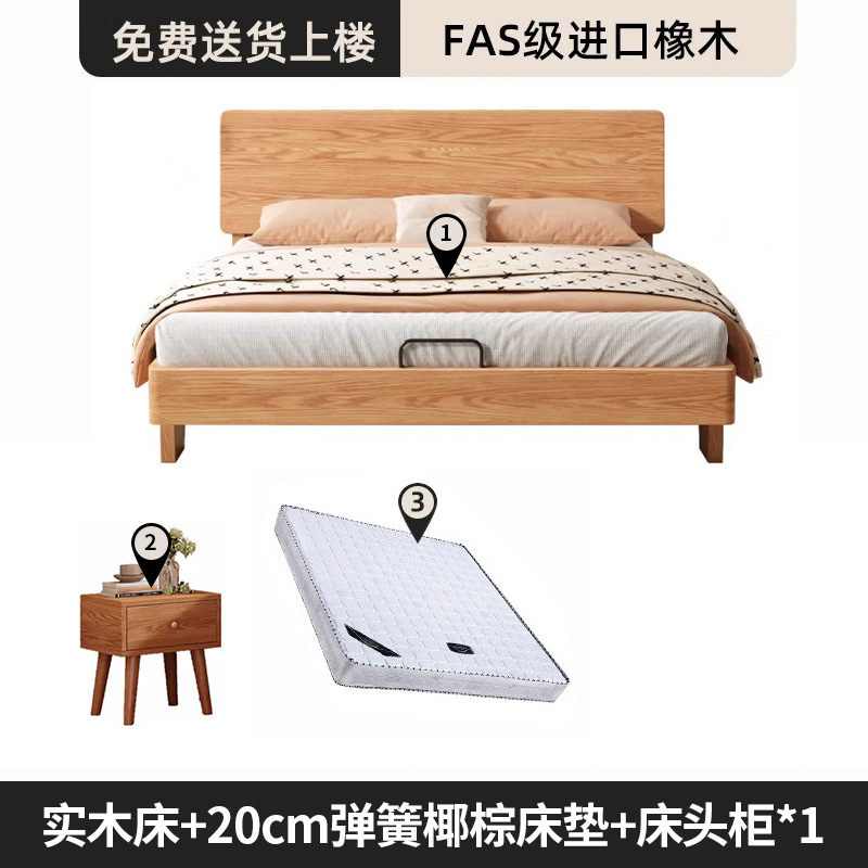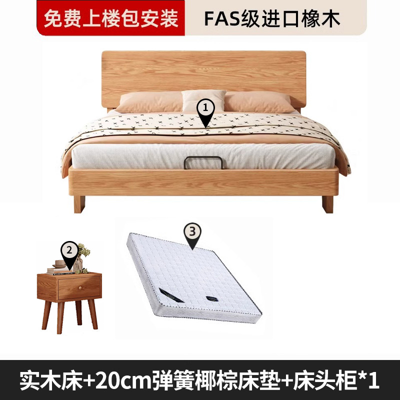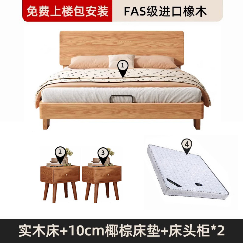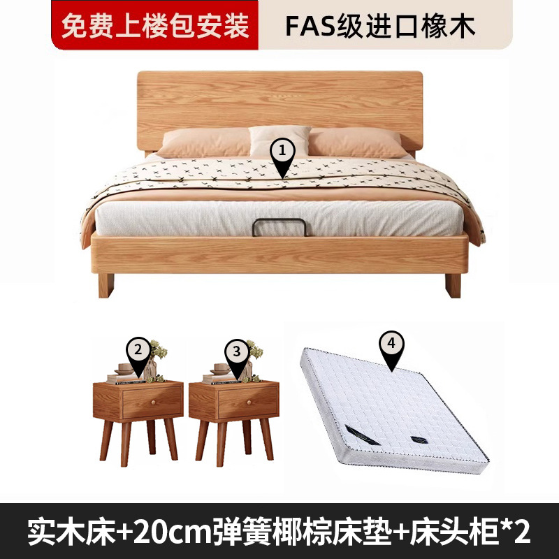 도매 오크 단단한 나무 침대 1 미터 8 침실 가구 큰 침대 1 미터 2 임대 방 싱글 침대 1 미터 5 어린이 침대스토어 가기