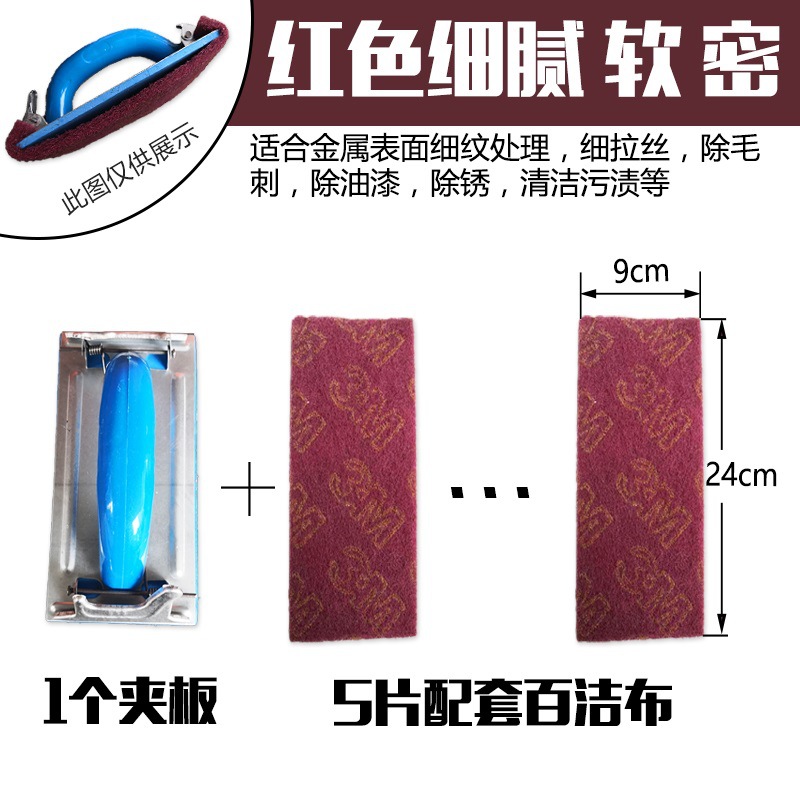 • 9*24CM 3M 빨간색 미세 수세미 5개, 무료 철 합판 1개