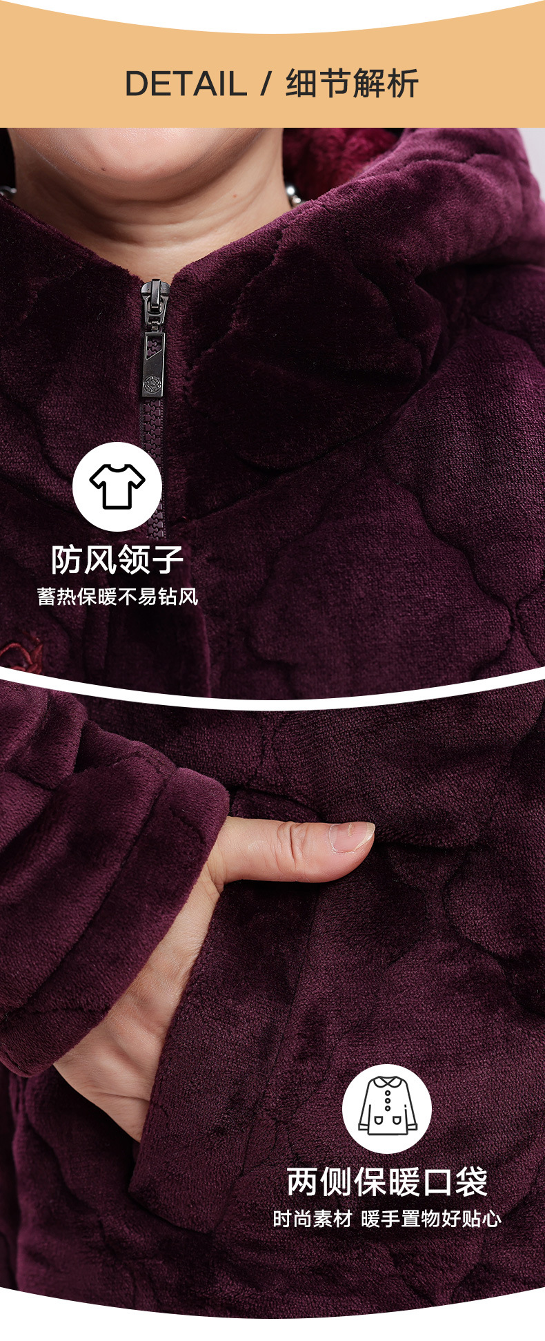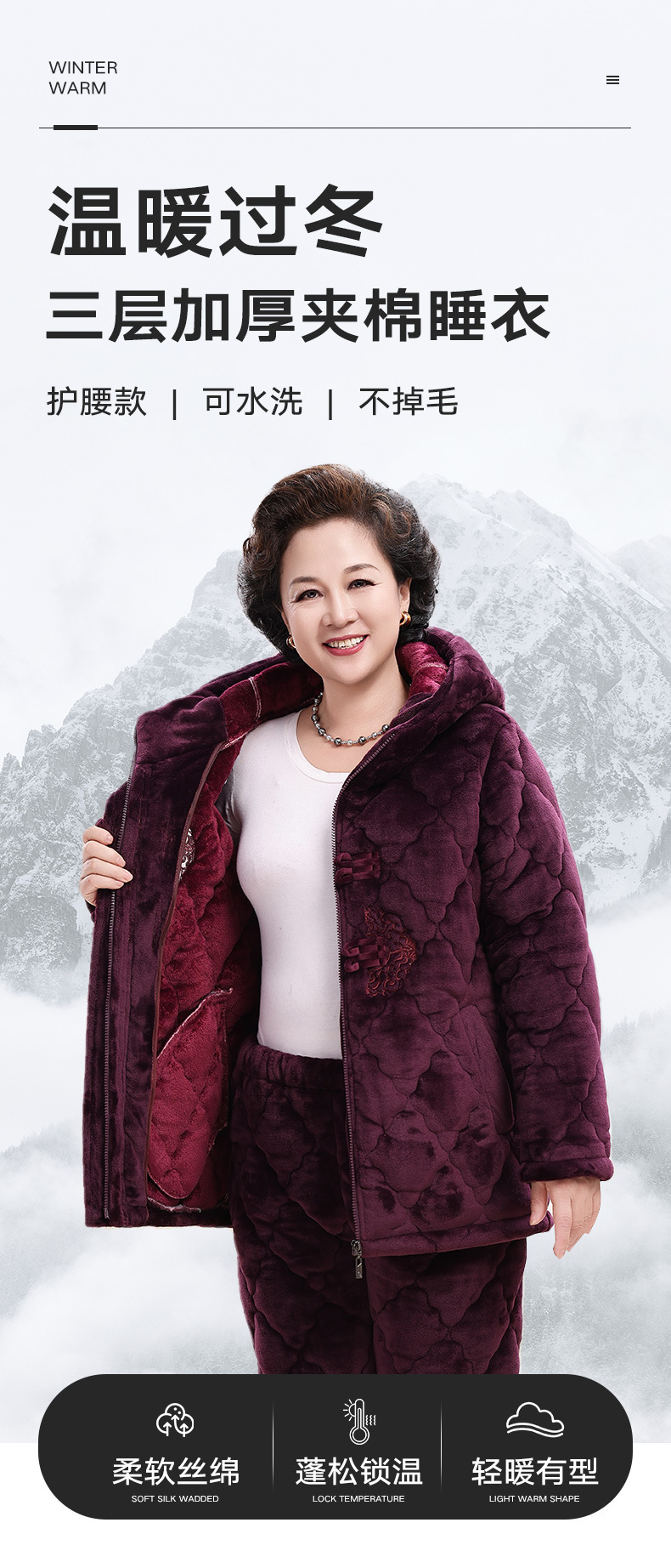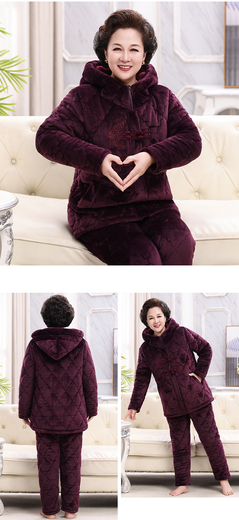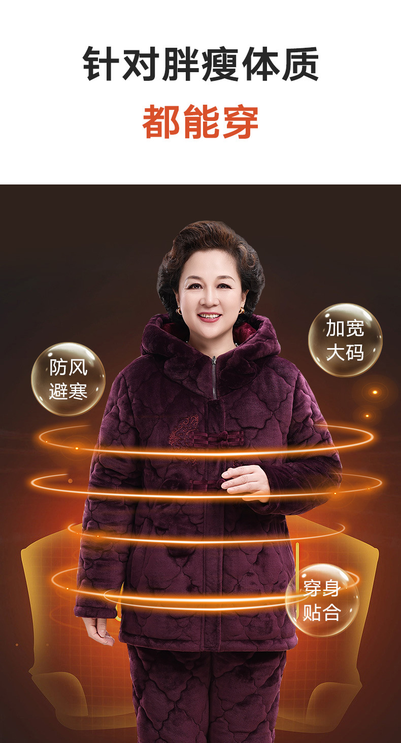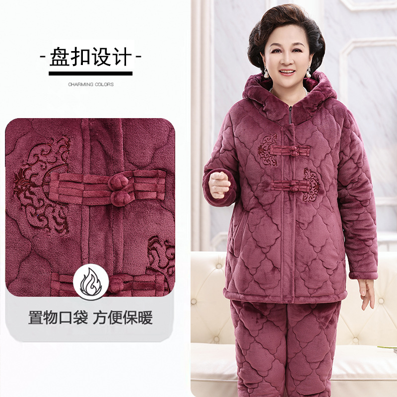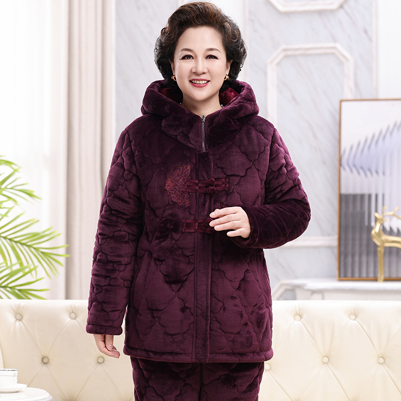 중년 및 노인 어머니 잠옷 여성의 겨울 산호 양털은 노인 세트 위해 3 층 면화 패딩 슈퍼 두께면 패딩 재킷을 기모 두껍게 만들었습니다.