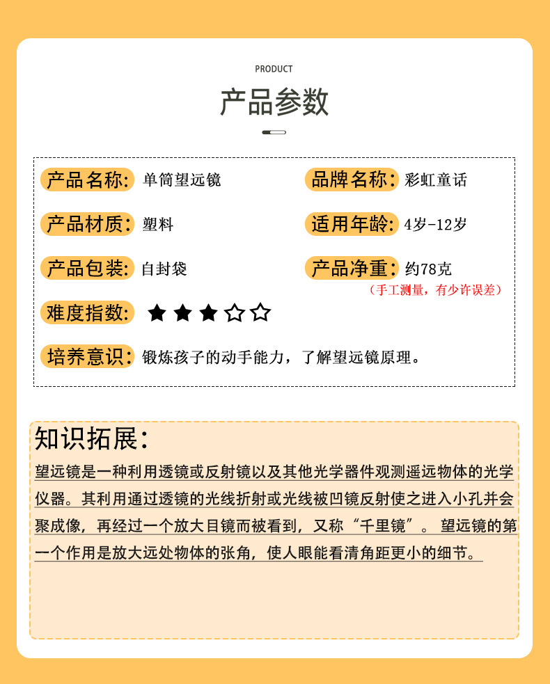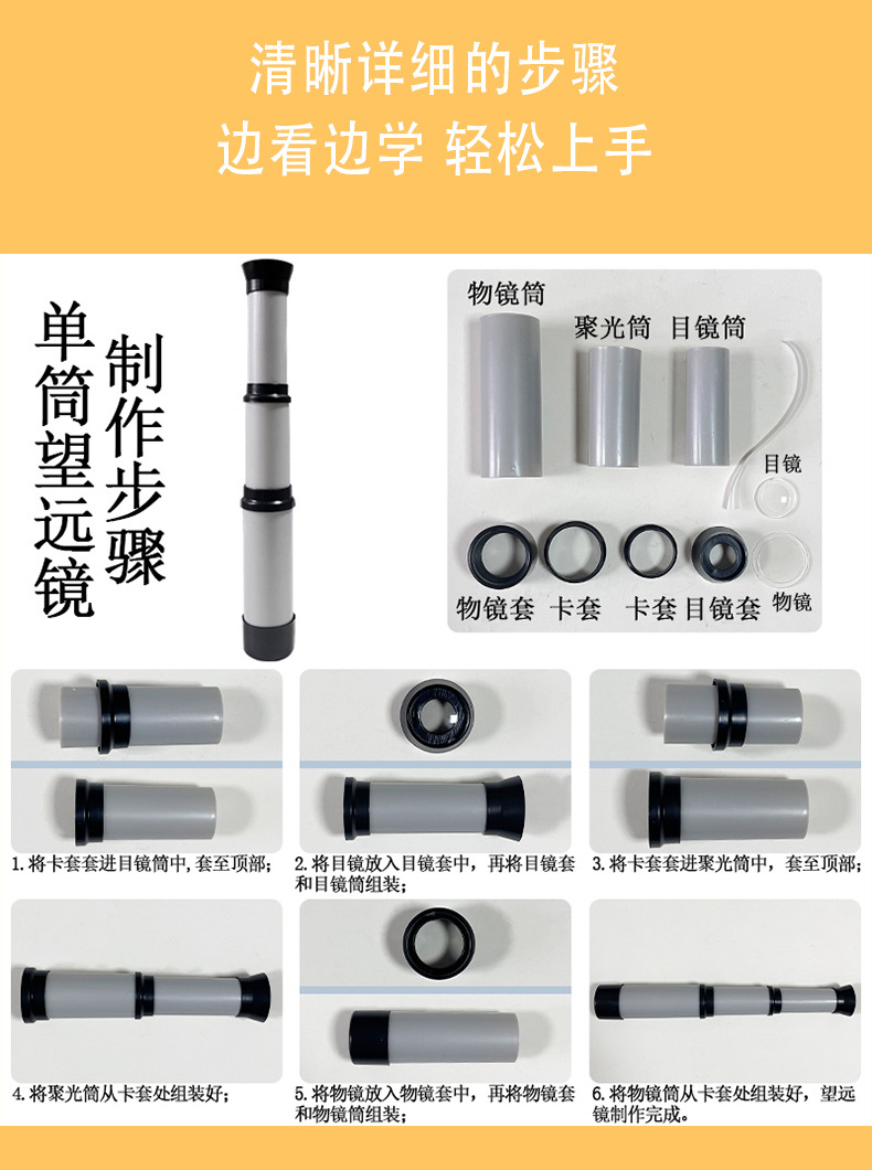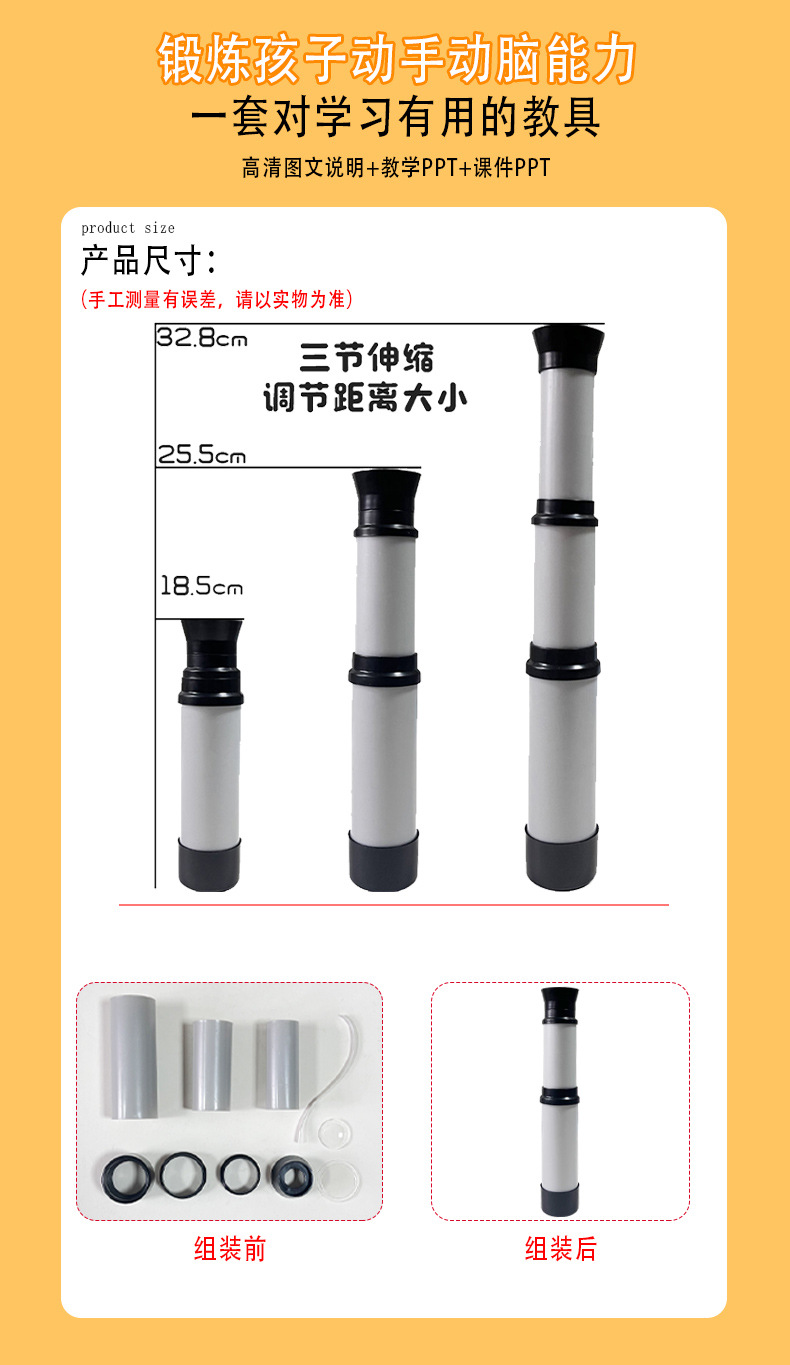 과학 기술 소형 단안 망원경 학생 과학 실험 갈릴레오 어린이 수동 광학 재료 발명