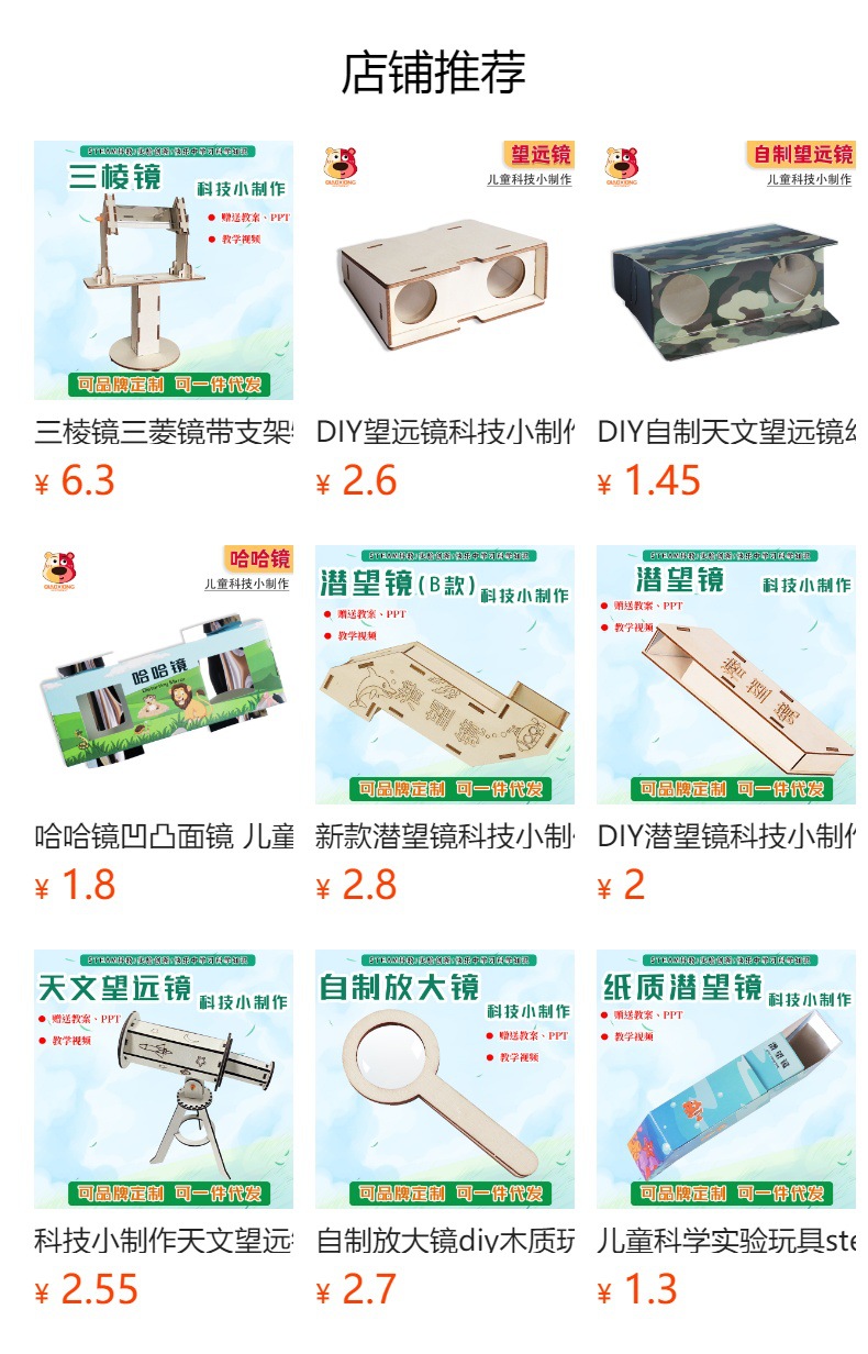 과학 기술 소형 단안 망원경 학생 과학 실험 갈릴레오 어린이 수동 광학 재료 발명스토어 가기