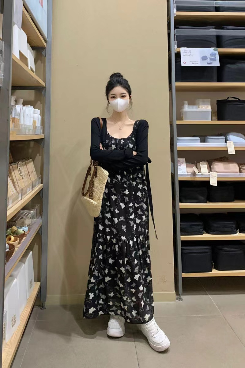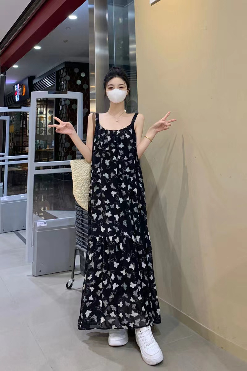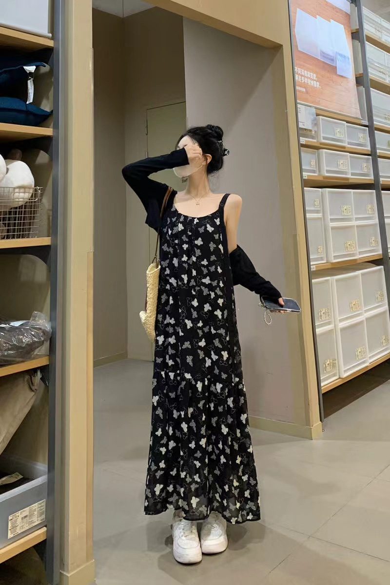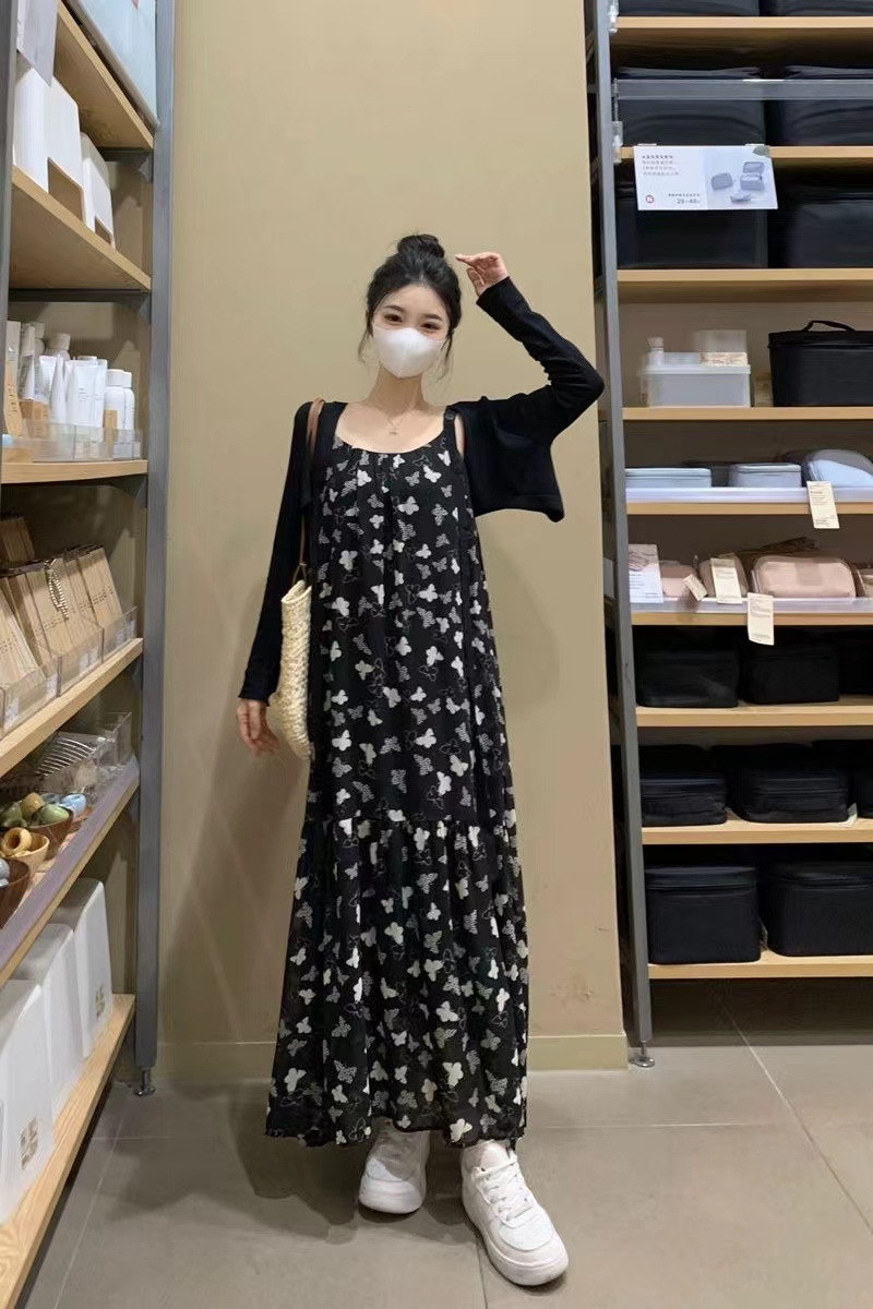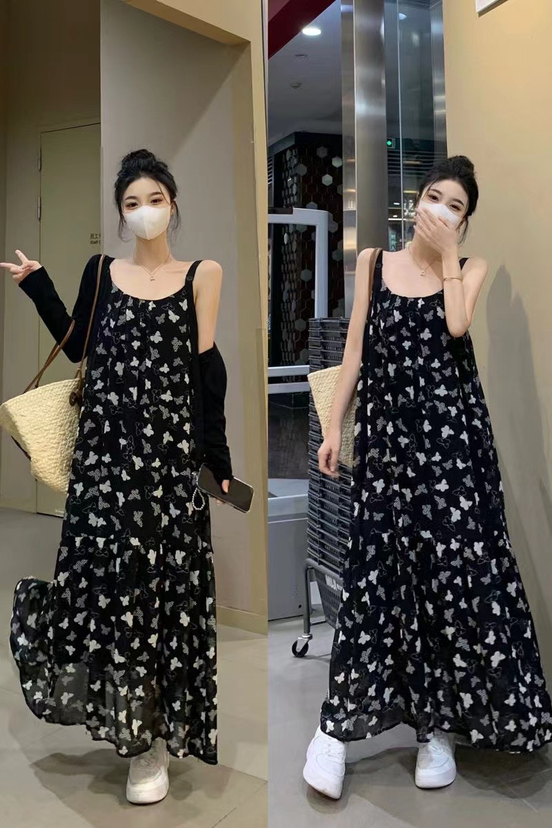 슬리밍 디자인 센스 맘보 나비 우아한 패션 슬링 원피스 카디건 세트 플로랄 2 피스 세트