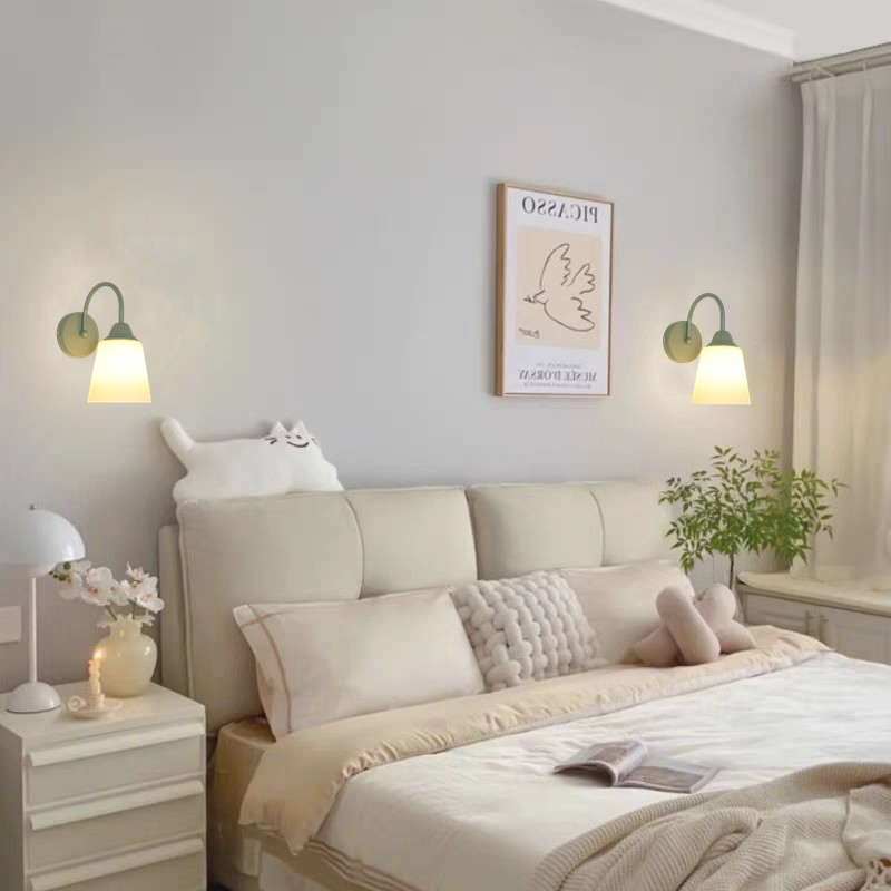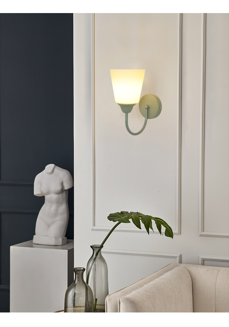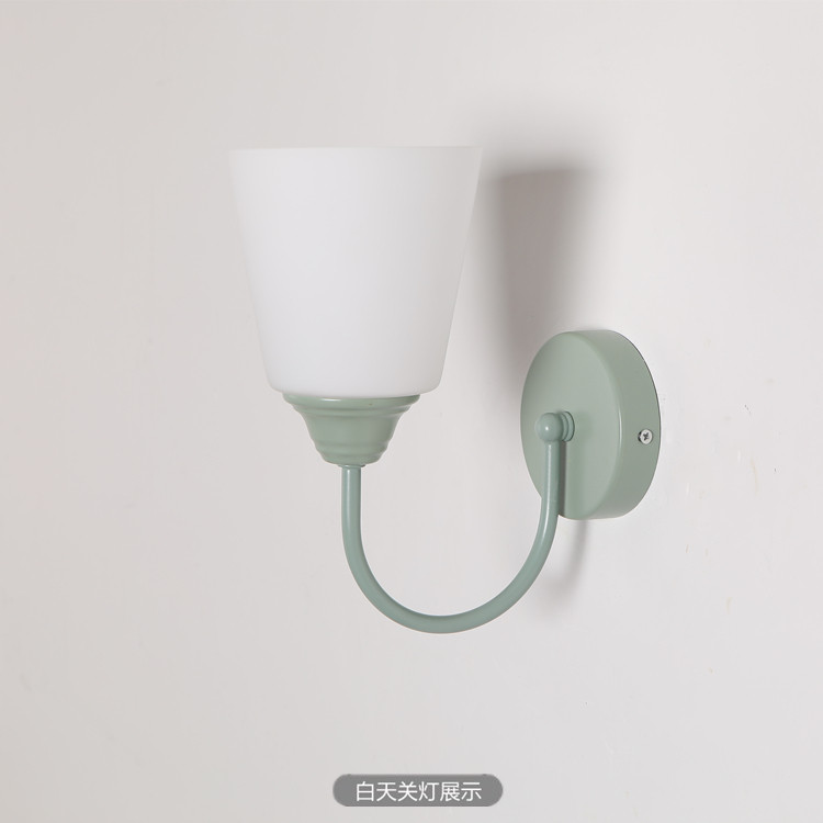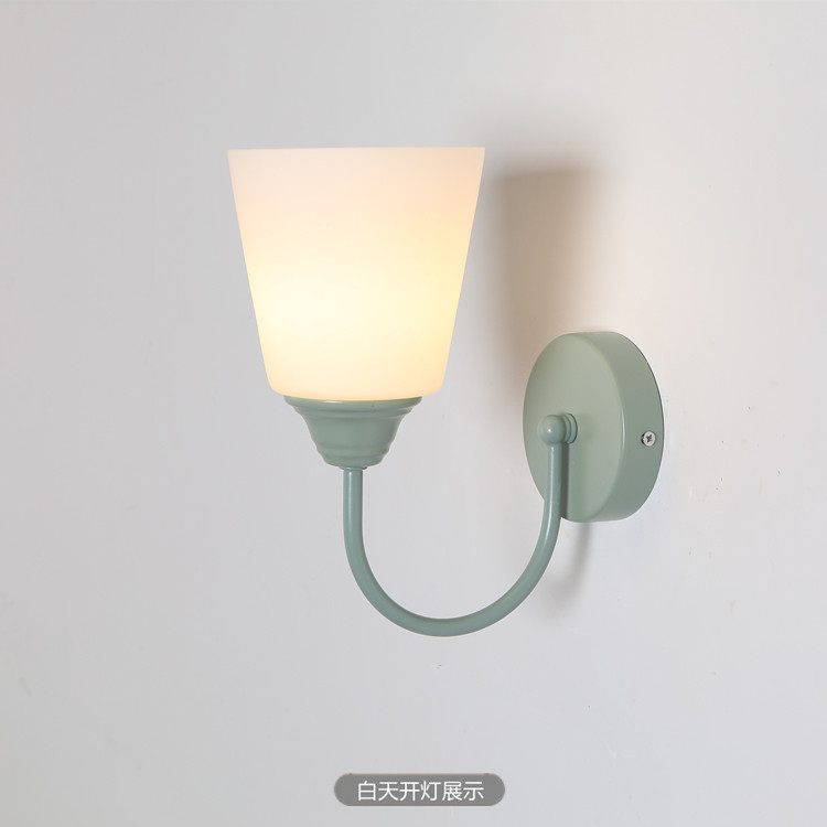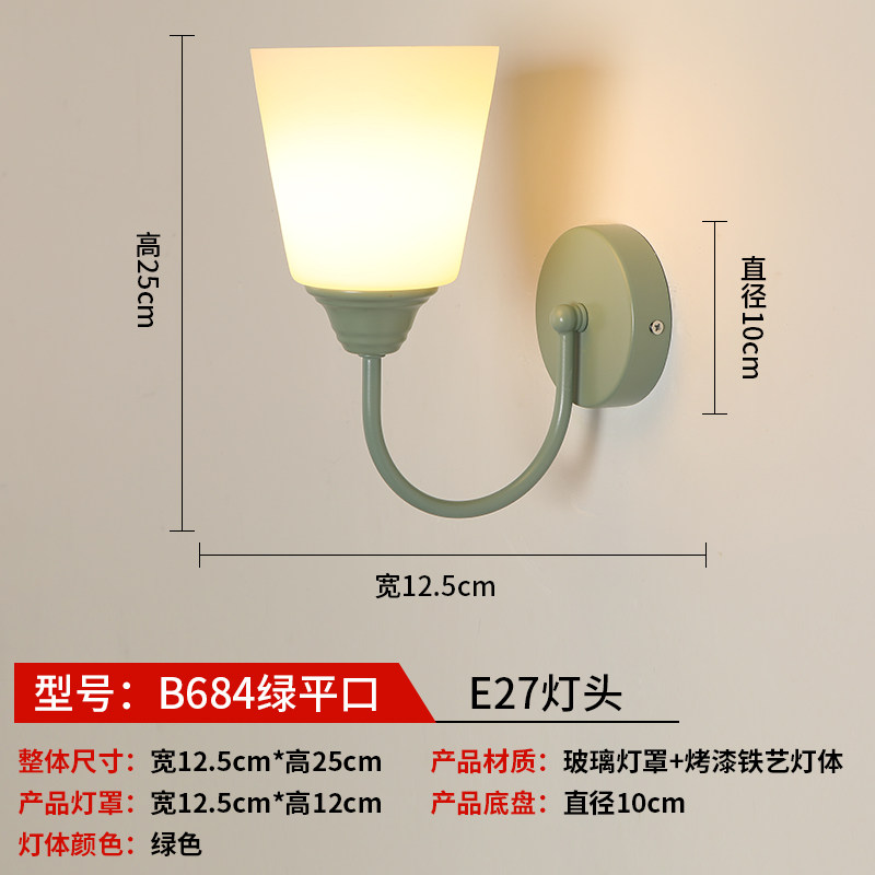 간단한 침실 침실 램프 거실 벽 램프 녹색 스마트 원격 제어 극성 디밍 크림 바람 계단 벽 램프