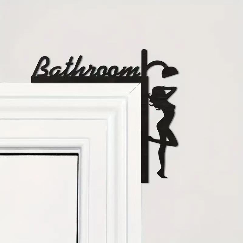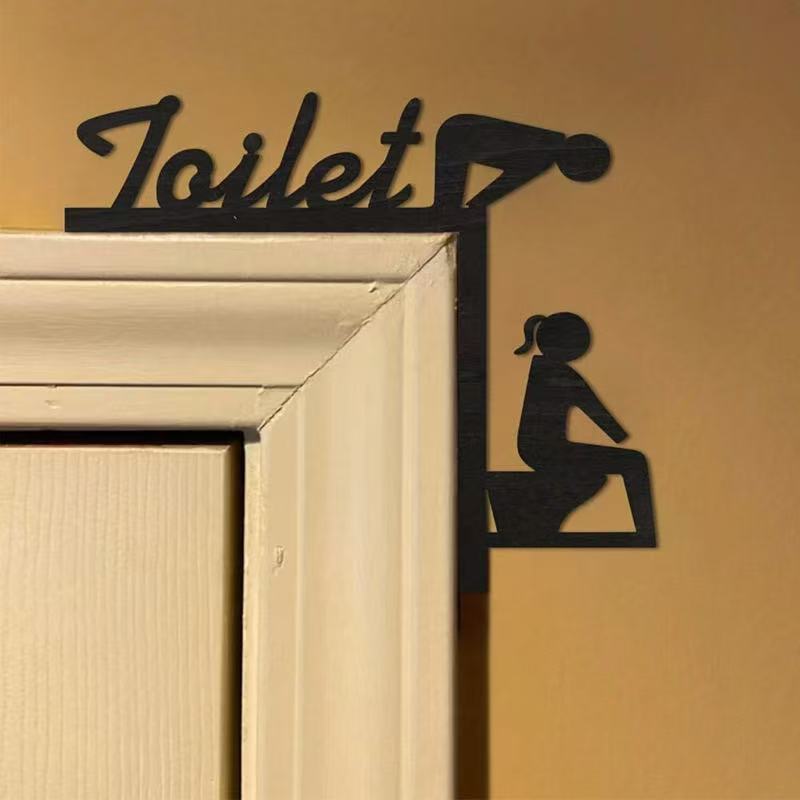 국경 간 재미 화장실 화장실 문 코너 매달려 수직 판 장식 나무 두 욕실 도어 프레임