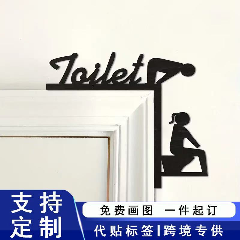 국경 간 재미 화장실 화장실 문 코너 매달려 수직 판 장식 나무 두 욕실 도어 프레임스토어 가기