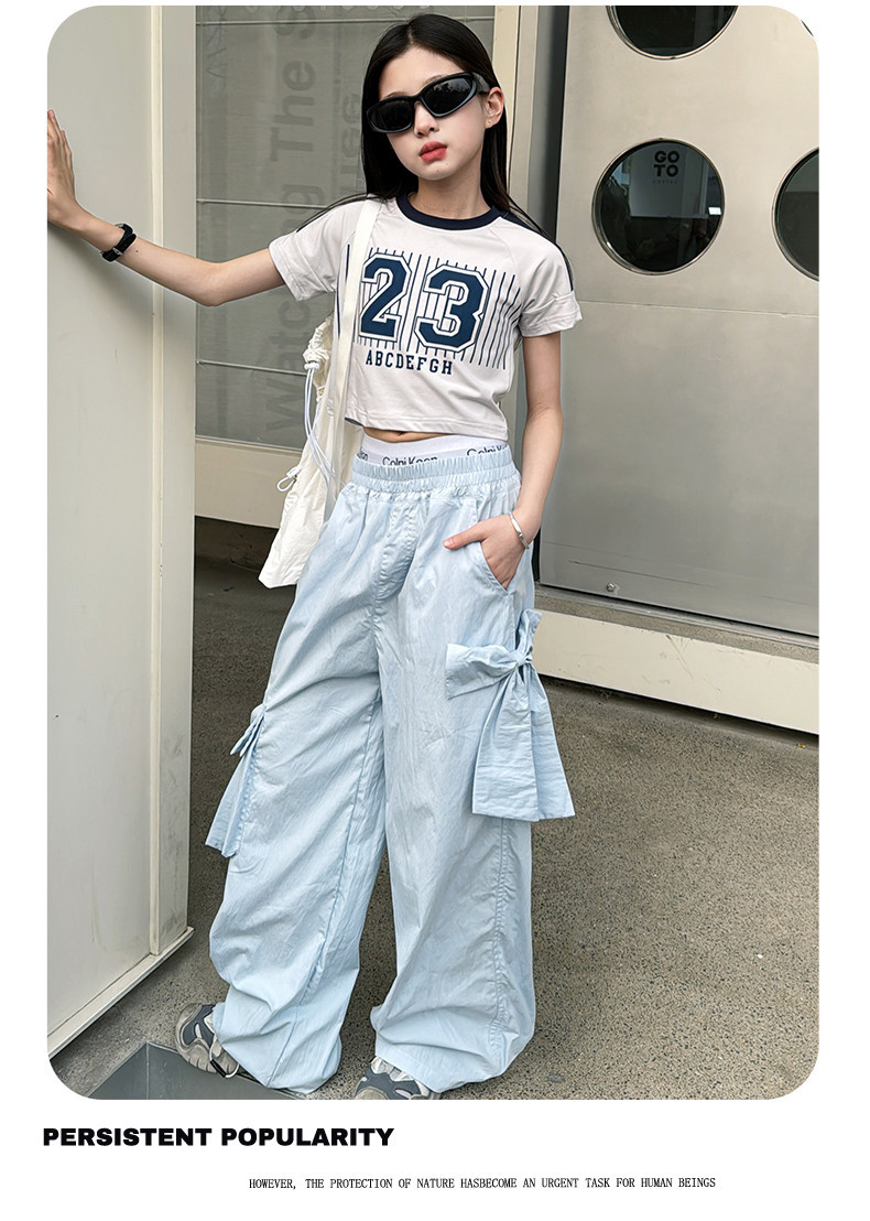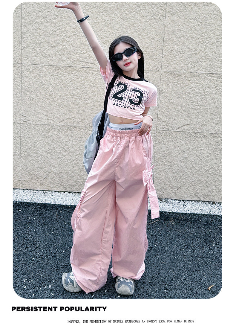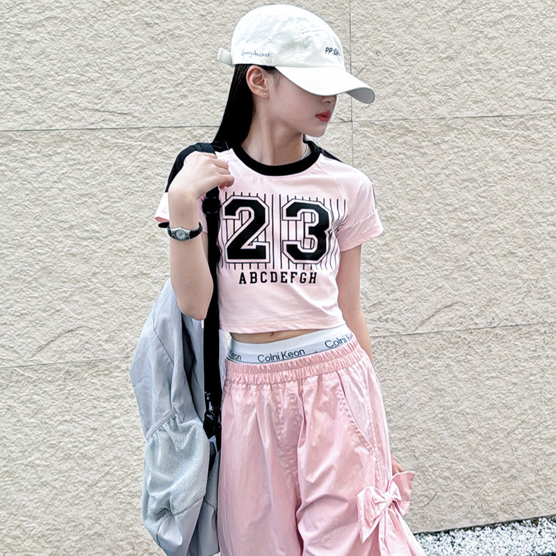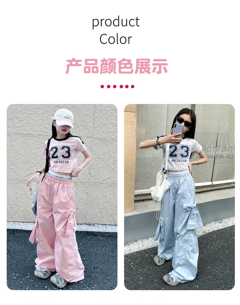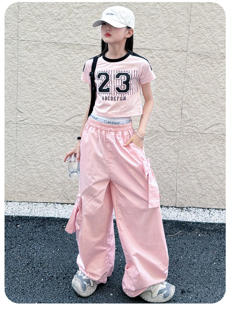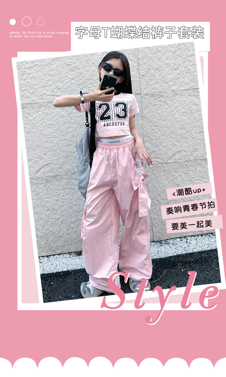 오렌지 타이거 걸의 서양식 도파민 편지 반팔화물 바지 투피스 세트 2025 여름 중간 큰 아이들의 새로운 패션스토어 가기