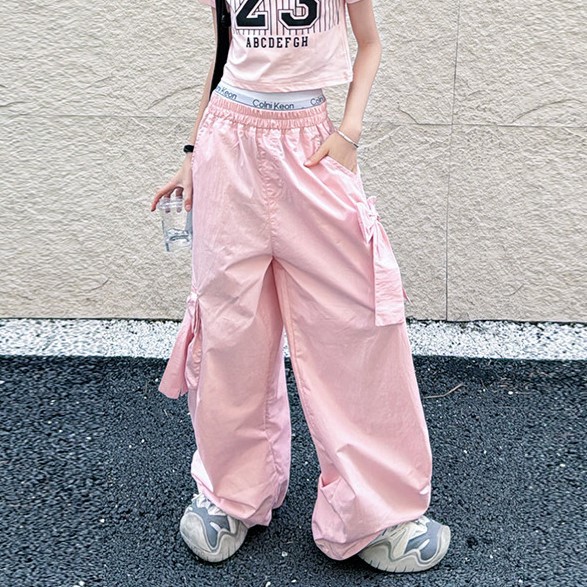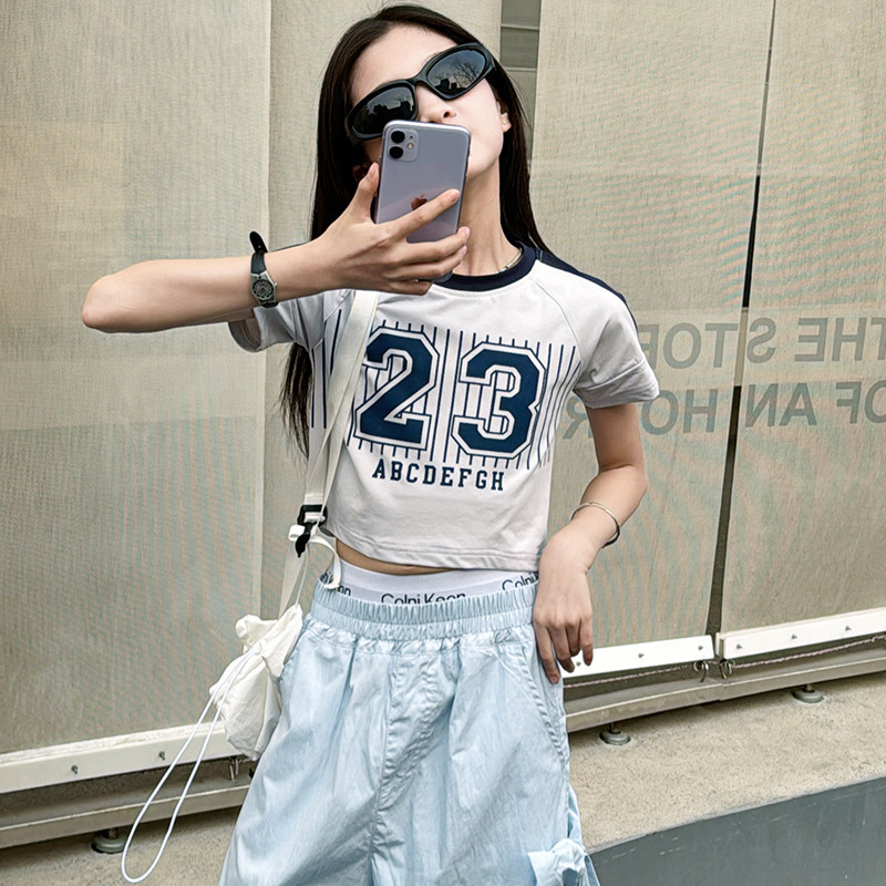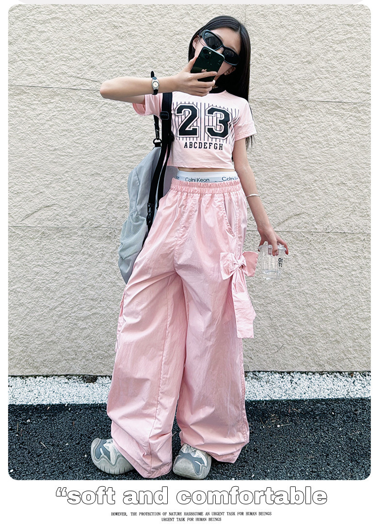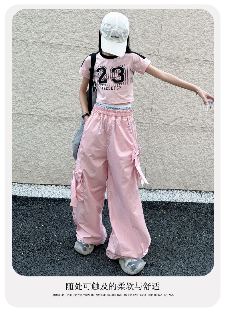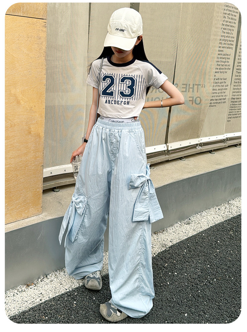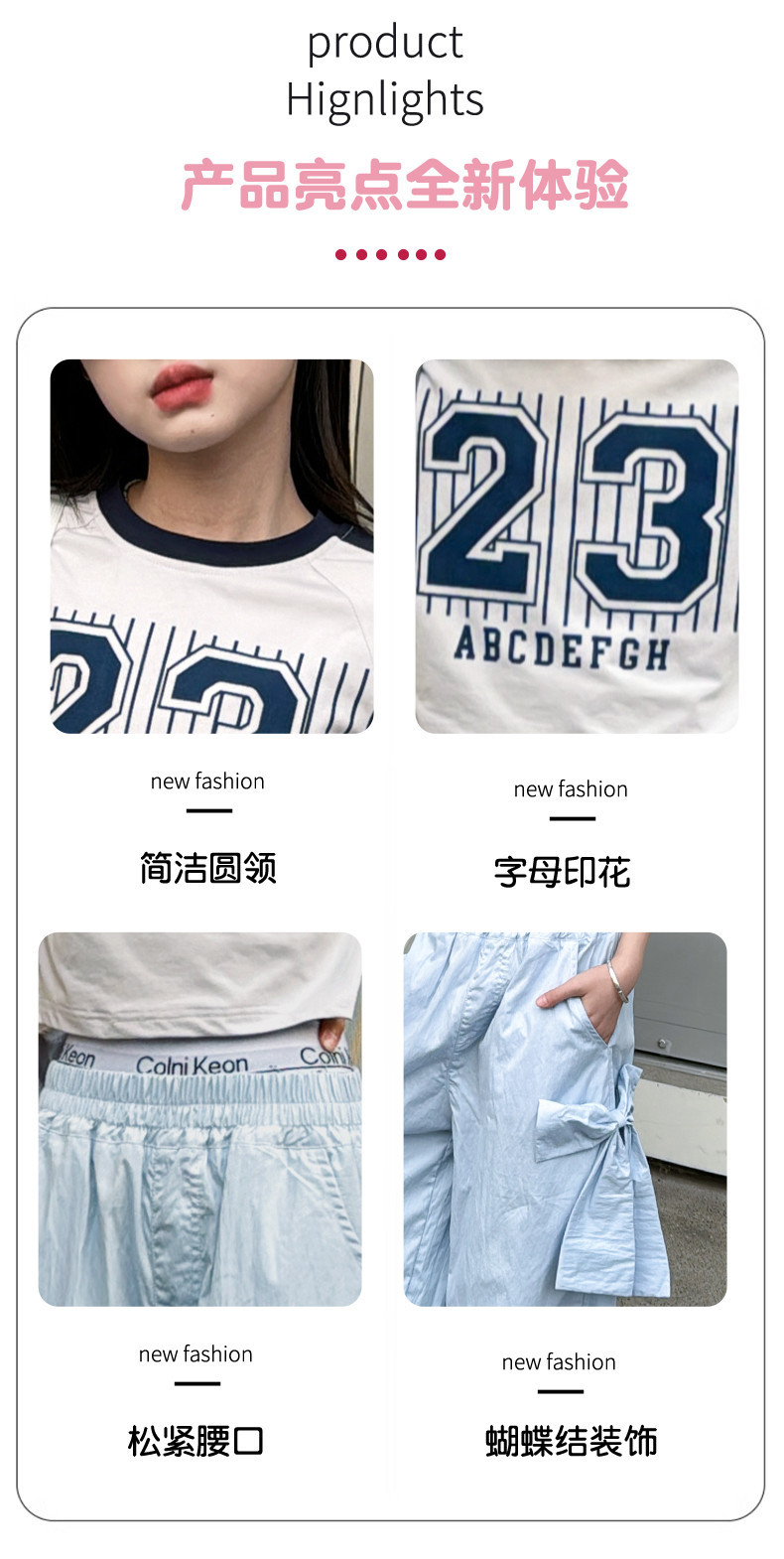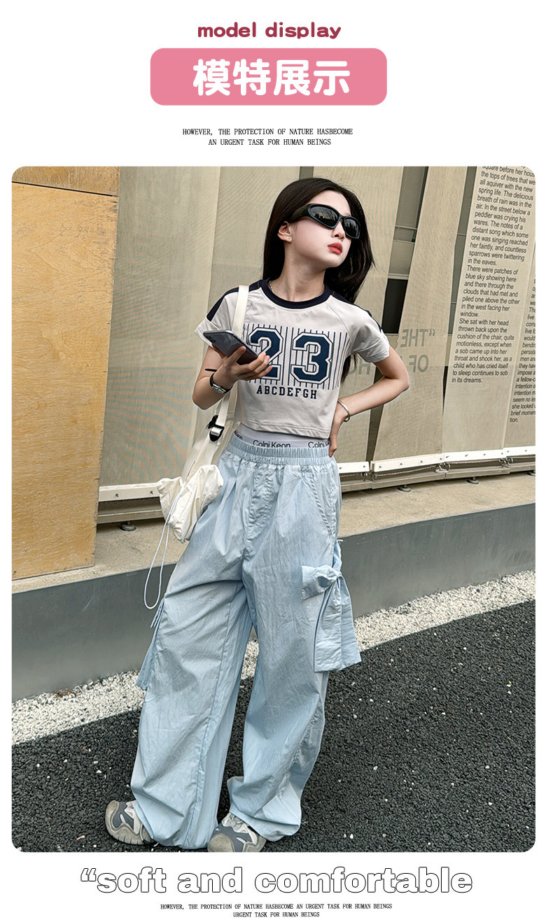 오렌지 타이거 걸의 서양식 도파민 편지 반팔화물 바지 투피스 세트 2025 여름 중간 큰 아이들의 새로운 패션스토어 가기