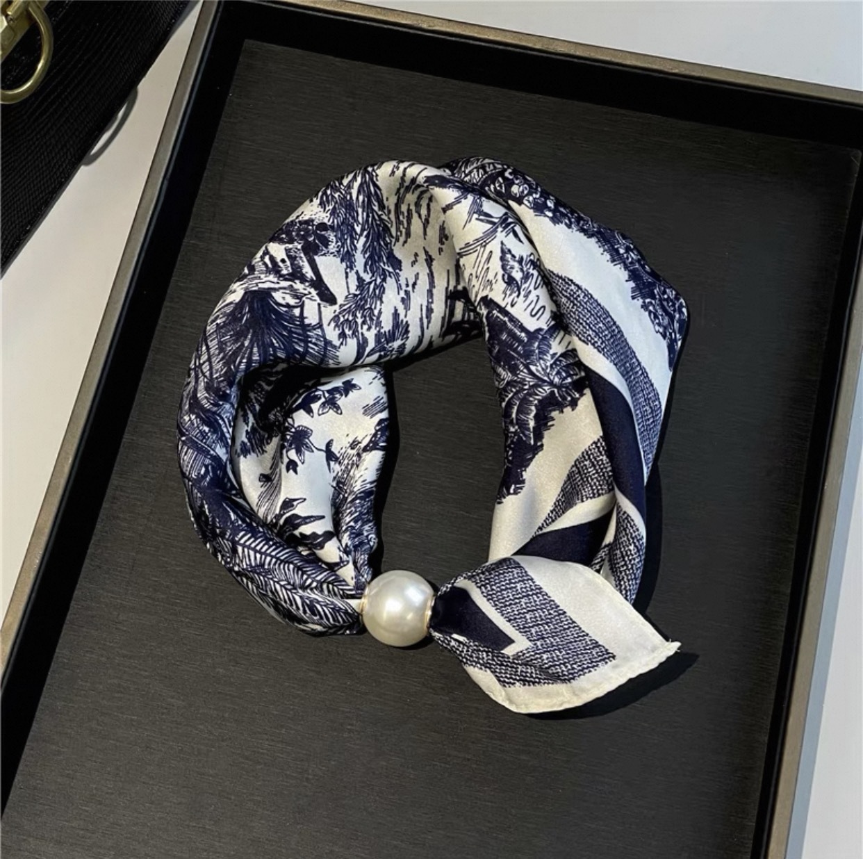 2025新款春夏季薄款珍珠项链磁吸扣懒人丝巾女吊坠围脖锁骨链丝巾
