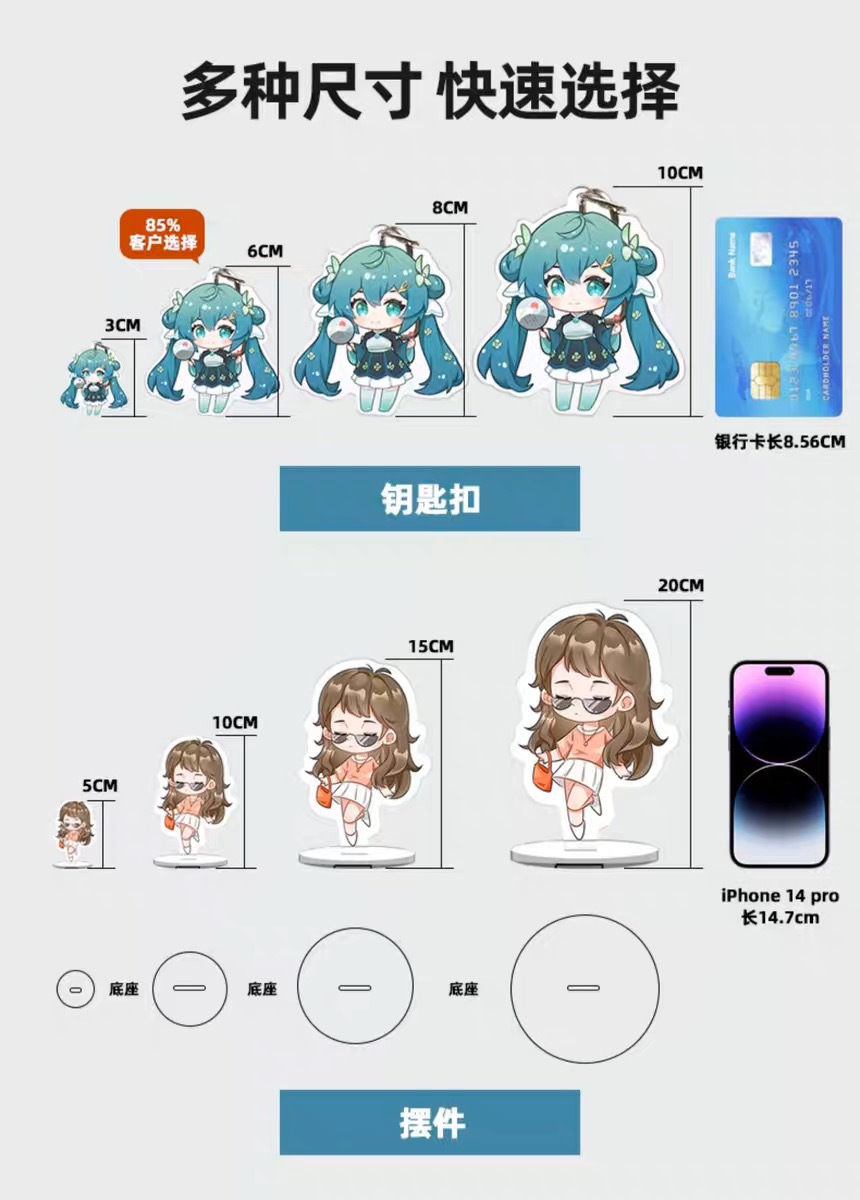 아크릴 더블 레이어 키 체인 만화 커플 사진 DIY 키 링 펜던트 만화 개인화 된 브랜드스토어 가기