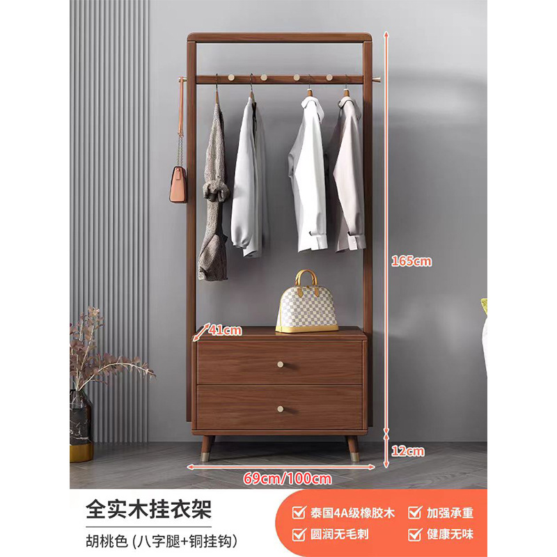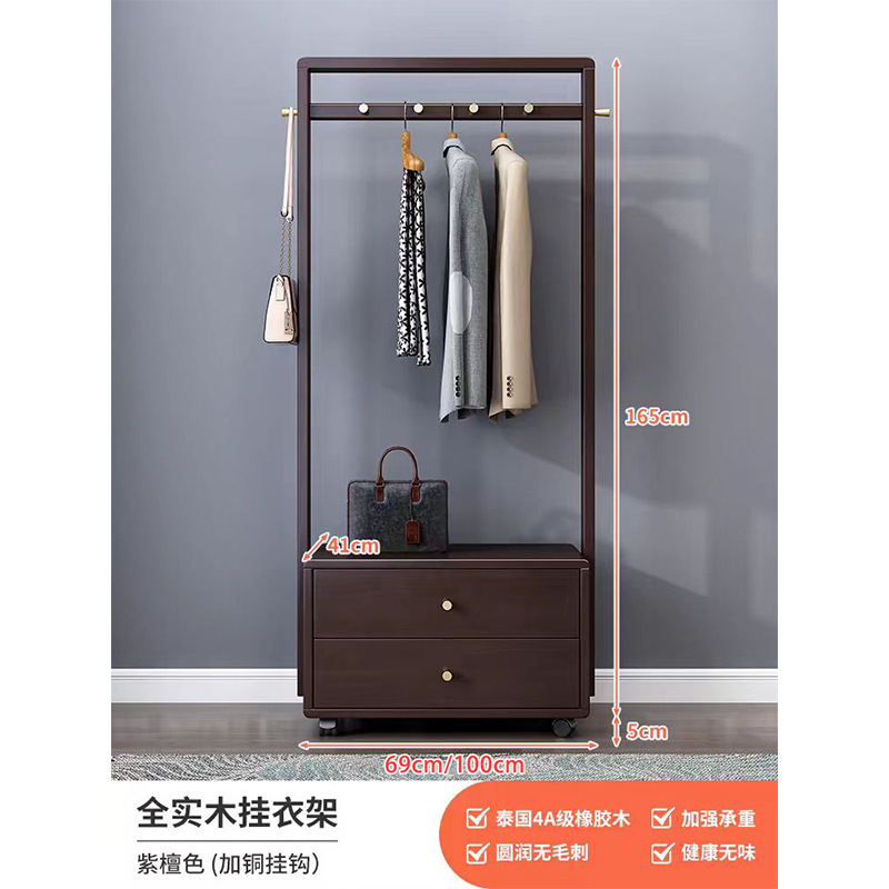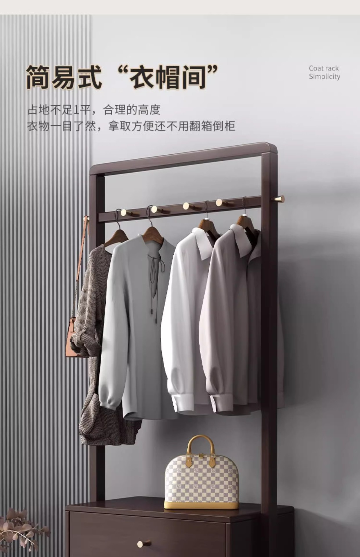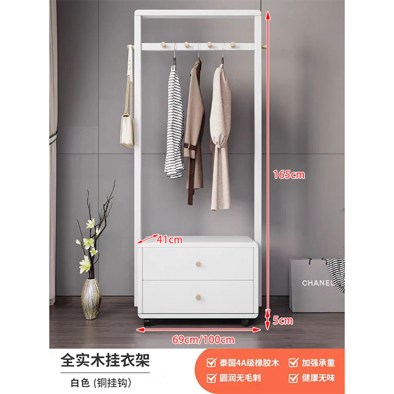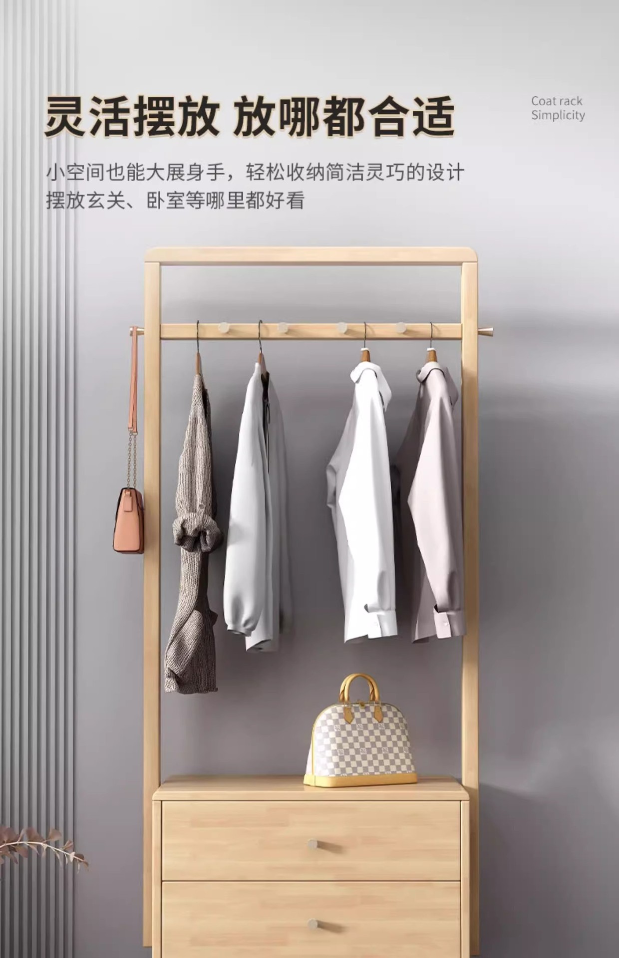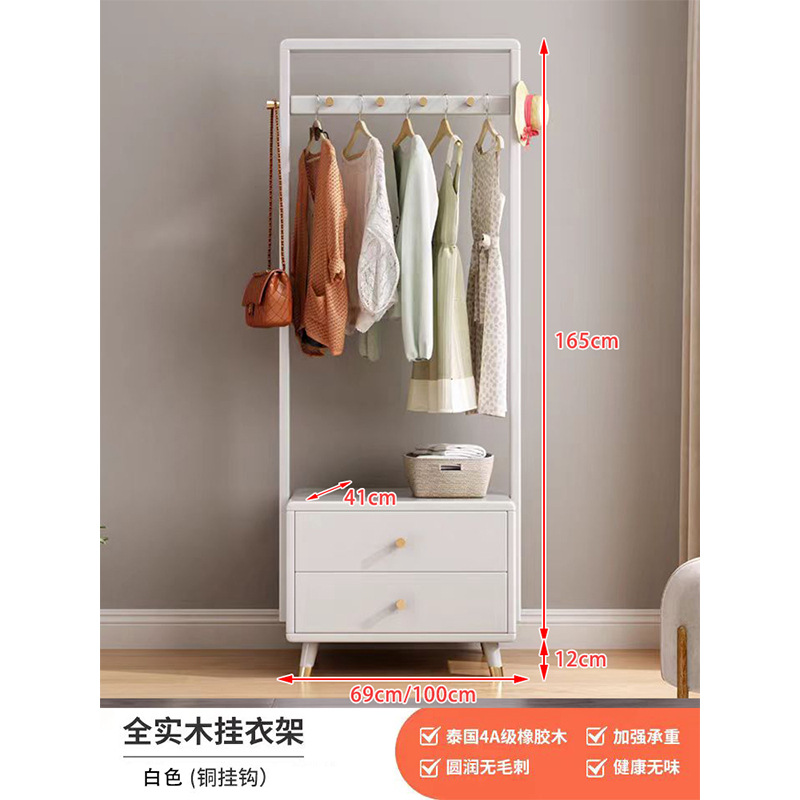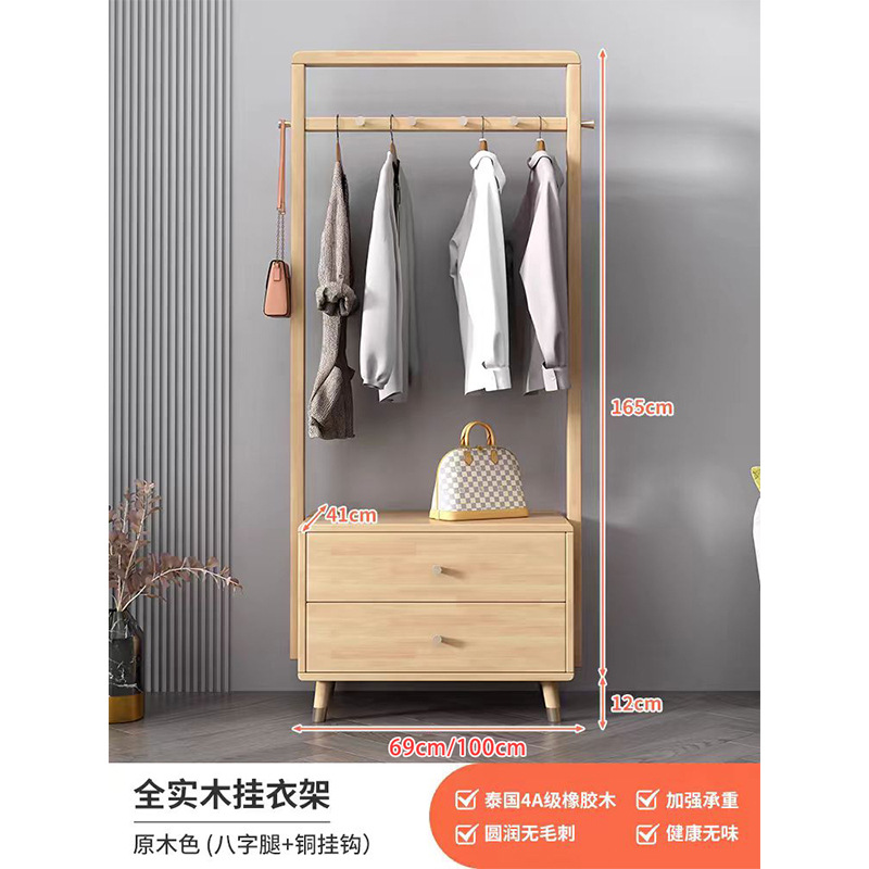 단단한 나무 옷걸이, 바닥에서 천장까지 옷걸이, 가정용 침실 간단한 수납 선반, 전체 단단한 나무 이동식 서랍장 옷걸이