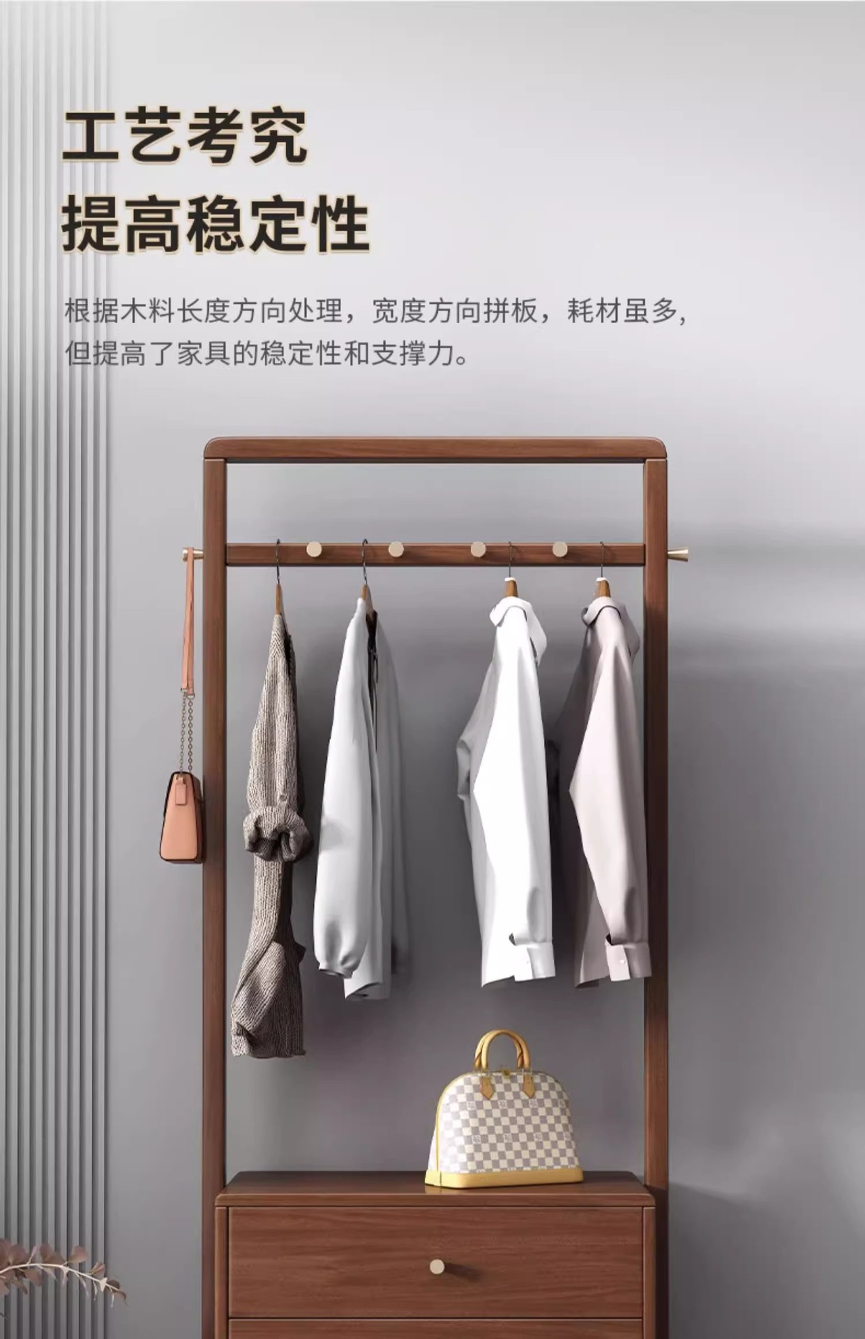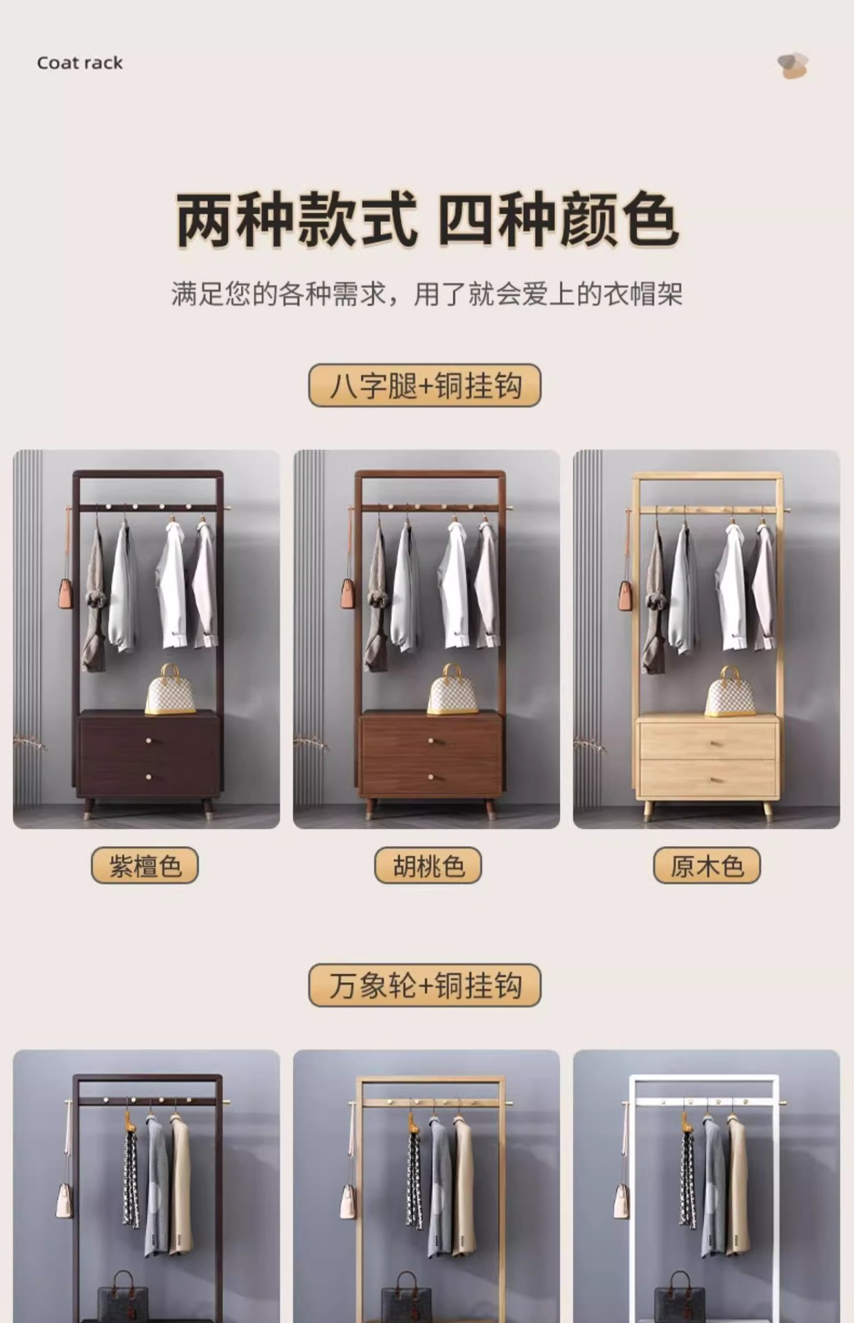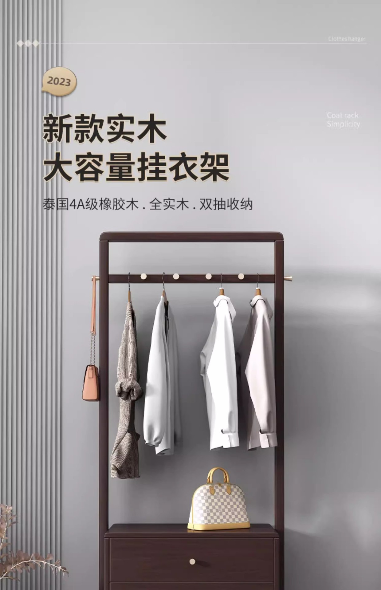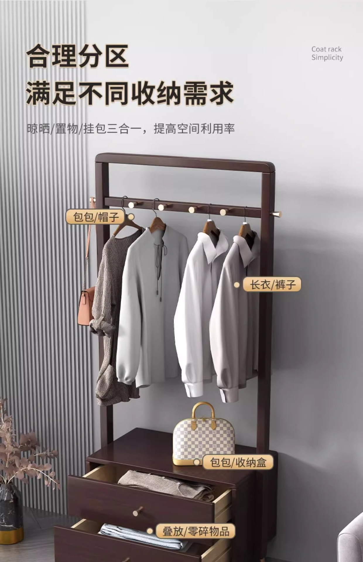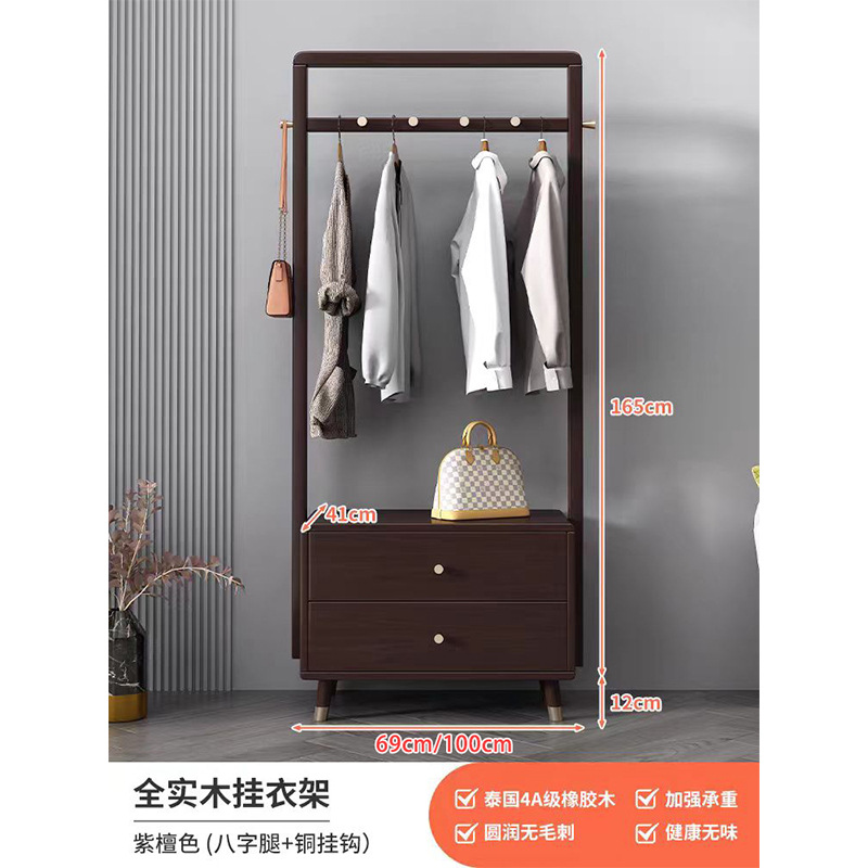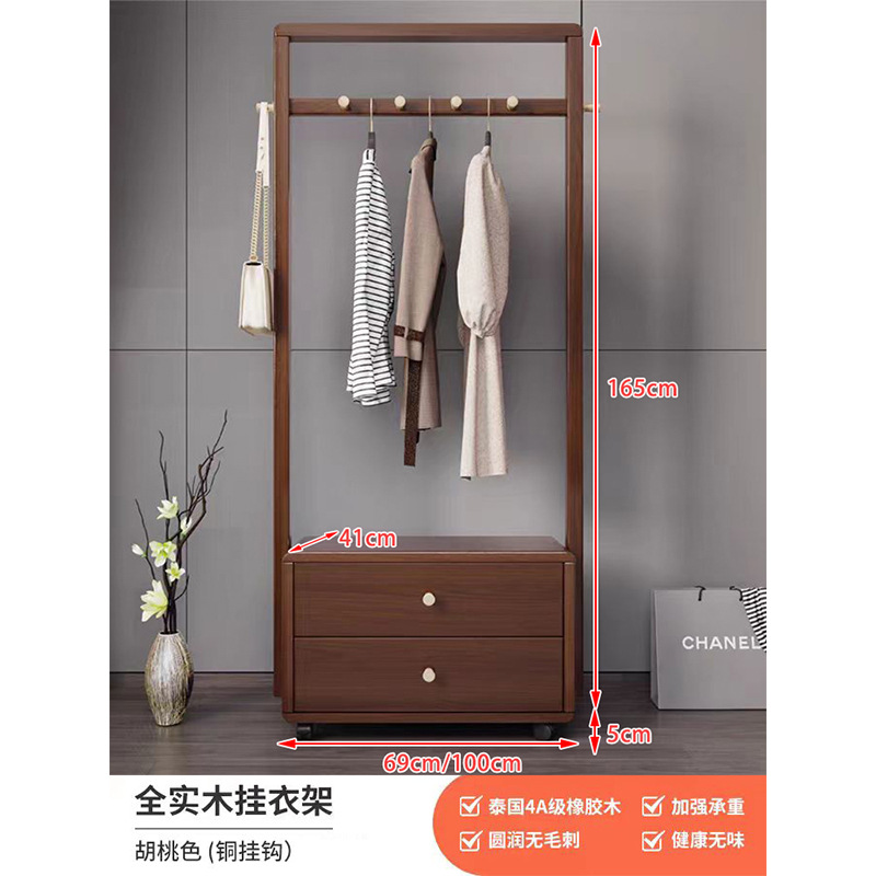 단단한 나무 옷걸이, 바닥에서 천장까지 옷걸이, 가정용 침실 간단한 수납 선반, 전체 단단한 나무 이동식 서랍장 옷걸이