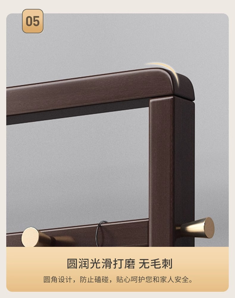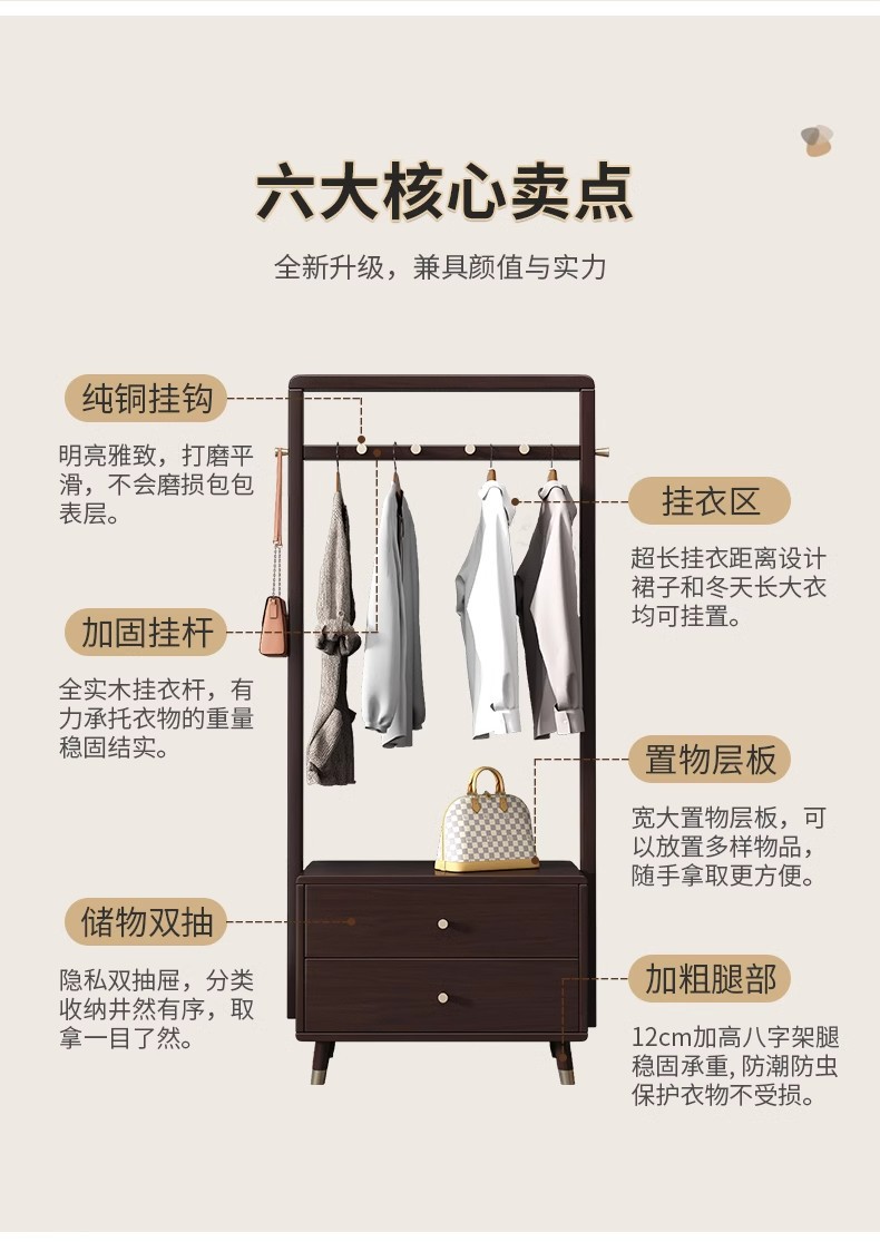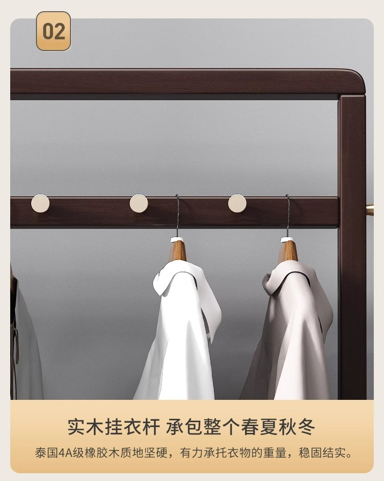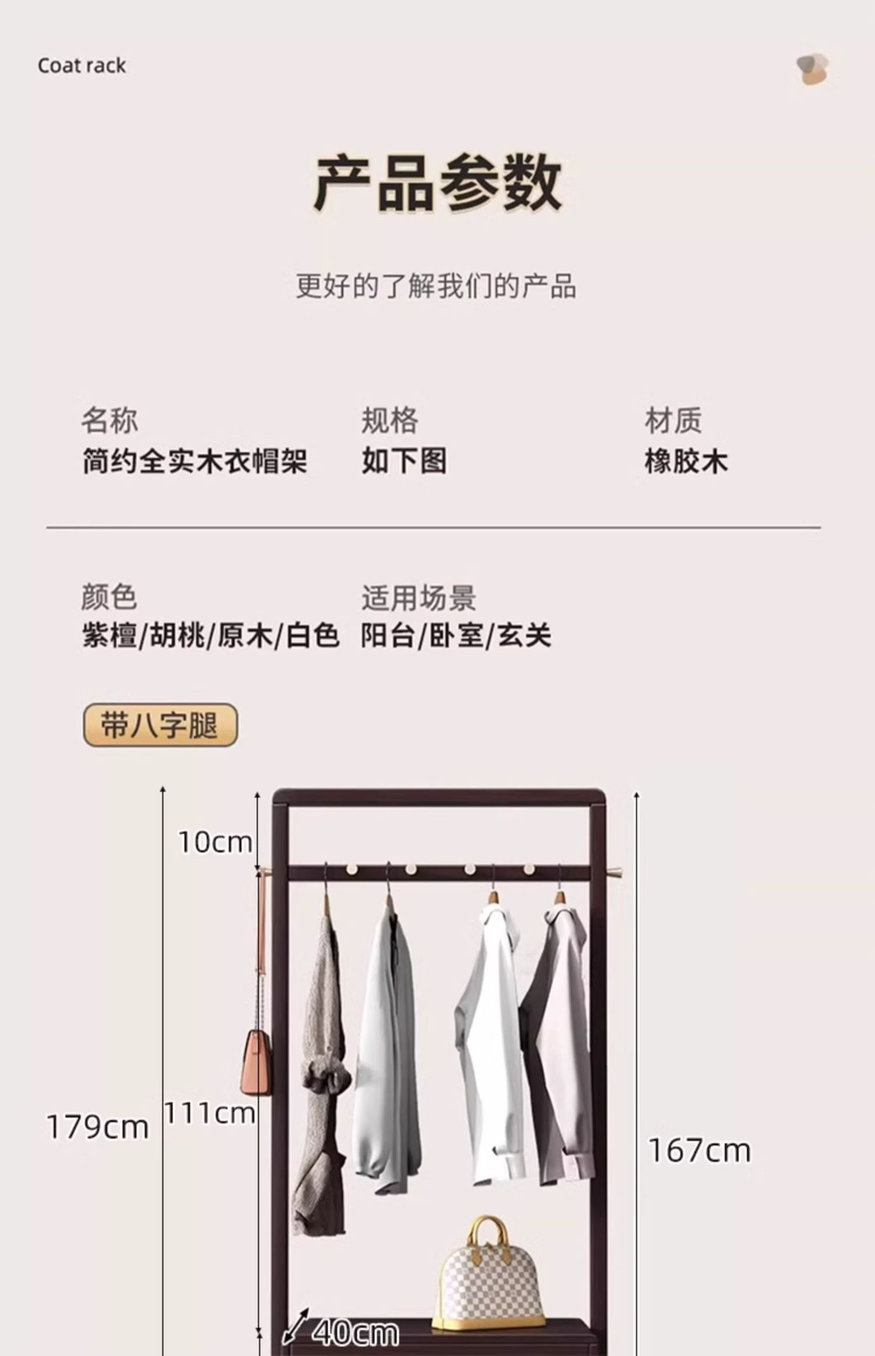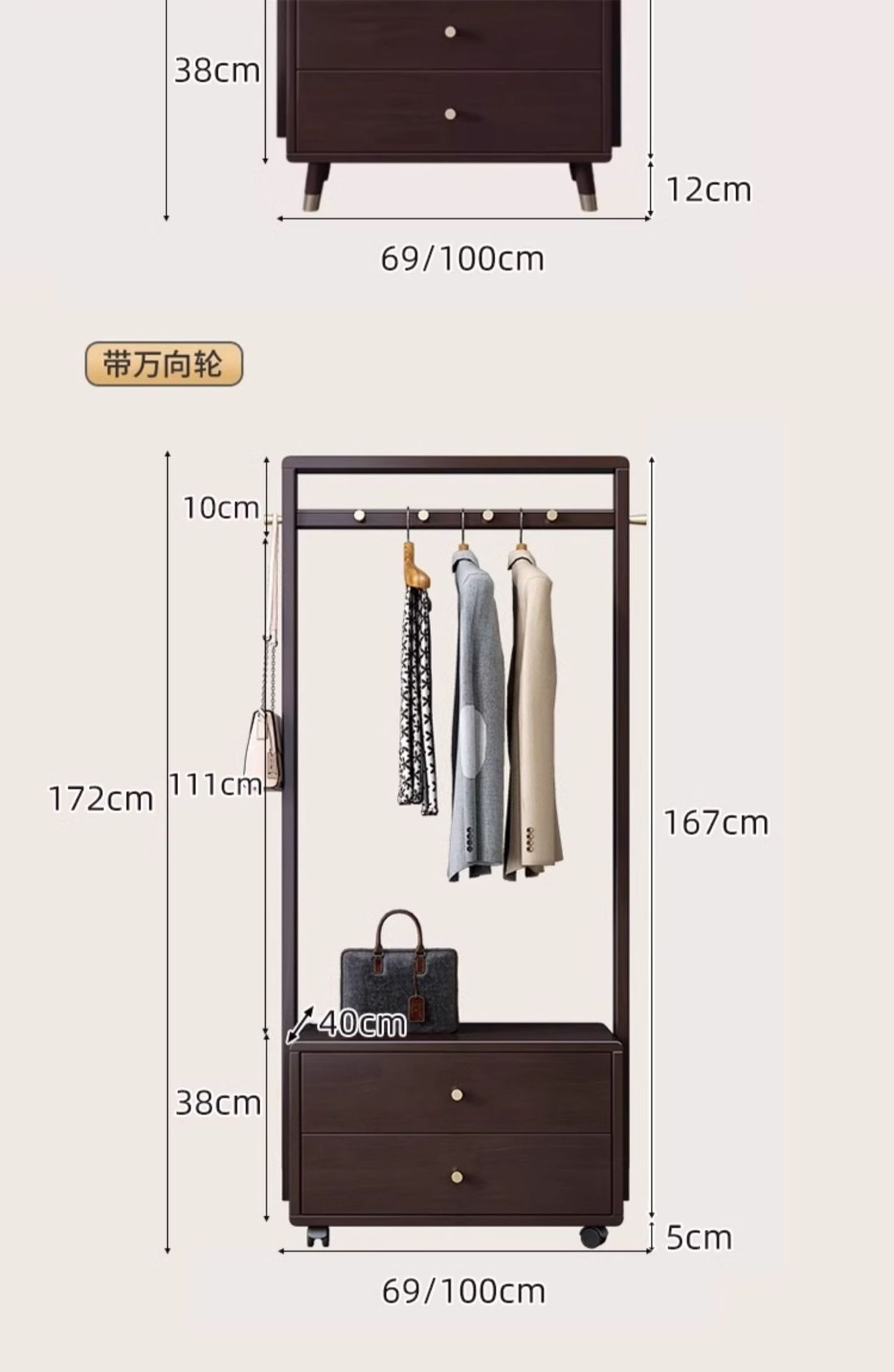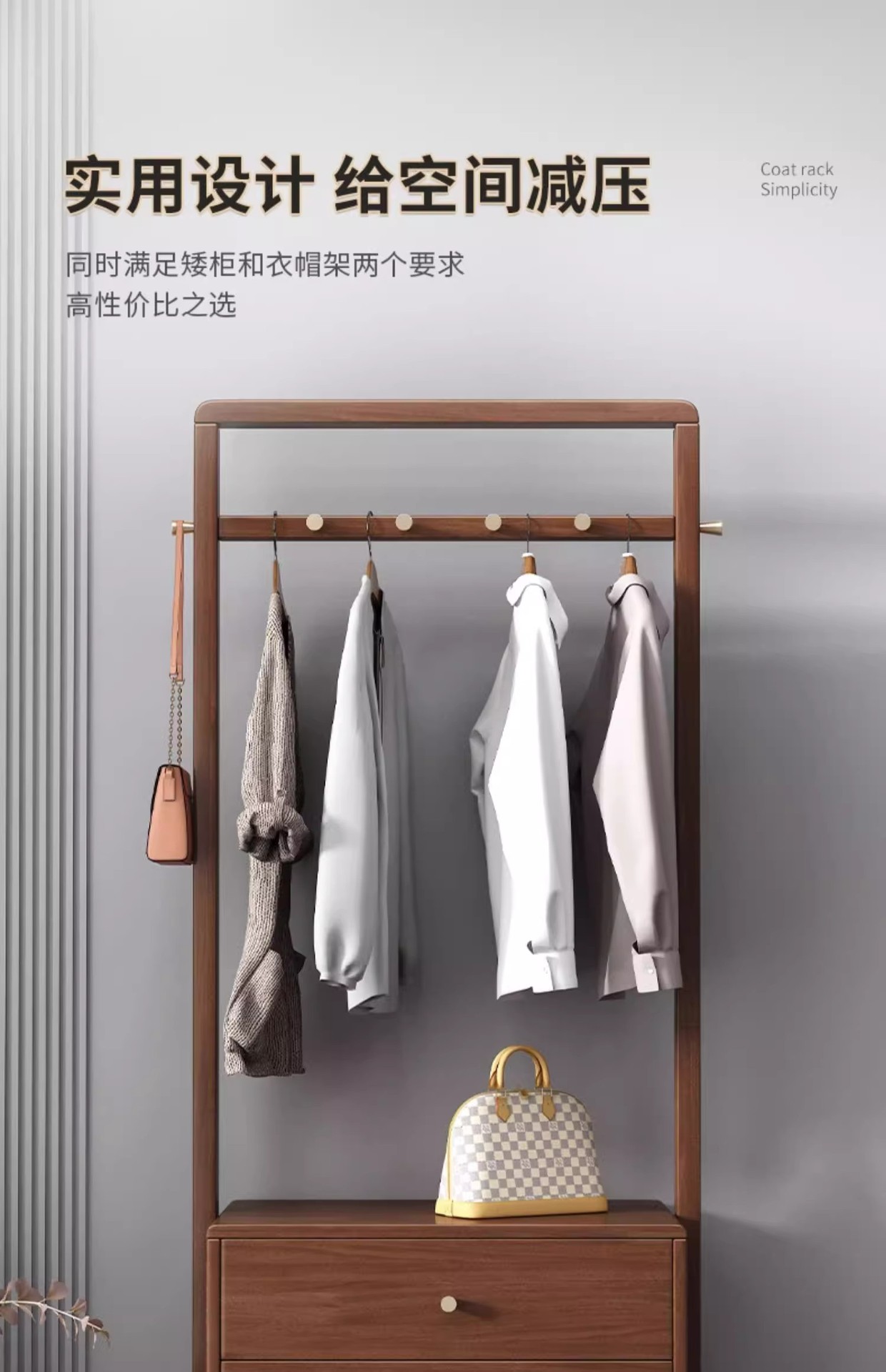 단단한 나무 옷걸이, 바닥에서 천장까지 옷걸이, 가정용 침실 간단한 수납 선반, 전체 단단한 나무 이동식 서랍장 옷걸이