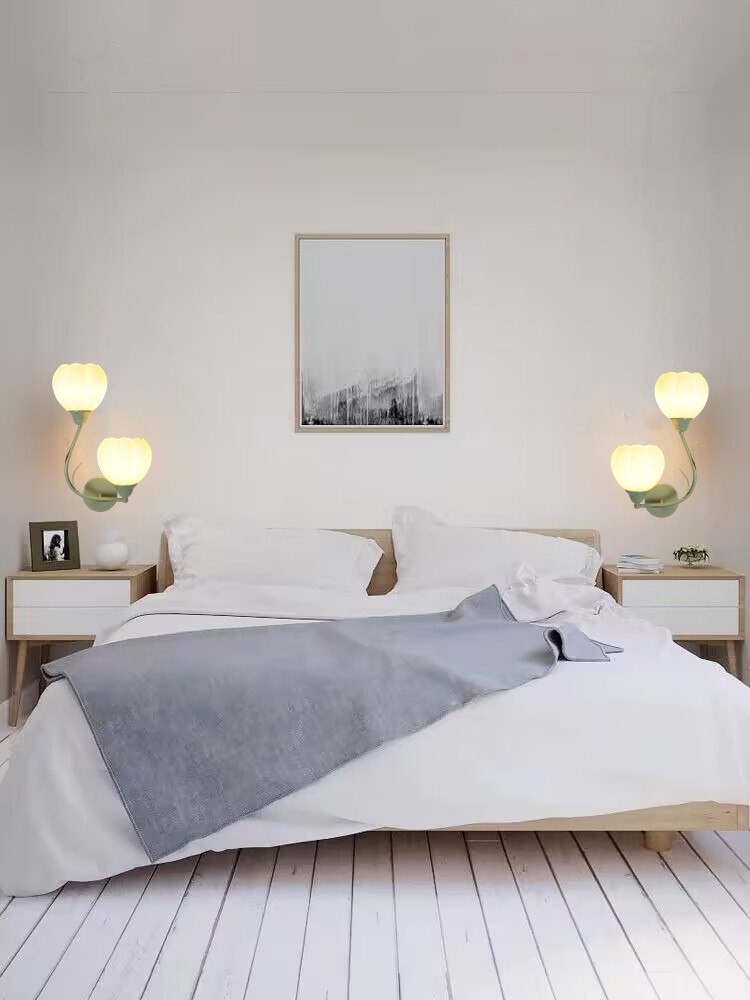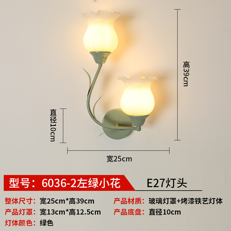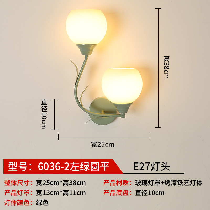 침실 침실 램프 벽 램프 소파 배경 벽 램프 녹색 램프 더블 헤드 북유럽 크림 스타일 복도 통로 램프
