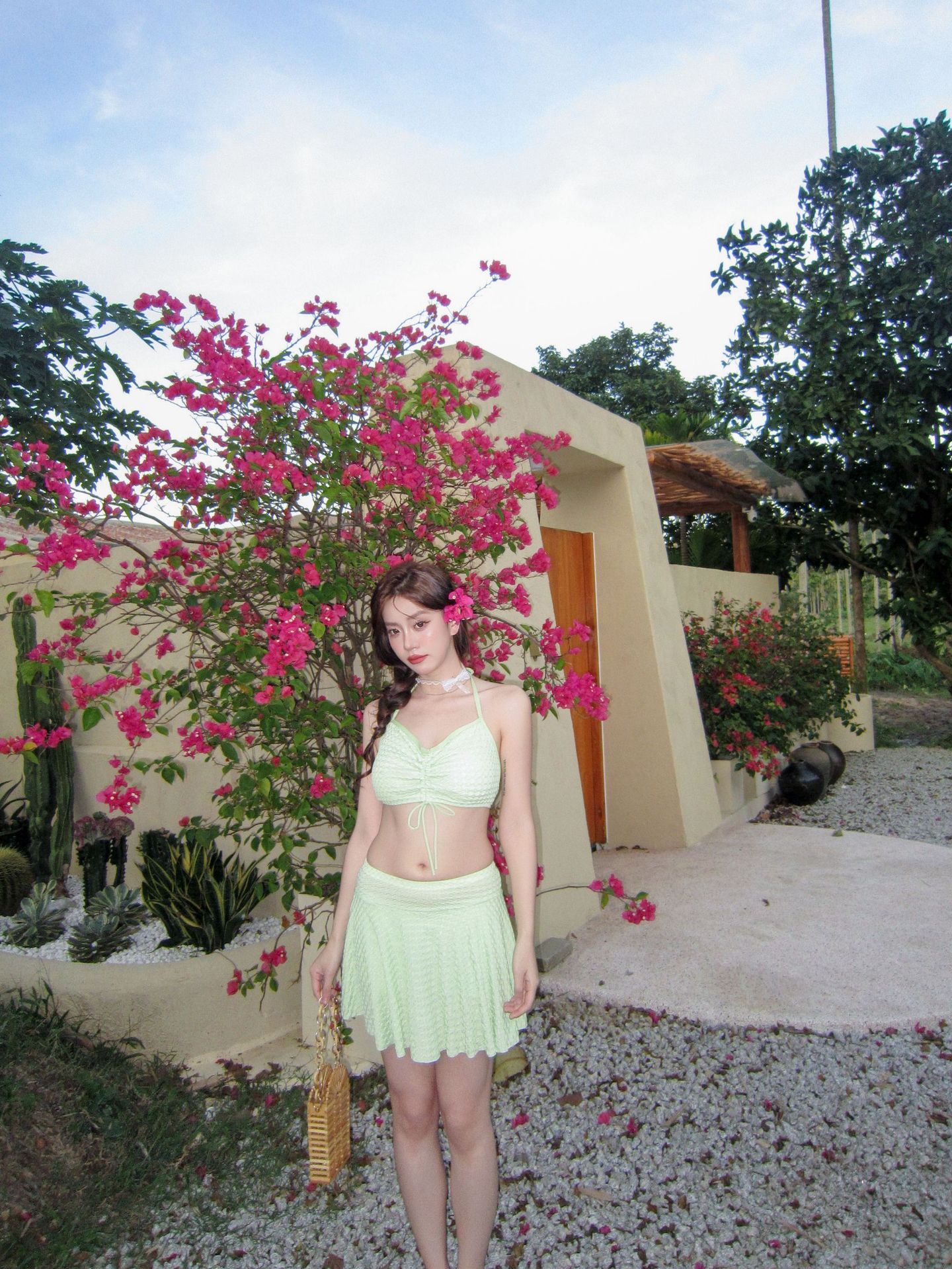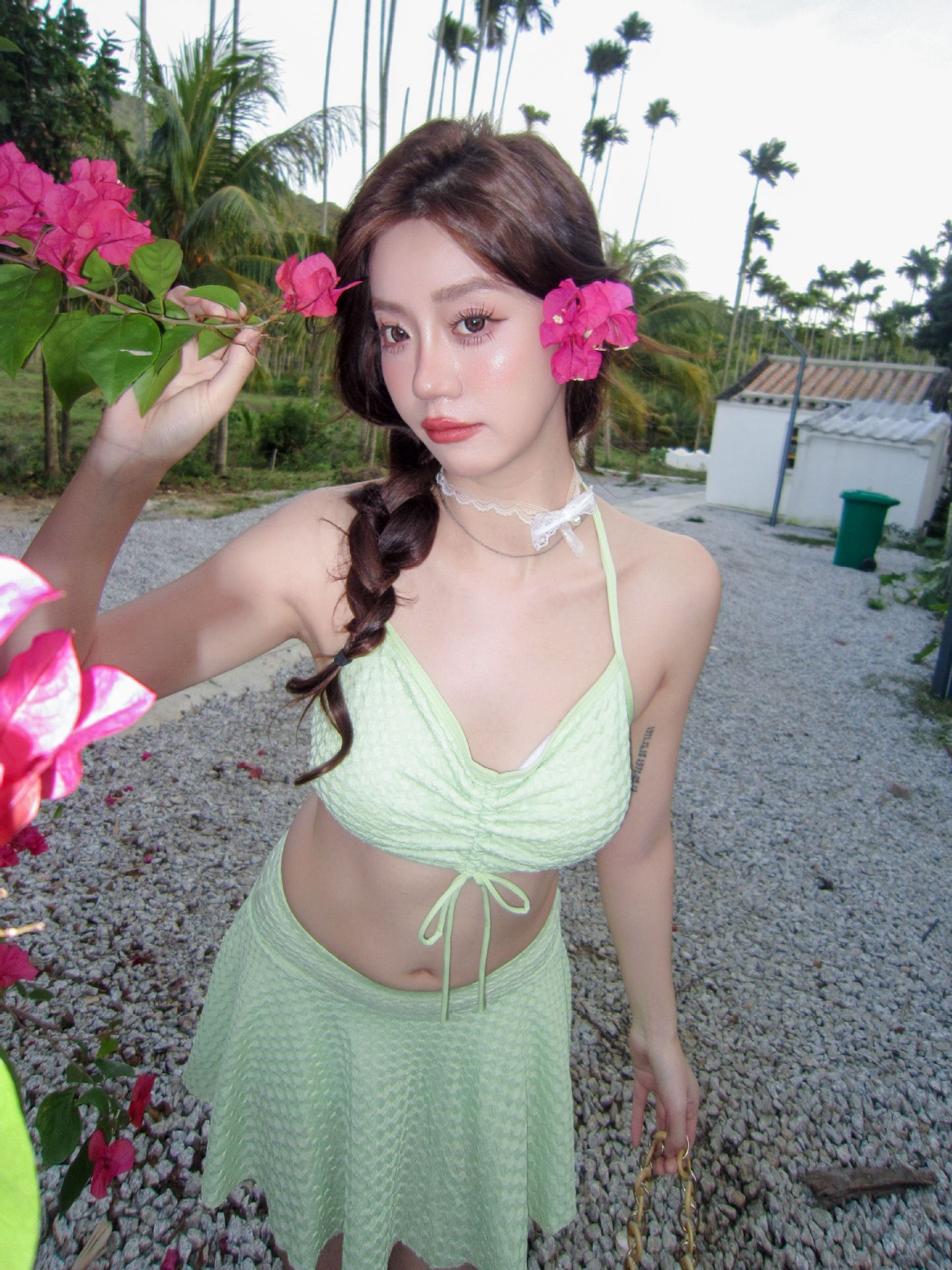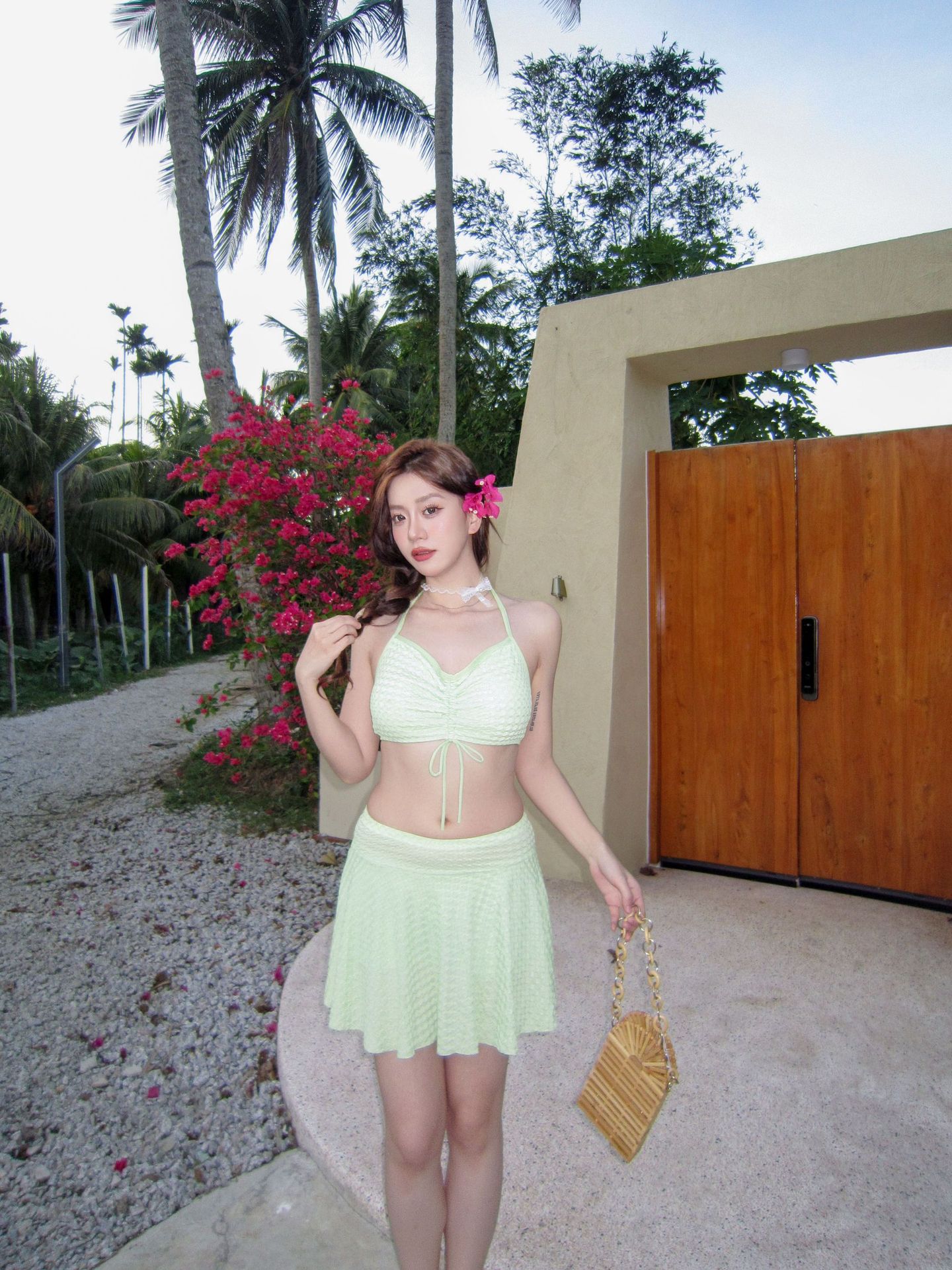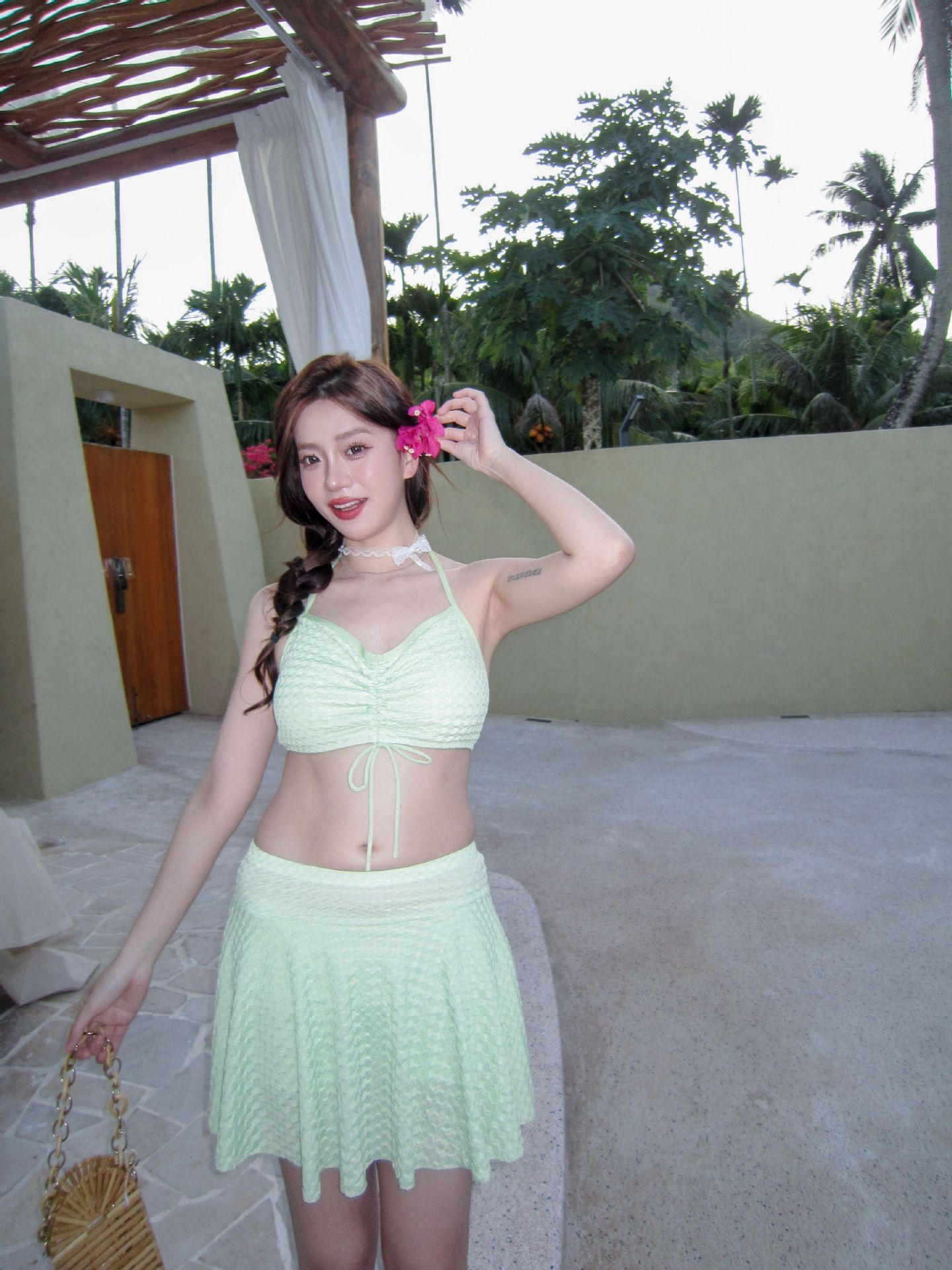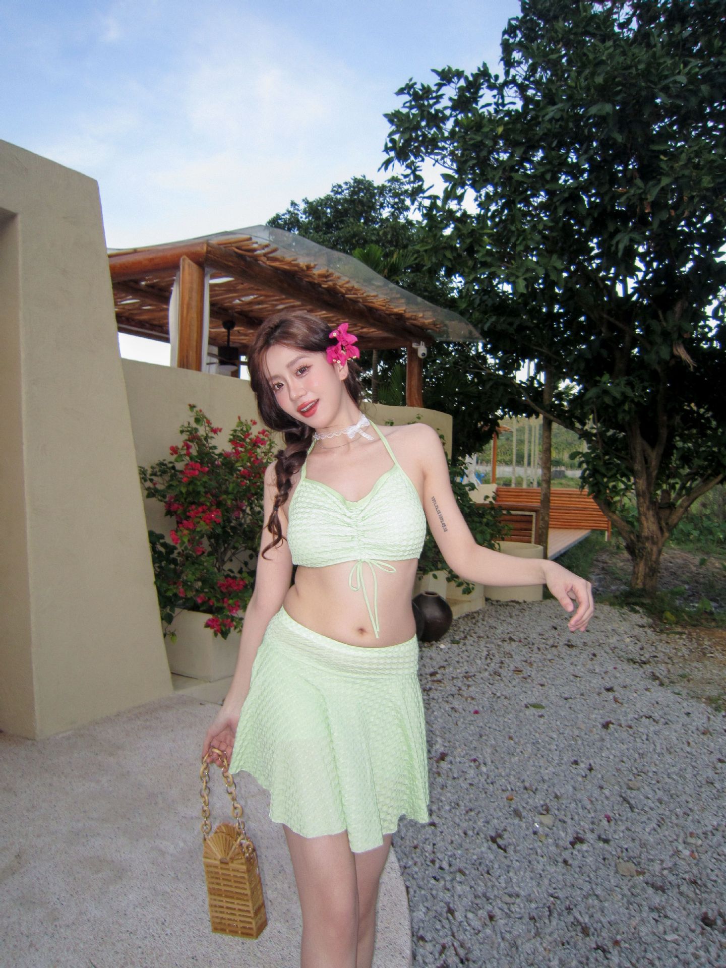 2025 여름 새로운 꽃 분할 작은 신선한 여성 수영복 세트 단색 스커트 눈부심 복서 반바지스토어 가기