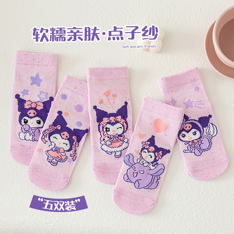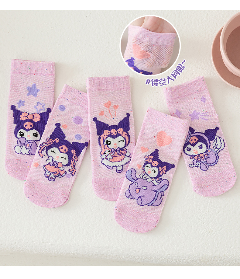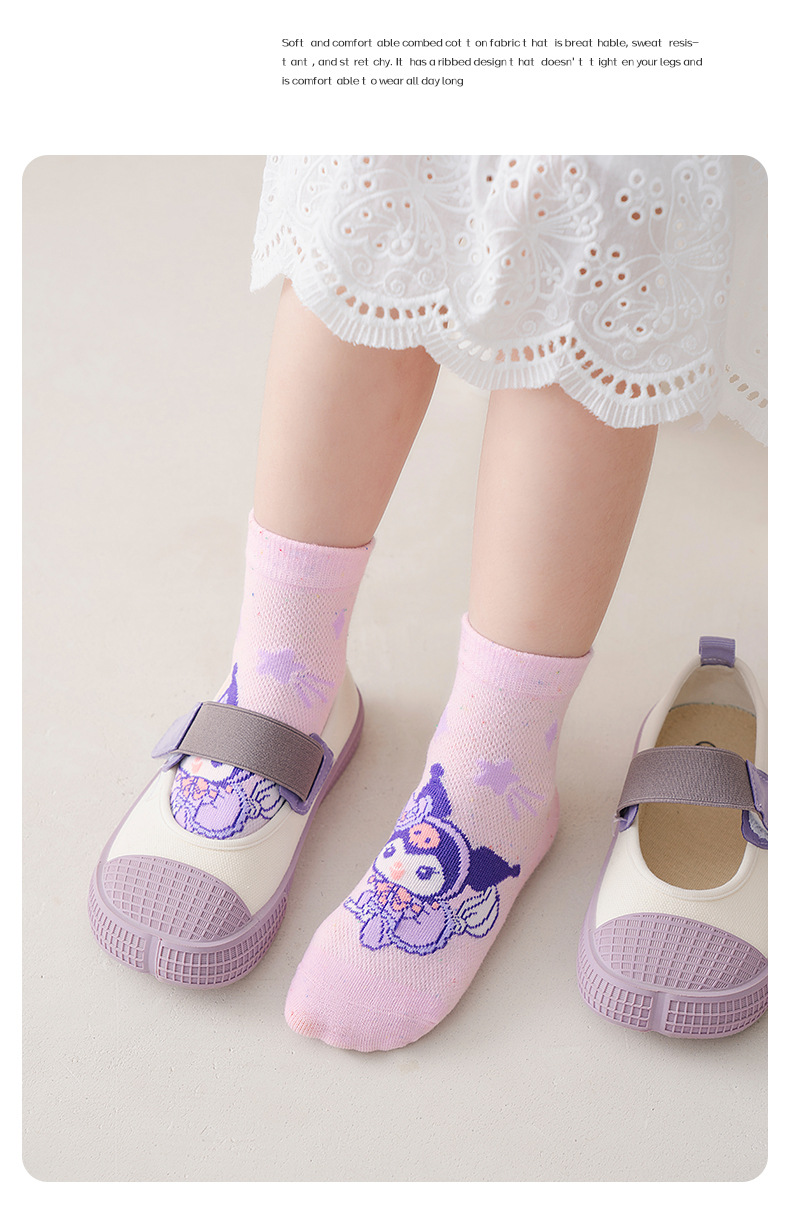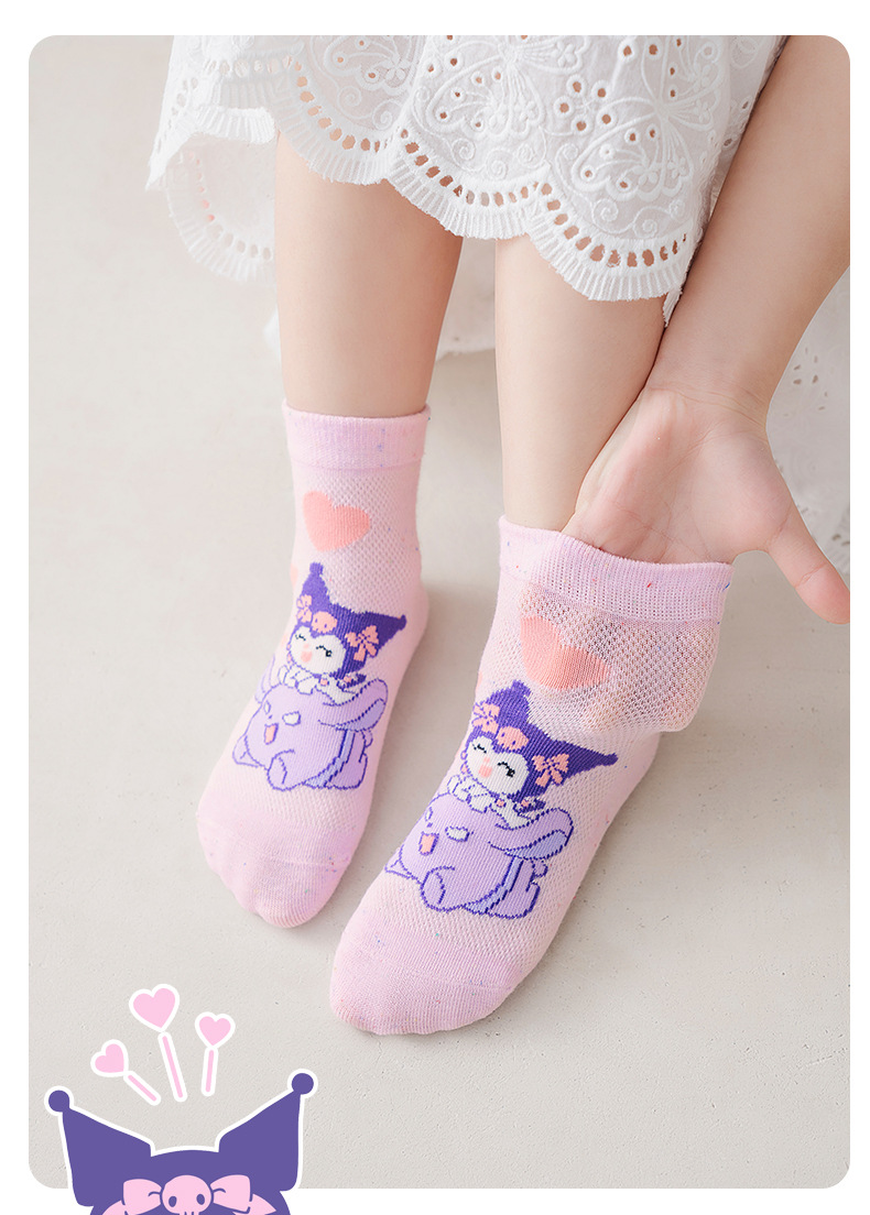 소녀 양말 Kulomi 여름 메쉬 아기 양말 봄과 여름 만화 달콤한 공주 여성의 아기 중간 튜브 양말