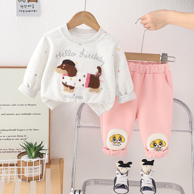 소녀의 봄 패션 서양식 스포츠 땀 세트 2025 새로운 귀여운 어린이 봄과 가을 아기 옷스토어 가기
